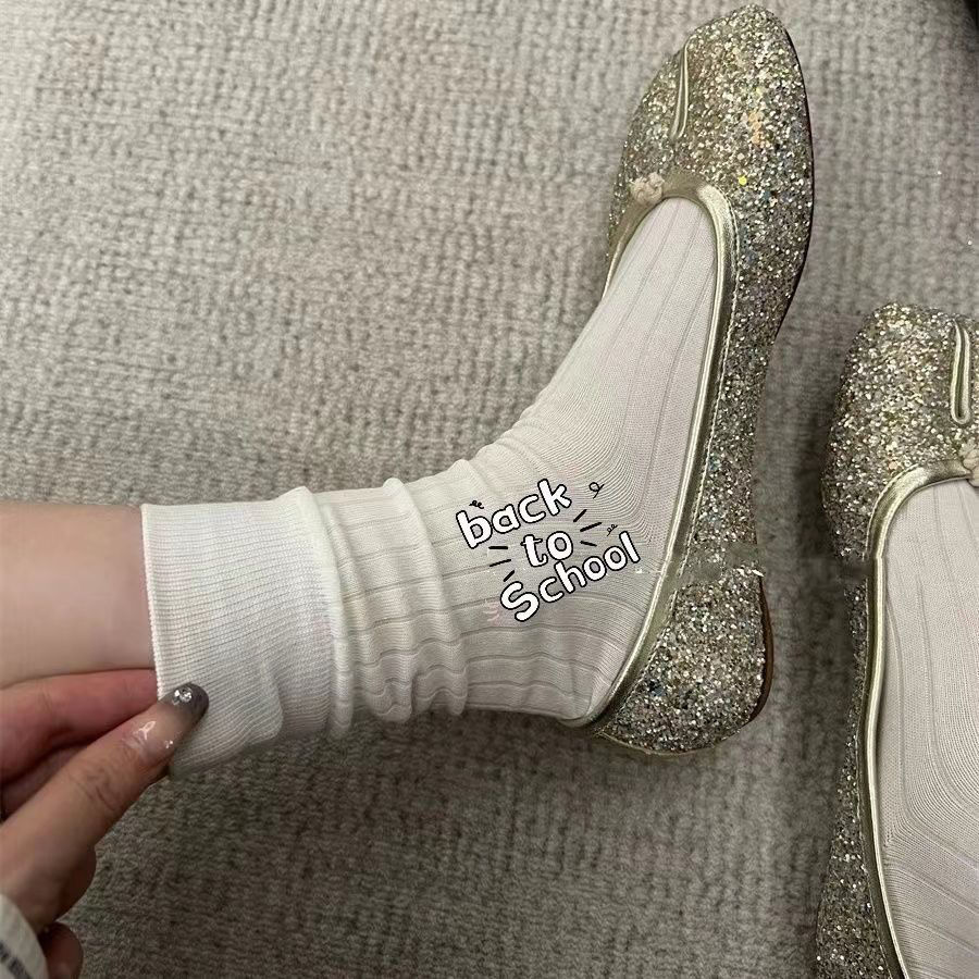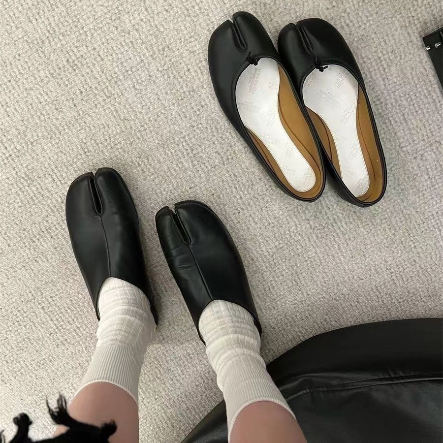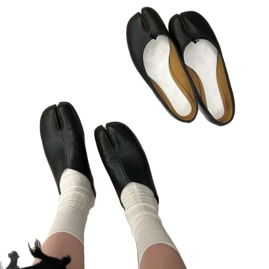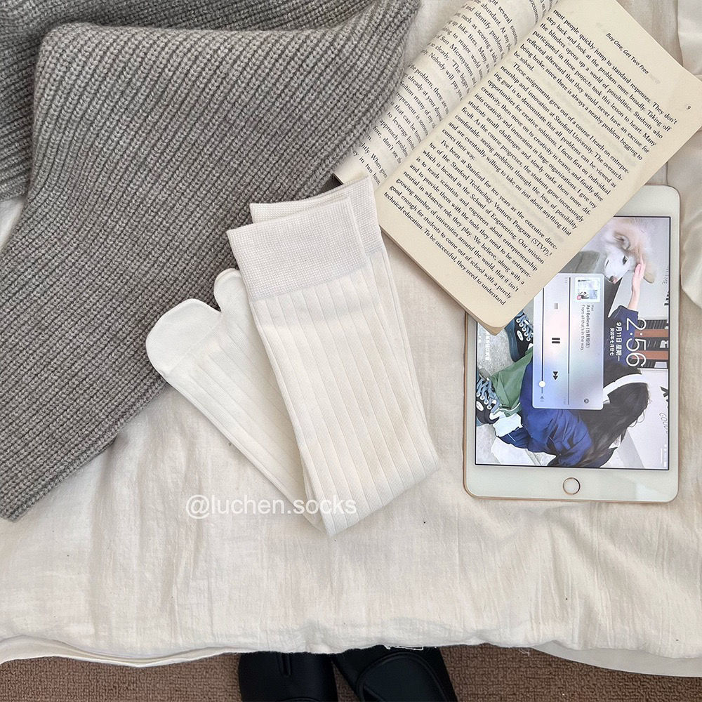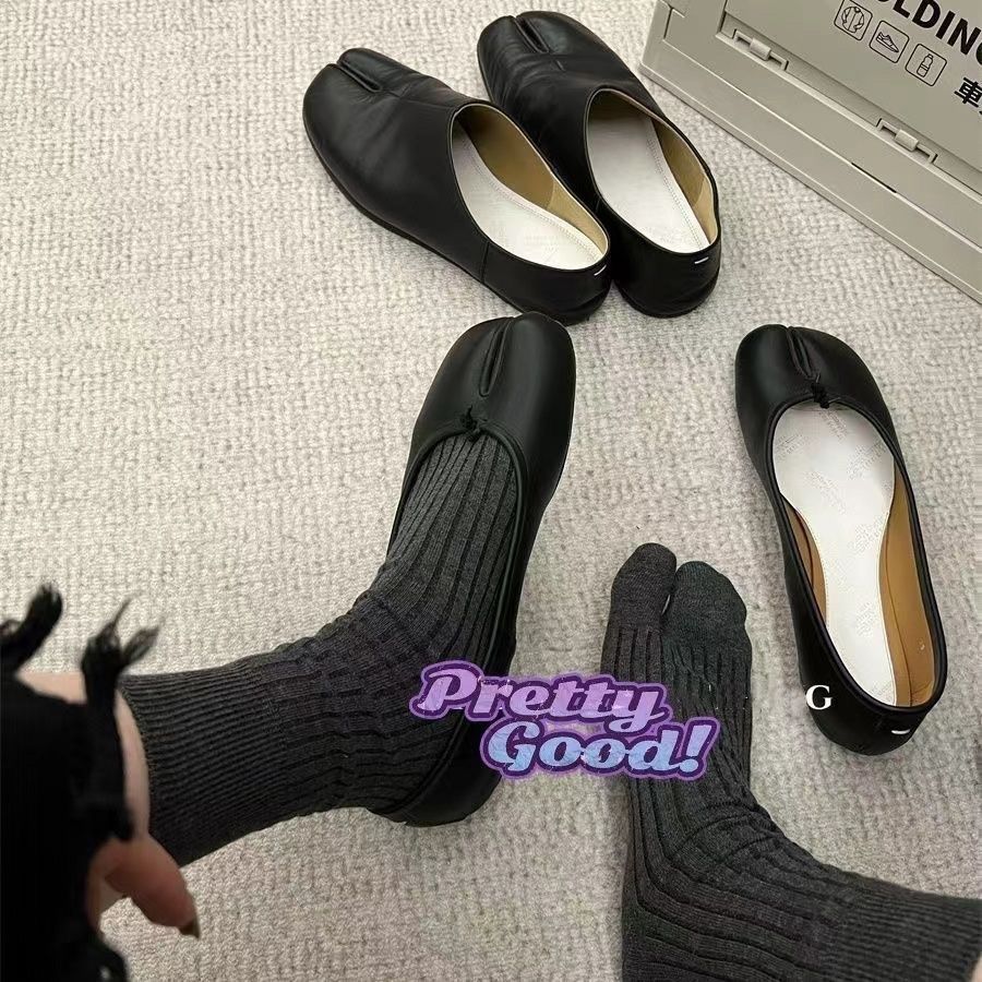 Tabi猪蹄分趾鞋女搭配“宽竖条纹无骨分趾袜女秋冬灰袜子女中筒袜