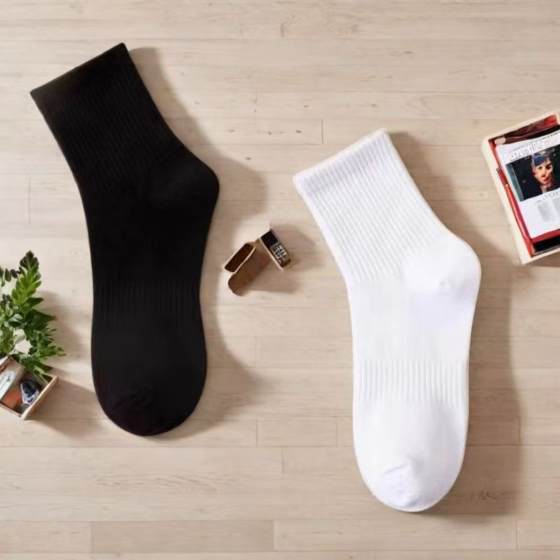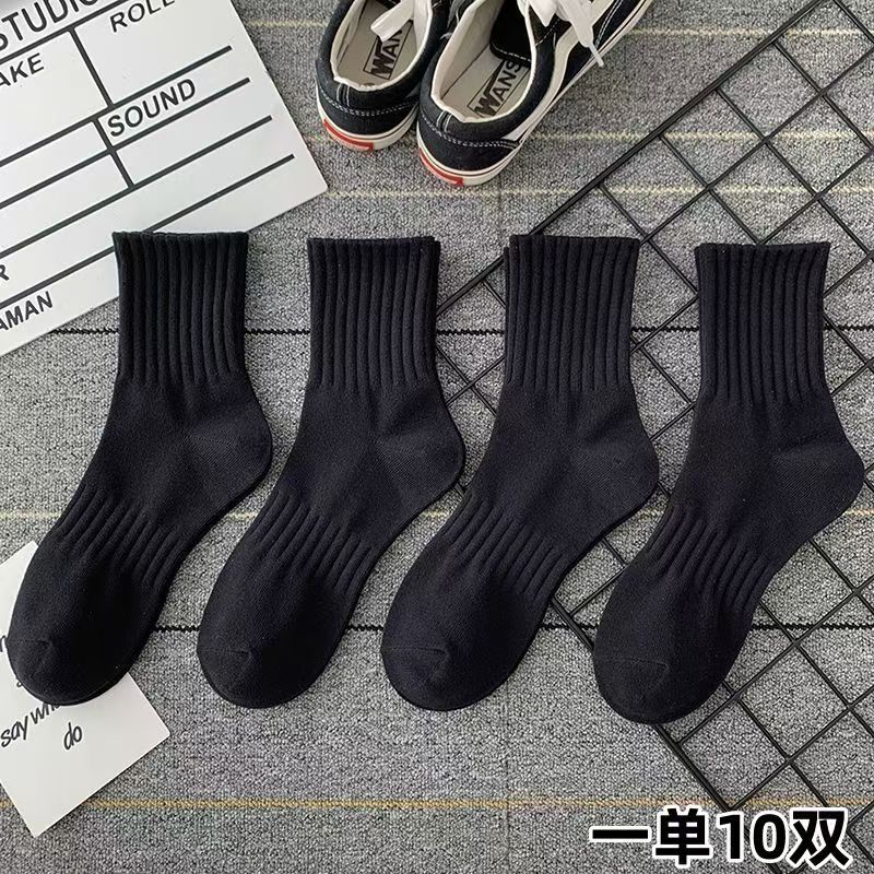 诸暨袜子纯色袜子男中筒春季吸汗透气运动袜简约长袜百搭新款批发