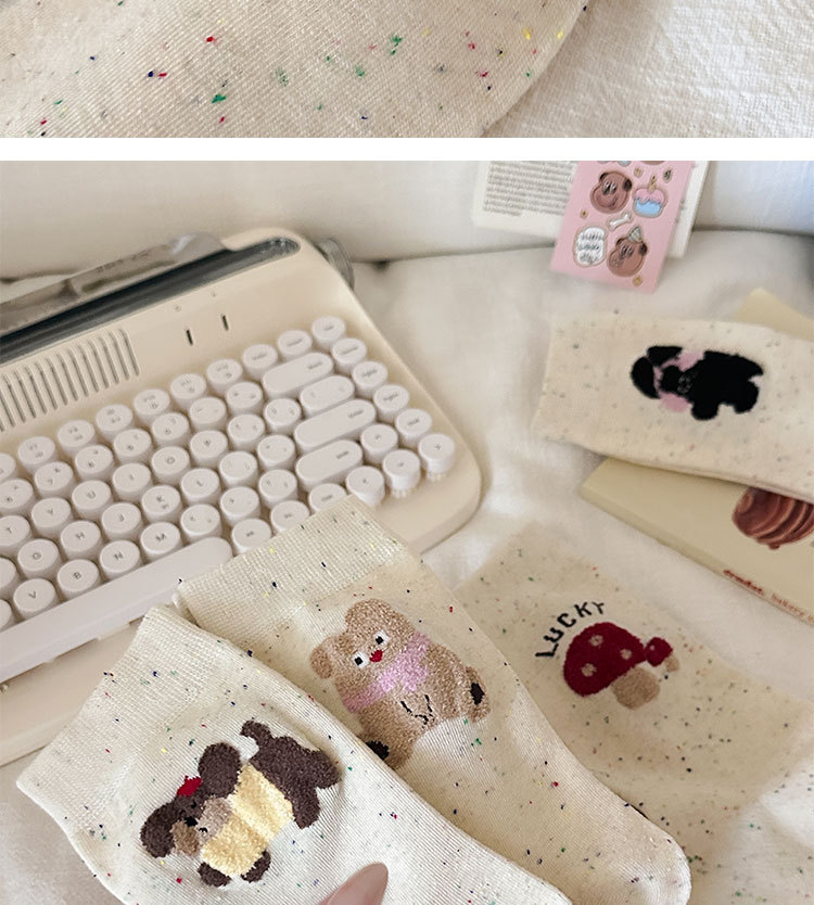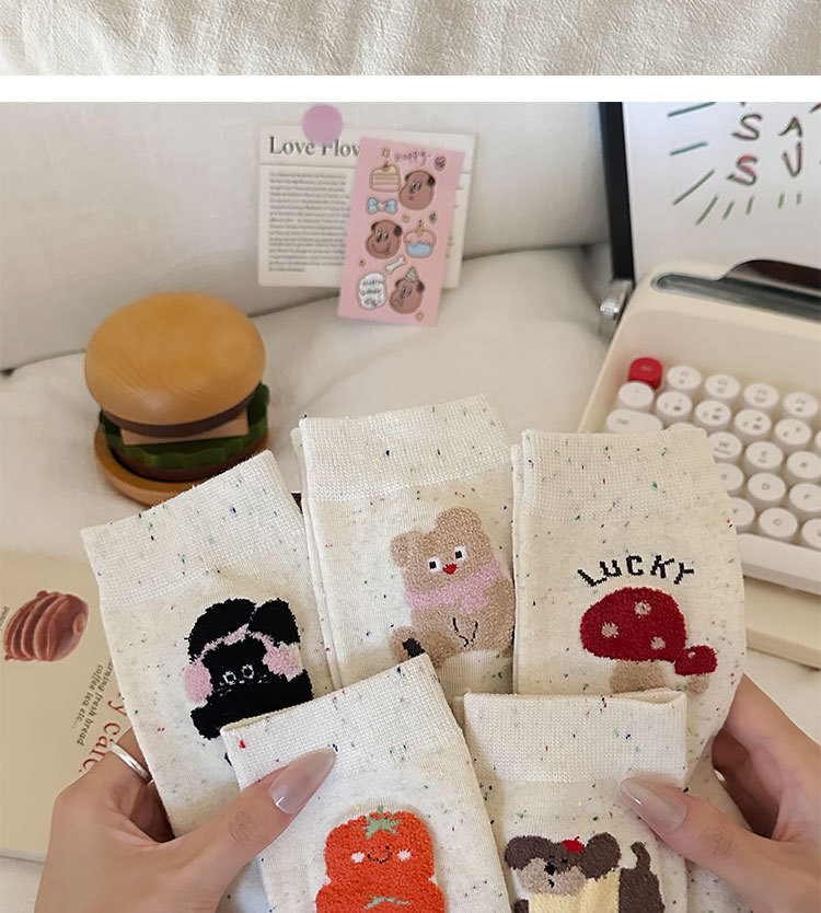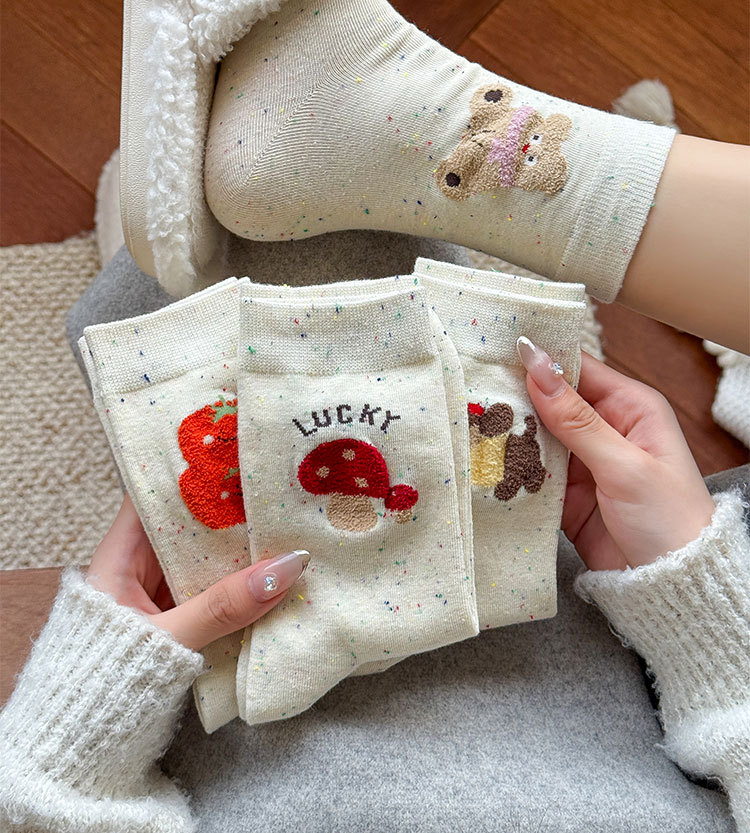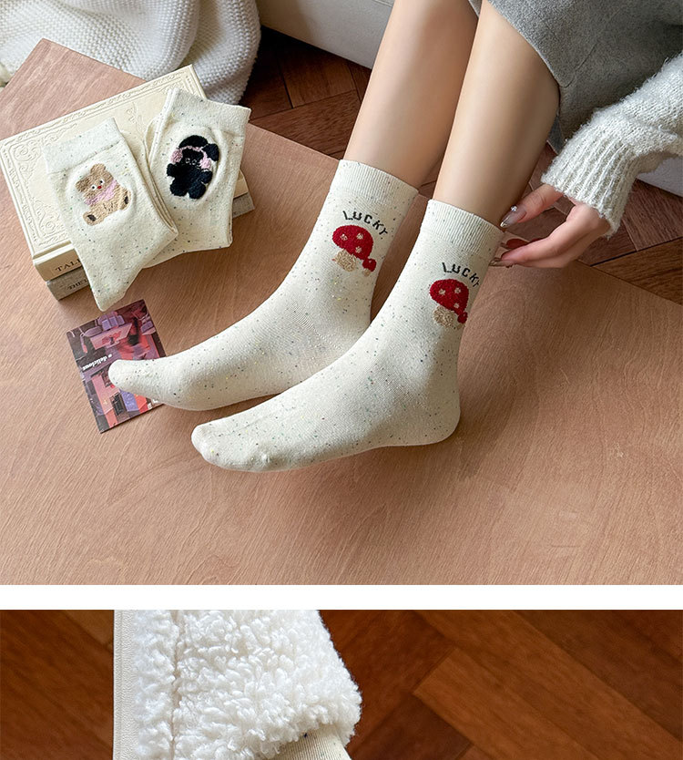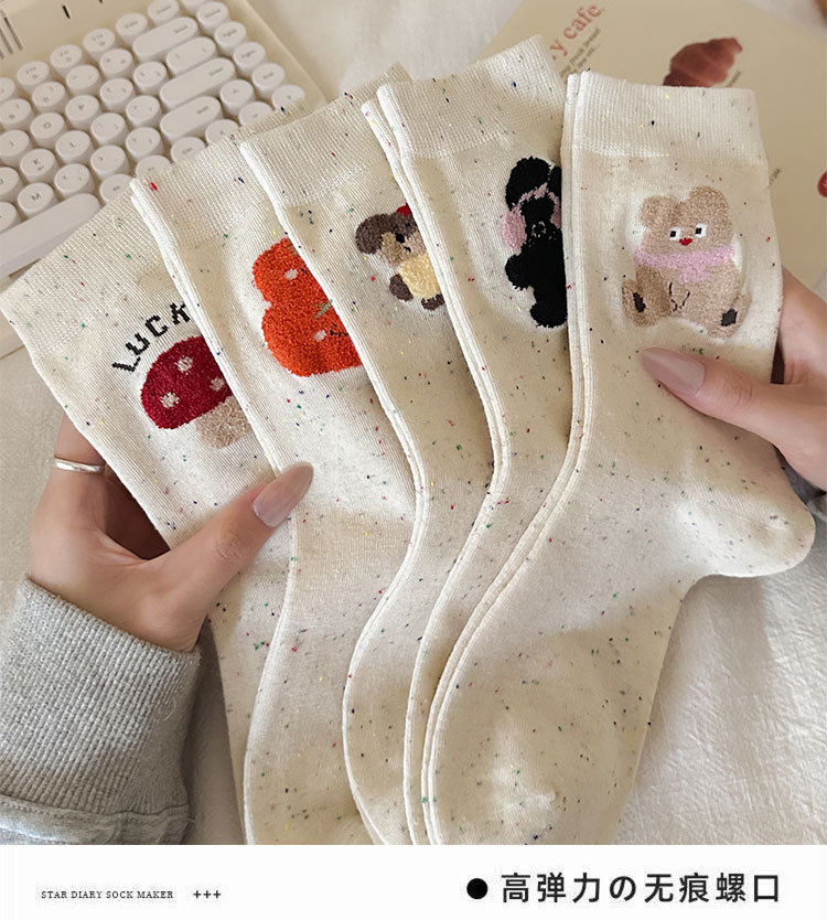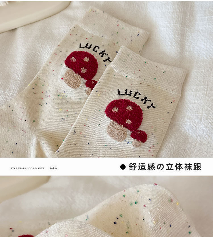 点子纱卡通袜子女中筒袜纯棉秋冬可爱蘑菇小熊堆堆袜诸暨袜子批发