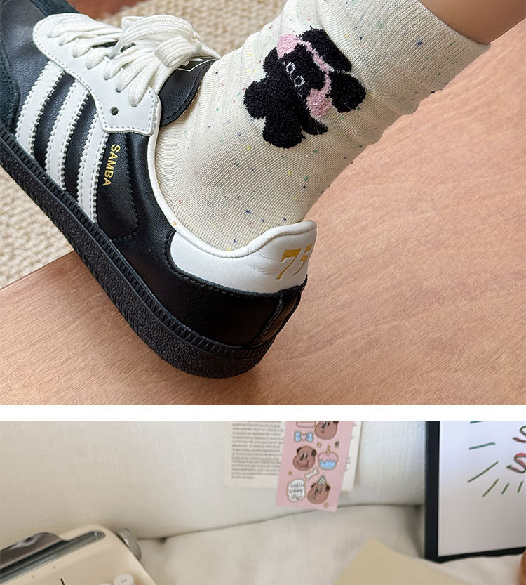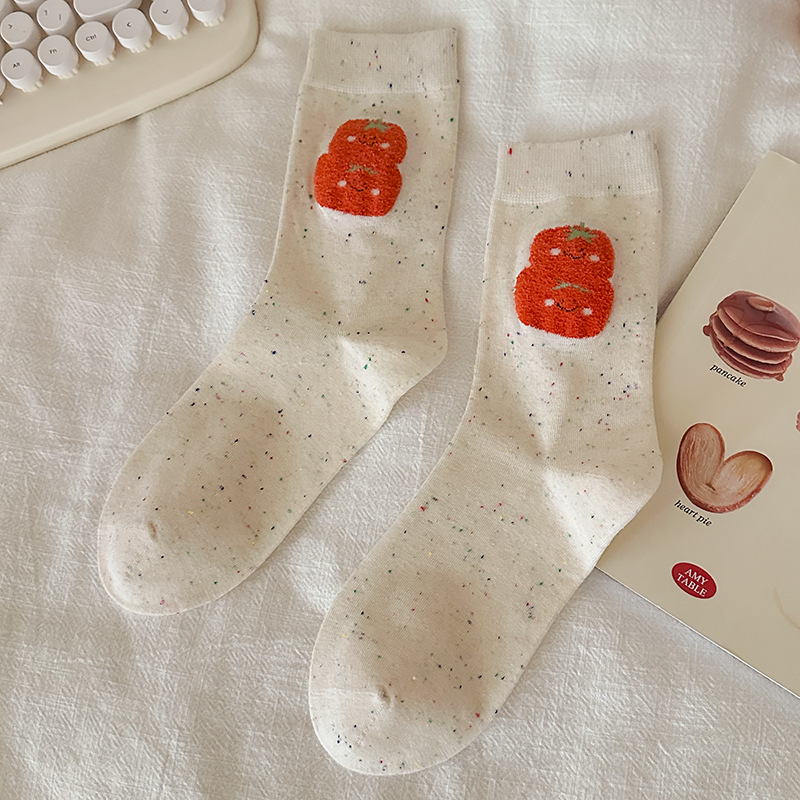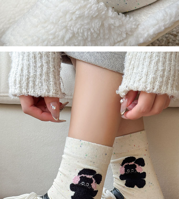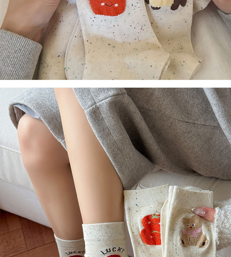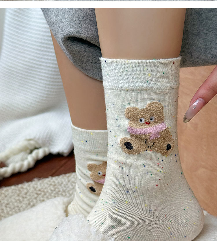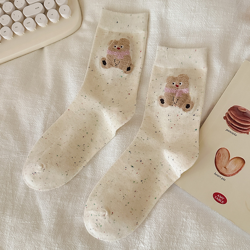 点子纱卡通袜子女中筒袜纯棉秋冬可爱蘑菇小熊堆堆袜诸暨袜子批发