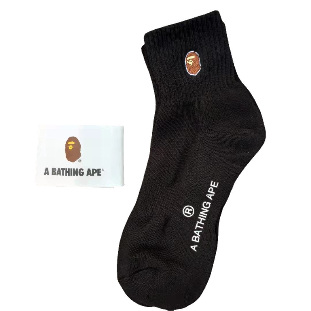BAPE猿人头日系潮牌男女毛巾底高筒袜纯色黑白袜子跨境一件代发