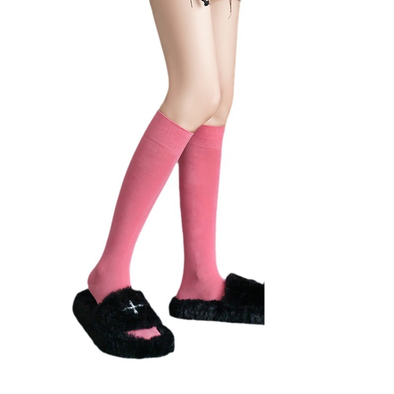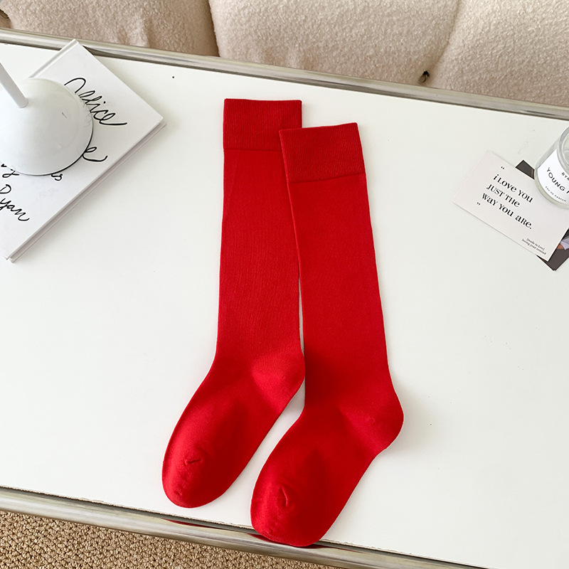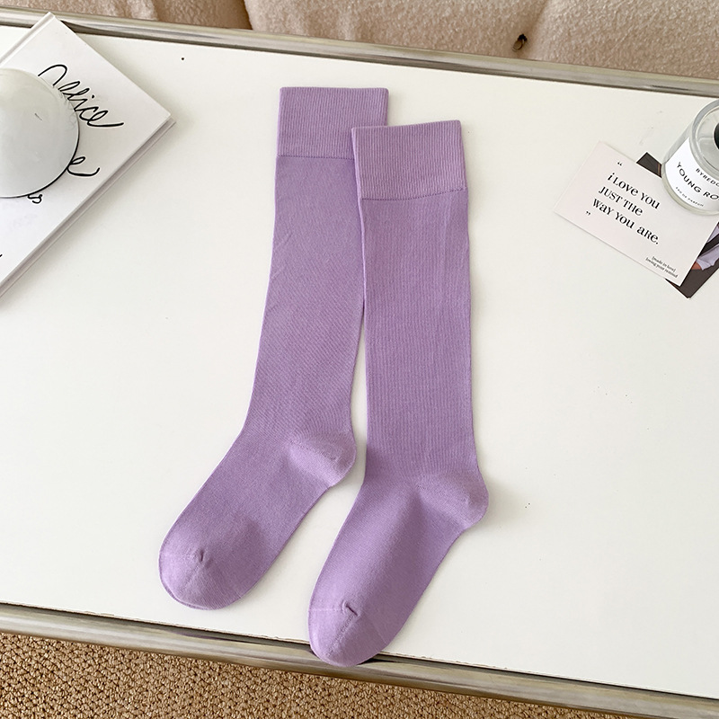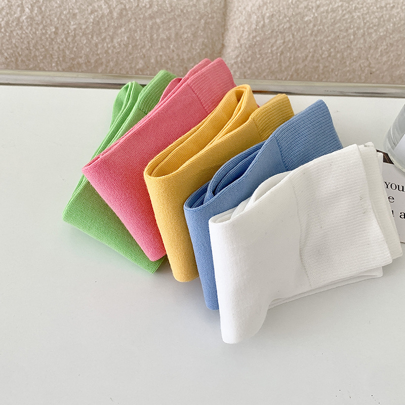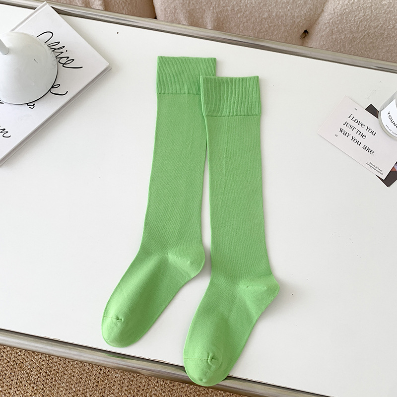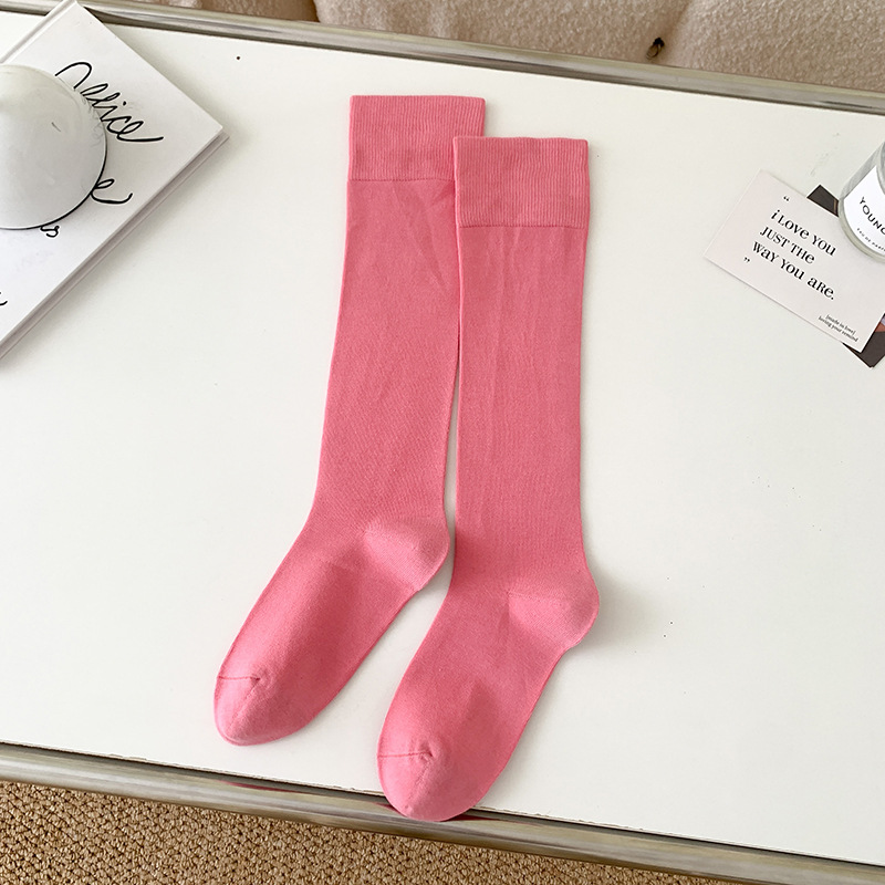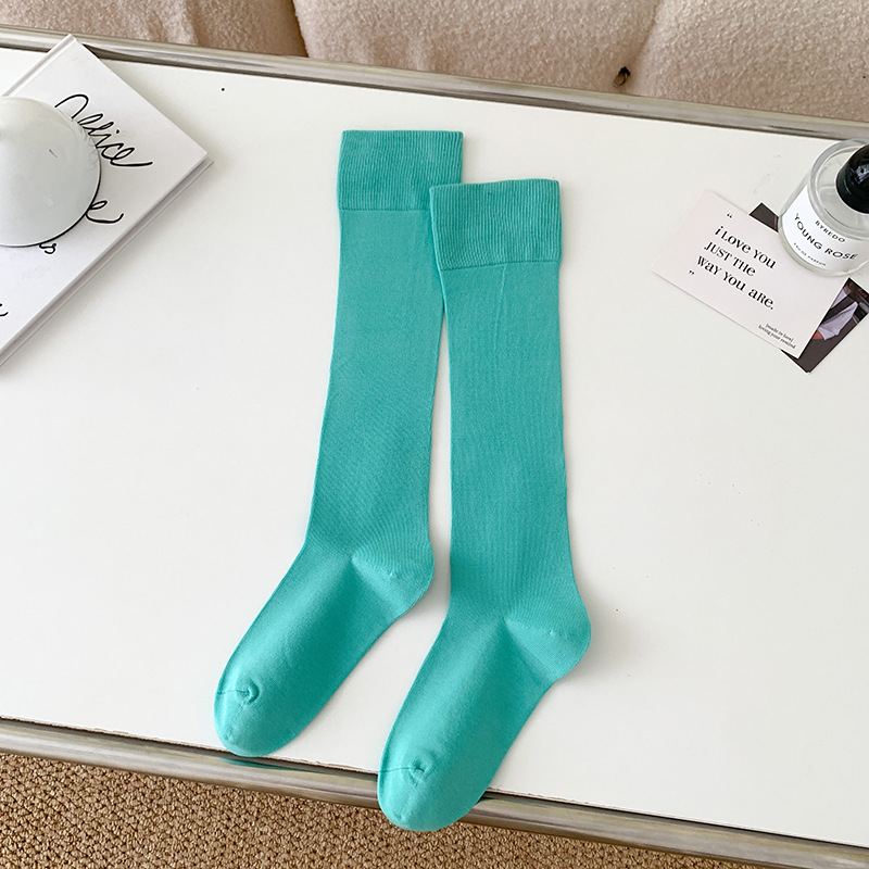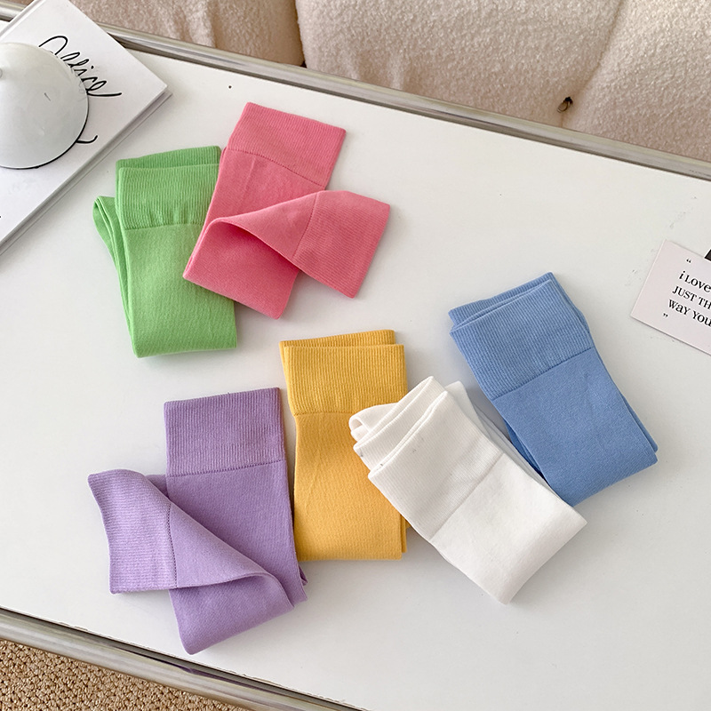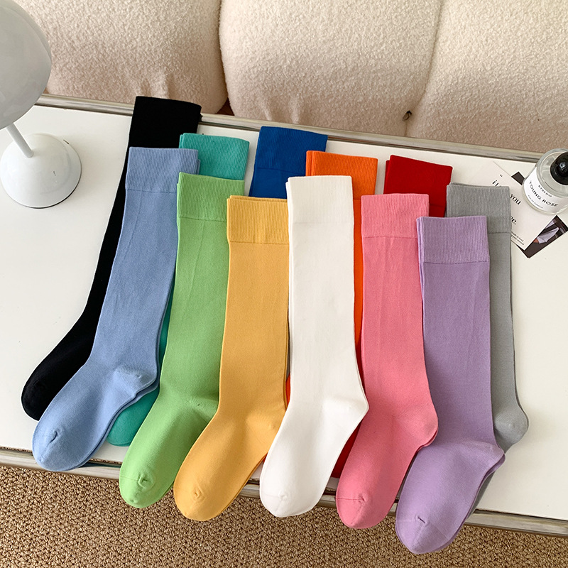 小腿袜子女多巴胺糖果色无骨秋冬季彩色中筒袜纯棉及膝运动长筒袜