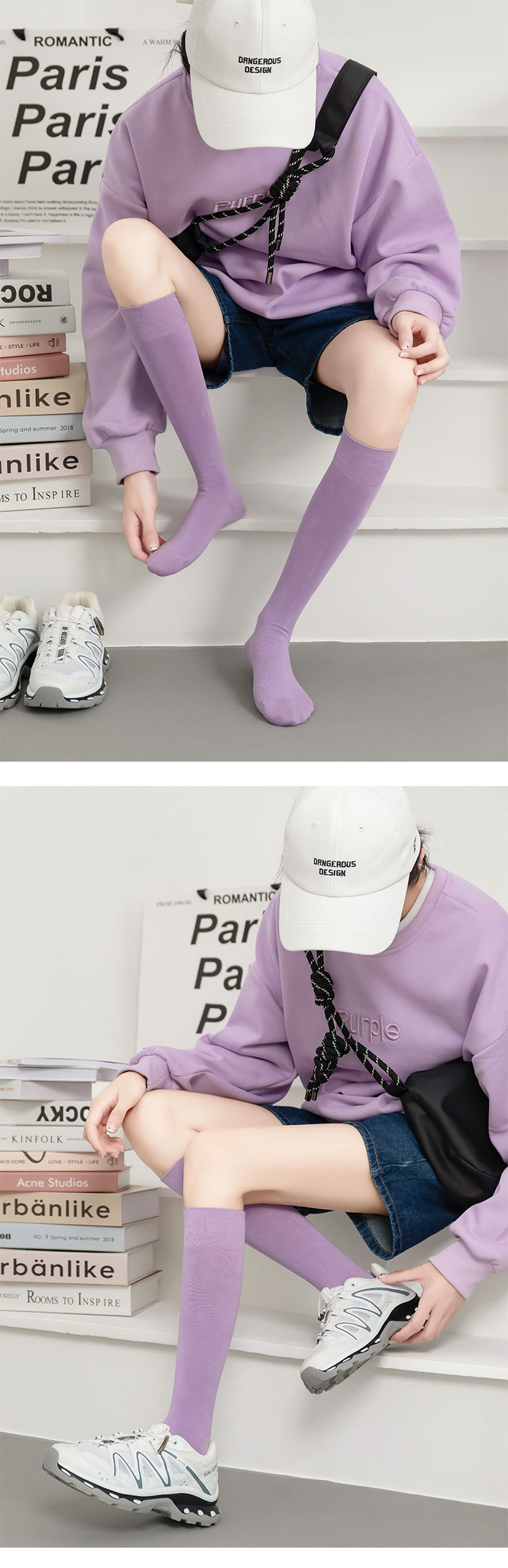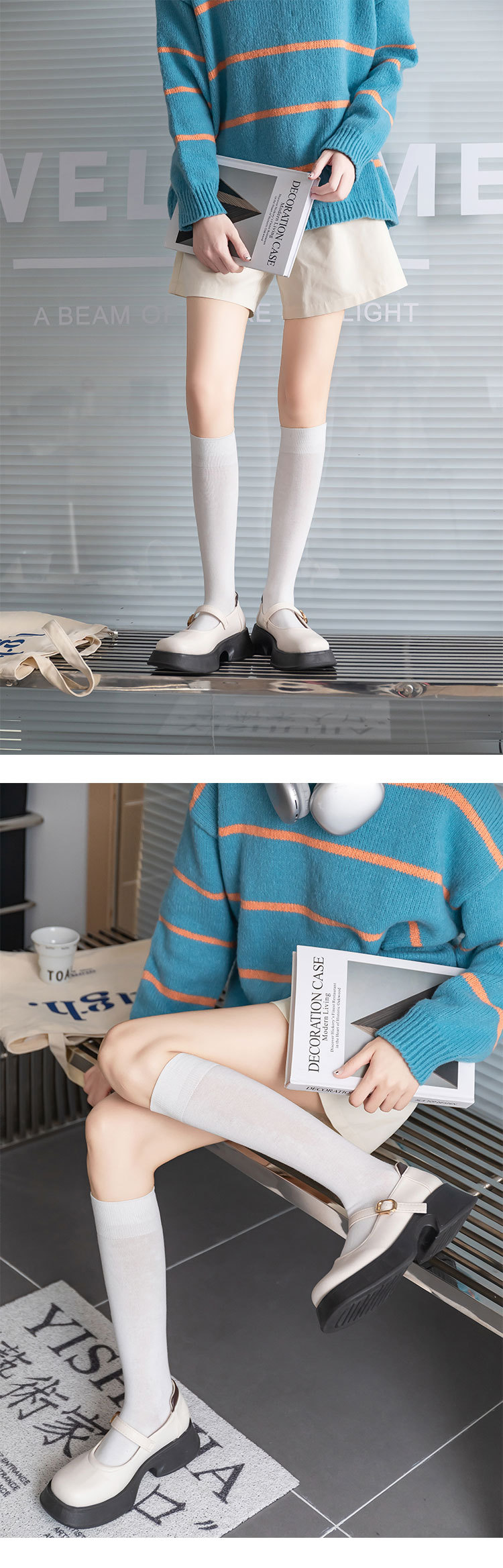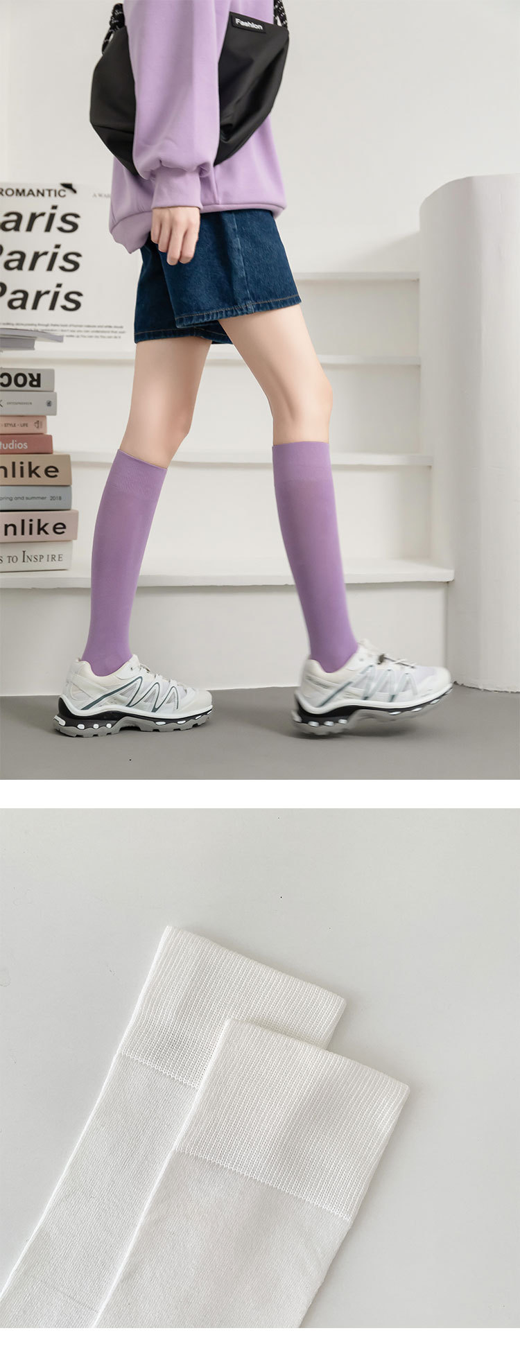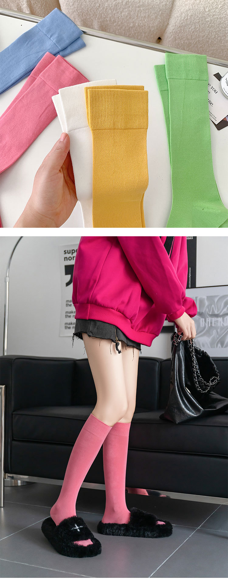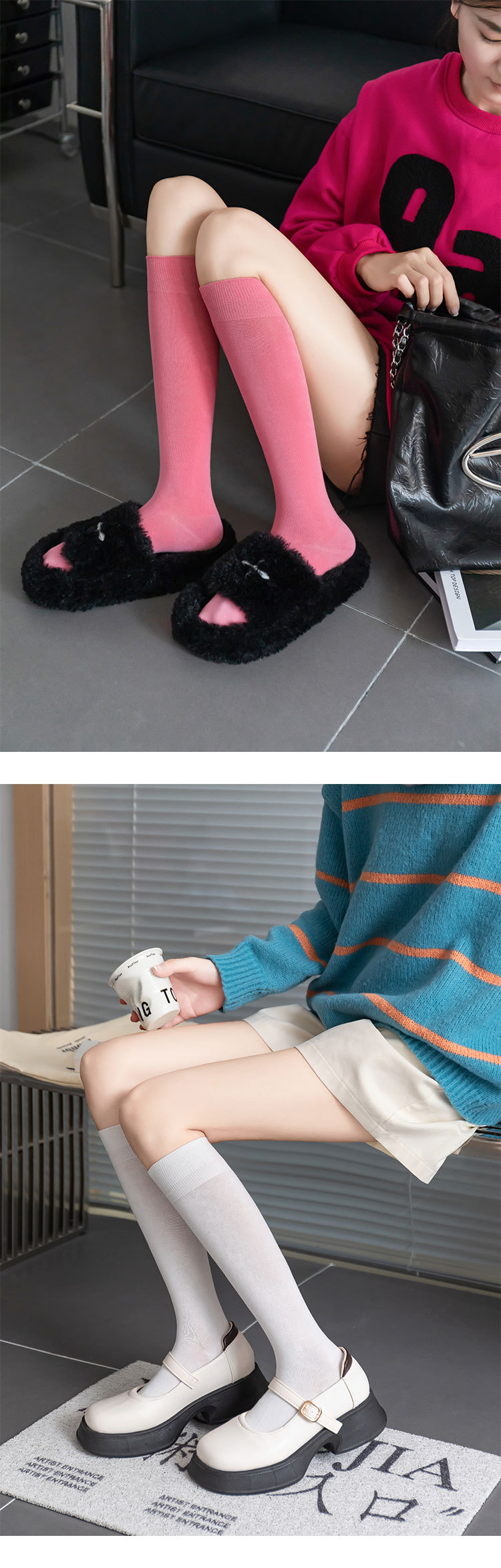 小腿袜子女多巴胺糖果色无骨秋冬季彩色中筒袜纯棉及膝运动长筒袜