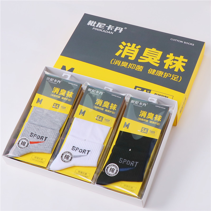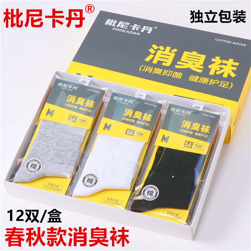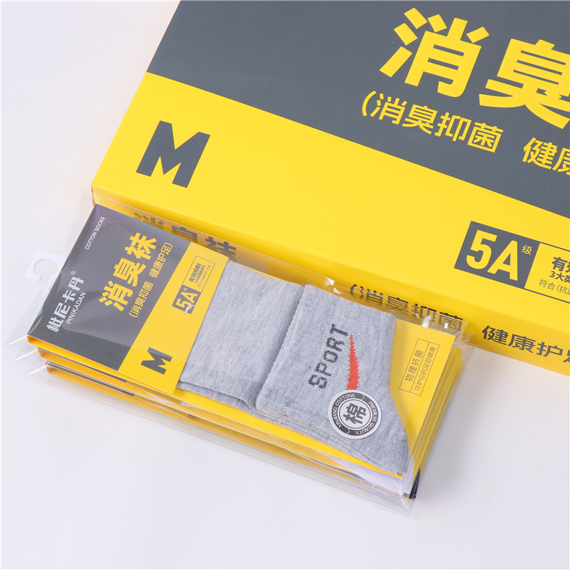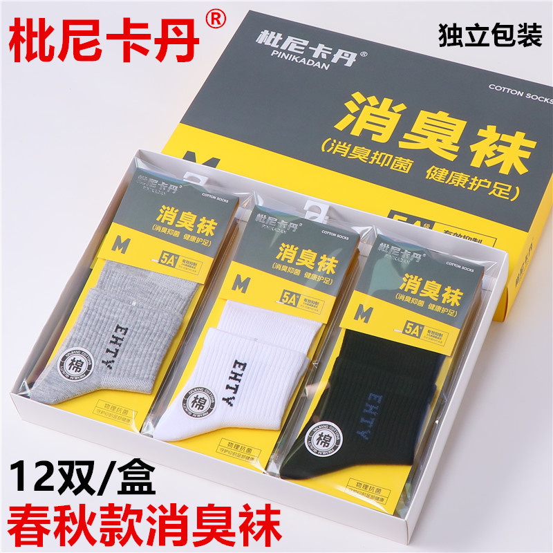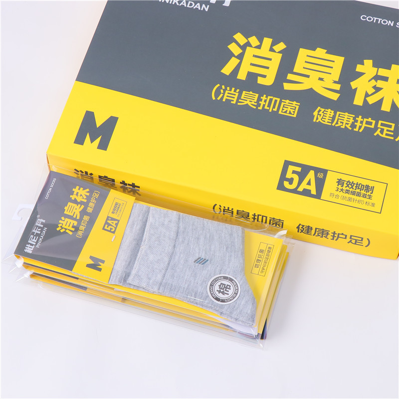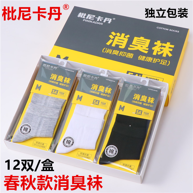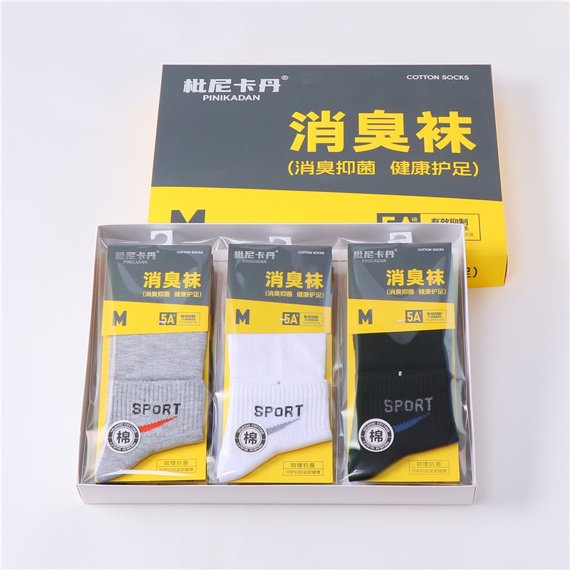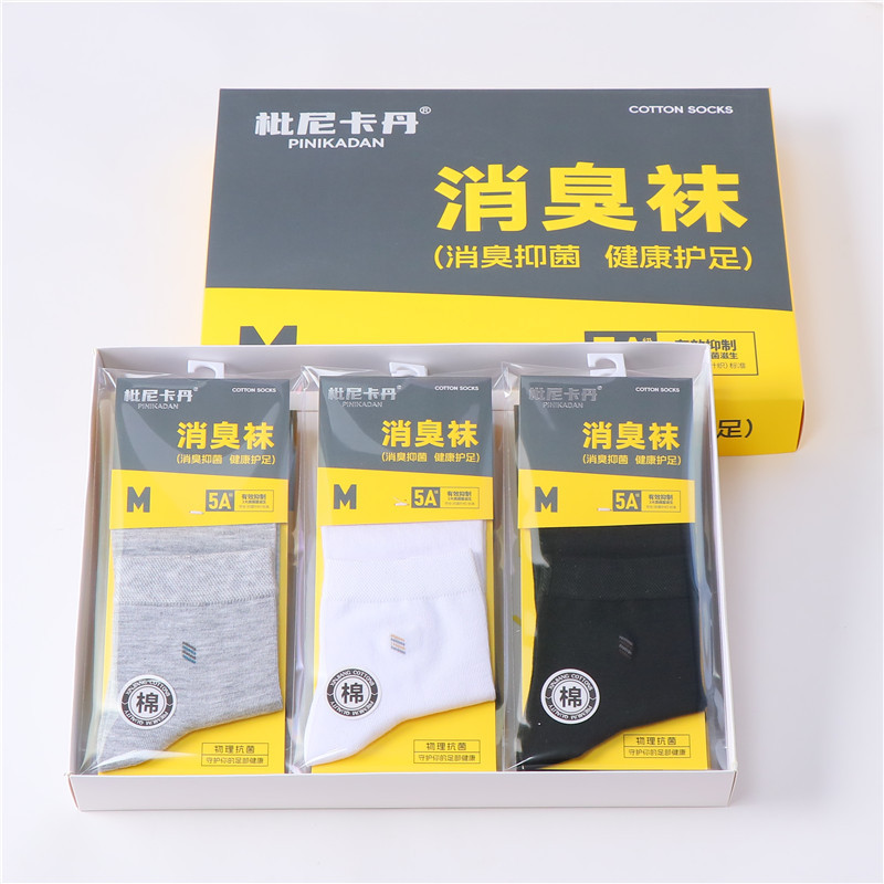 消臭袜男士棉袜四季中筒独立包装盒装运动休闲春秋薄棉防臭袜批发
