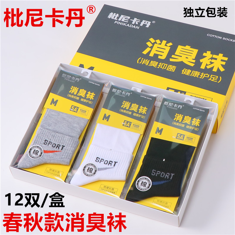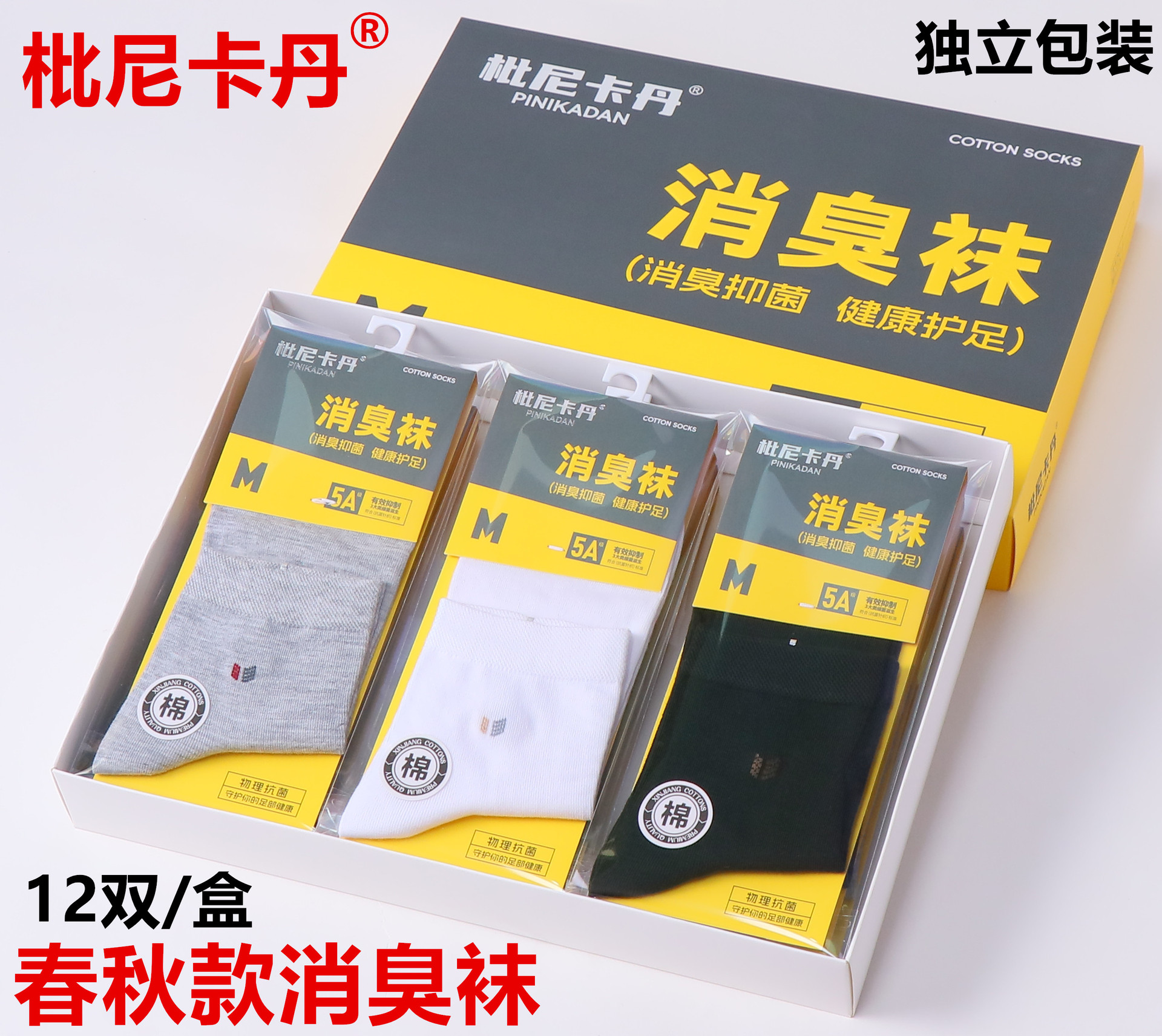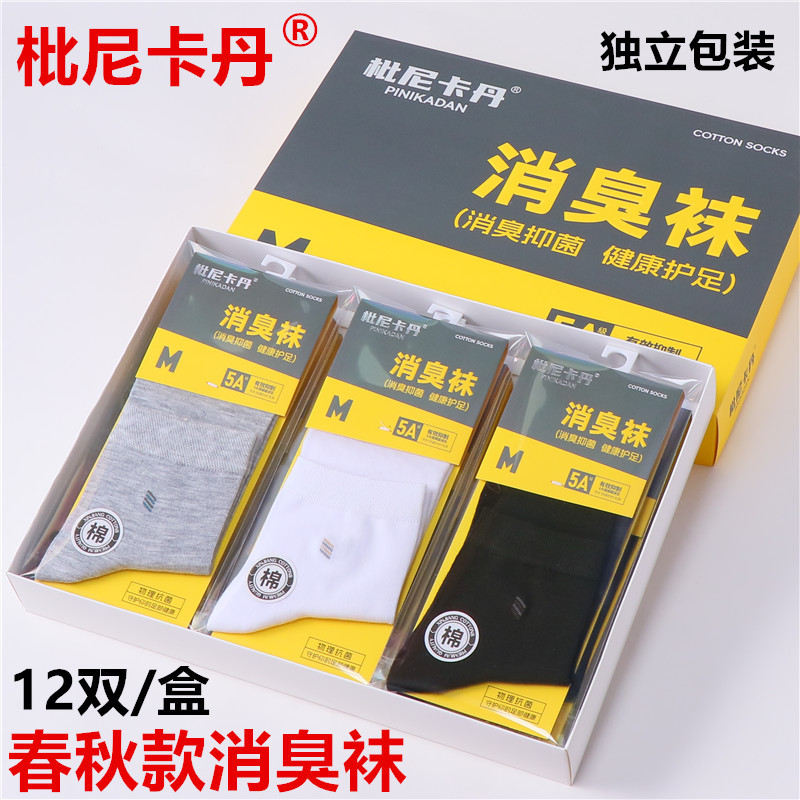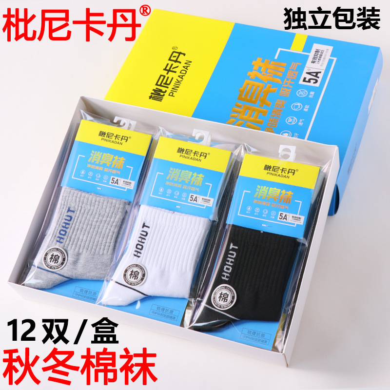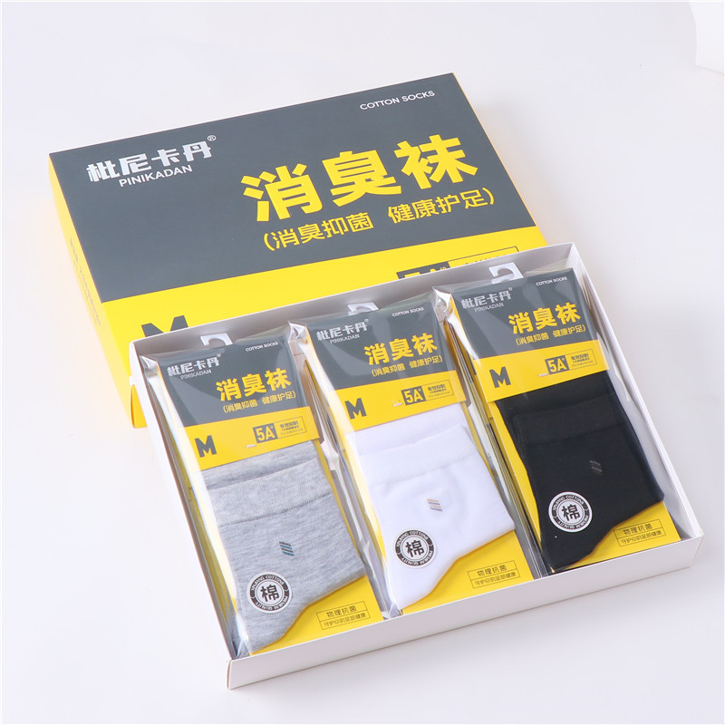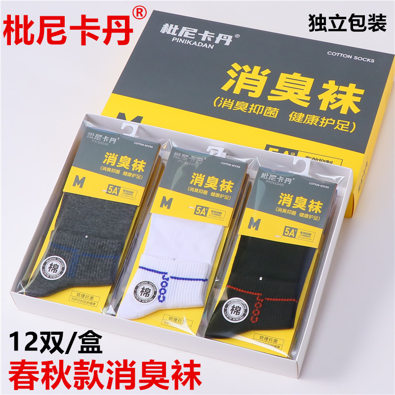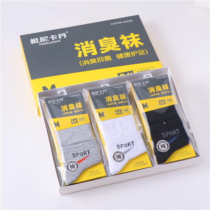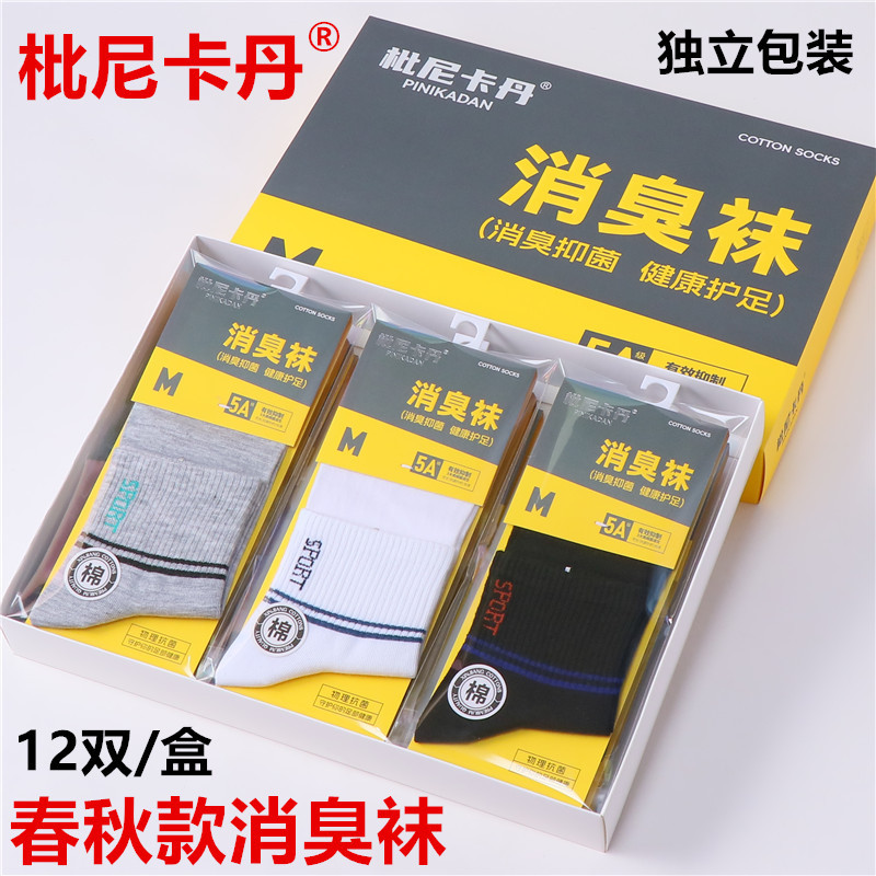 消臭袜男士棉袜四季中筒独立包装盒装运动休闲春秋薄棉防臭袜批发