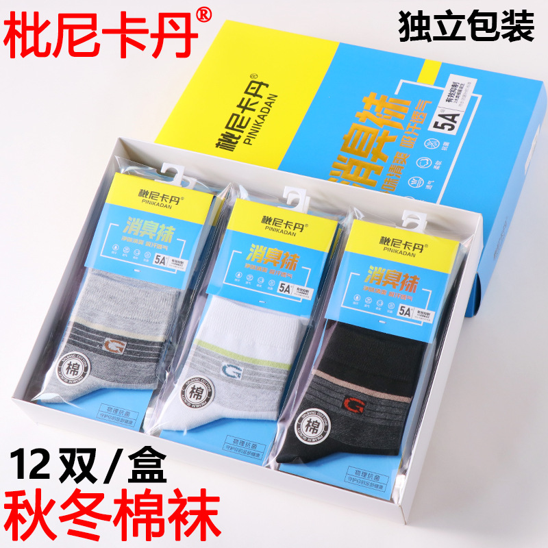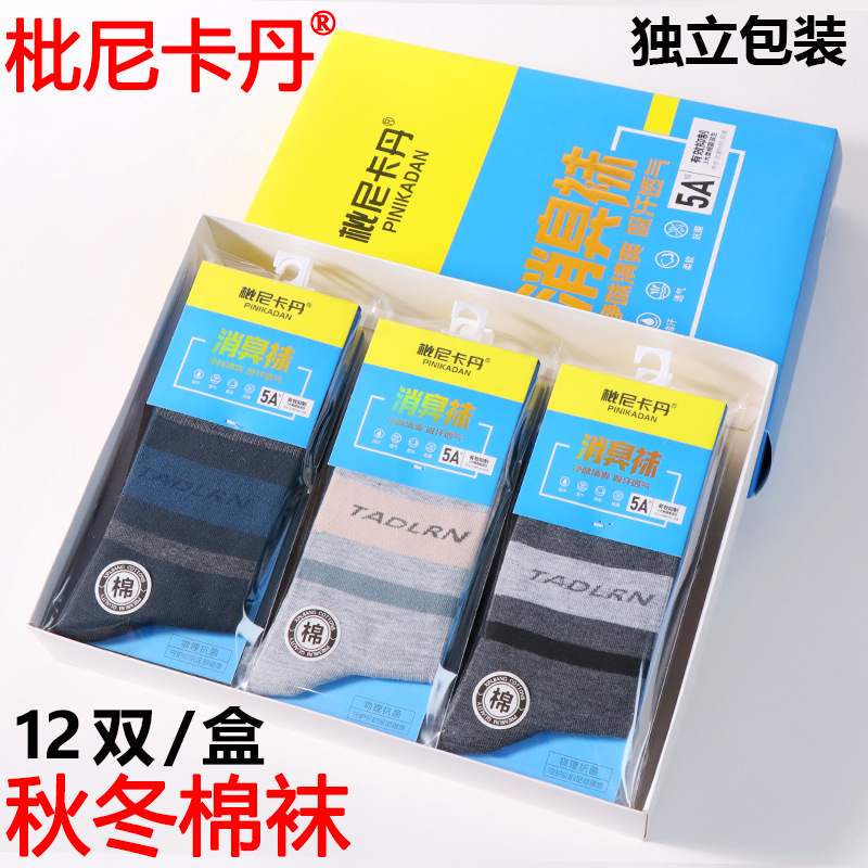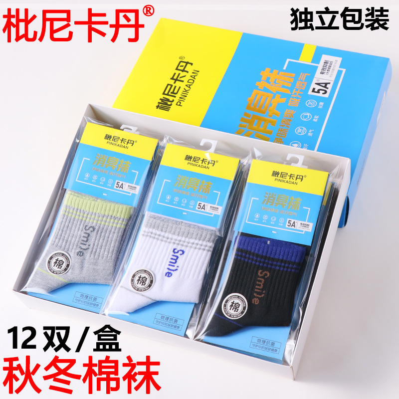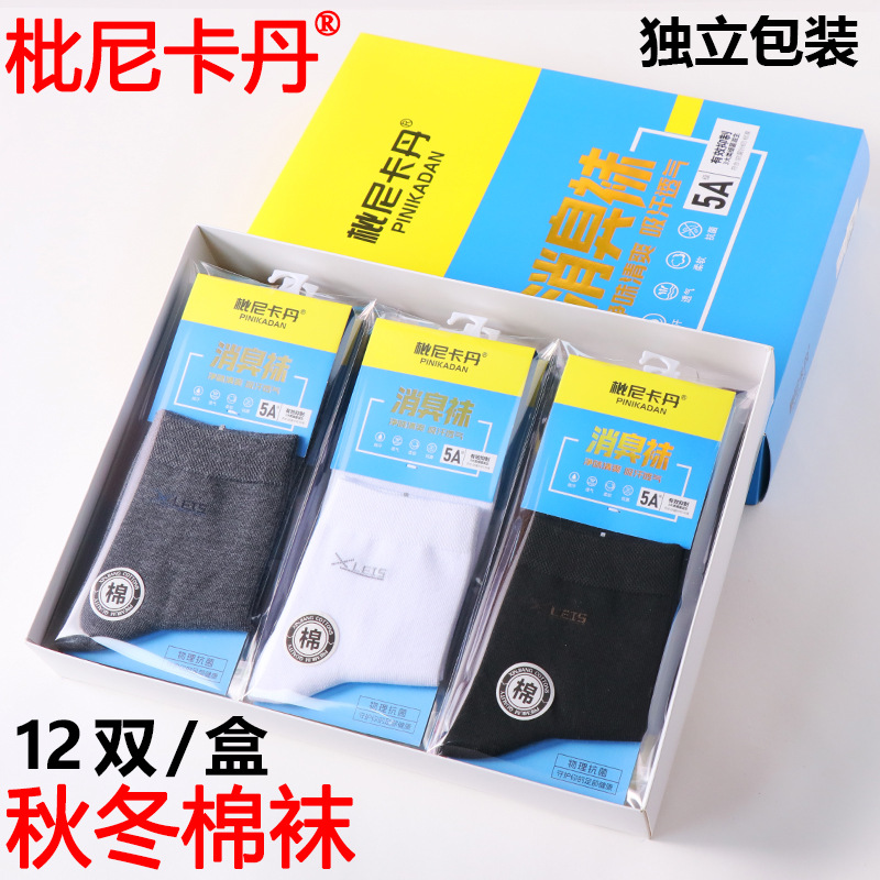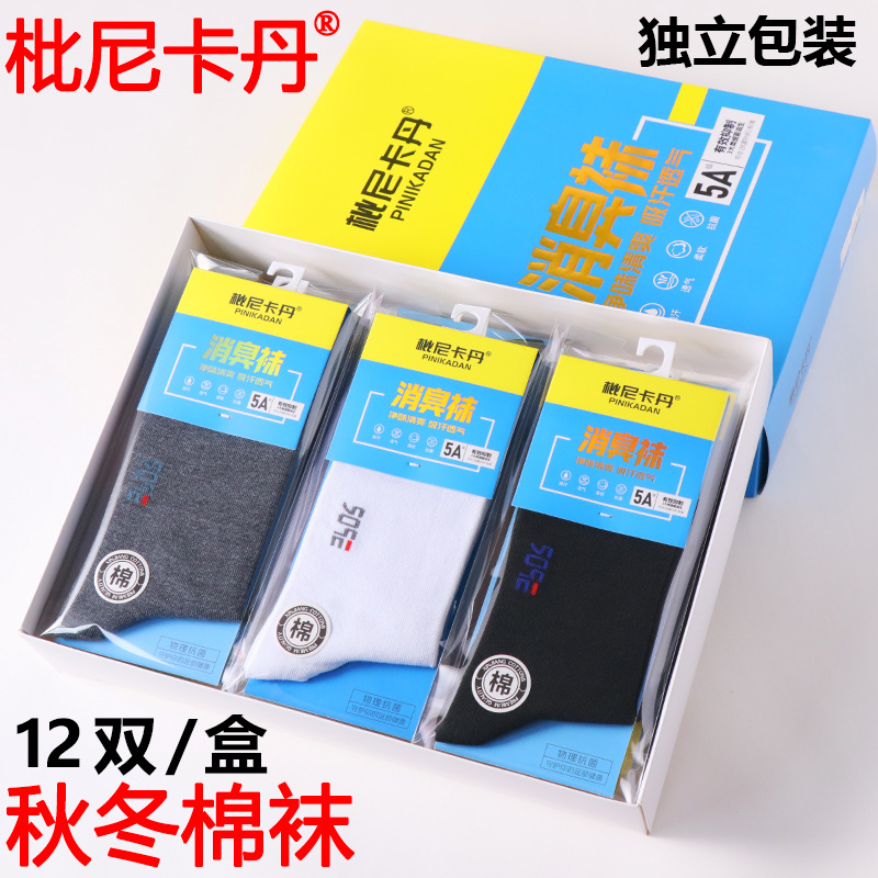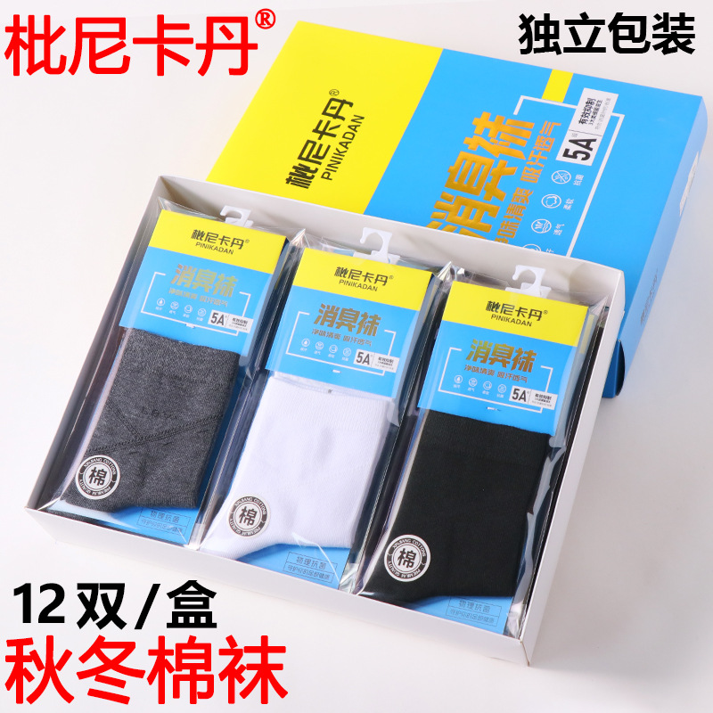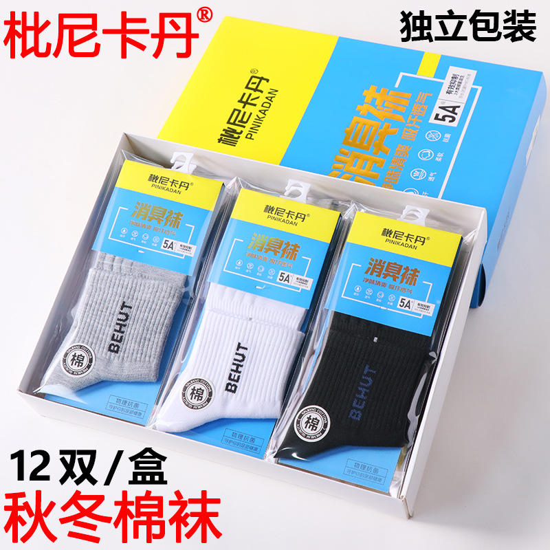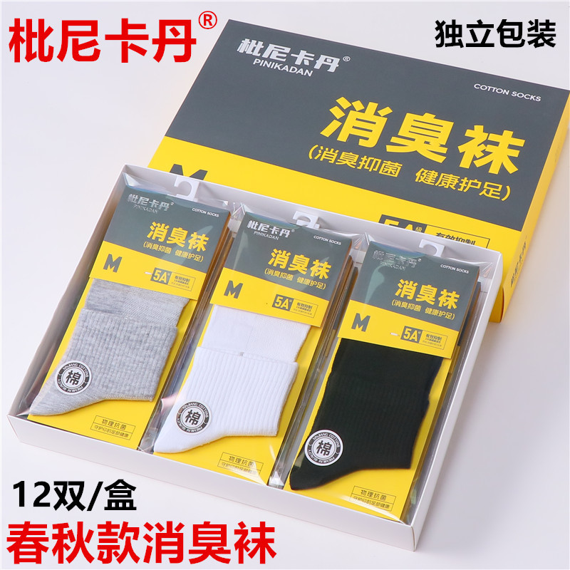 消臭袜男士棉袜四季中筒独立包装盒装运动休闲春秋薄棉防臭袜批发