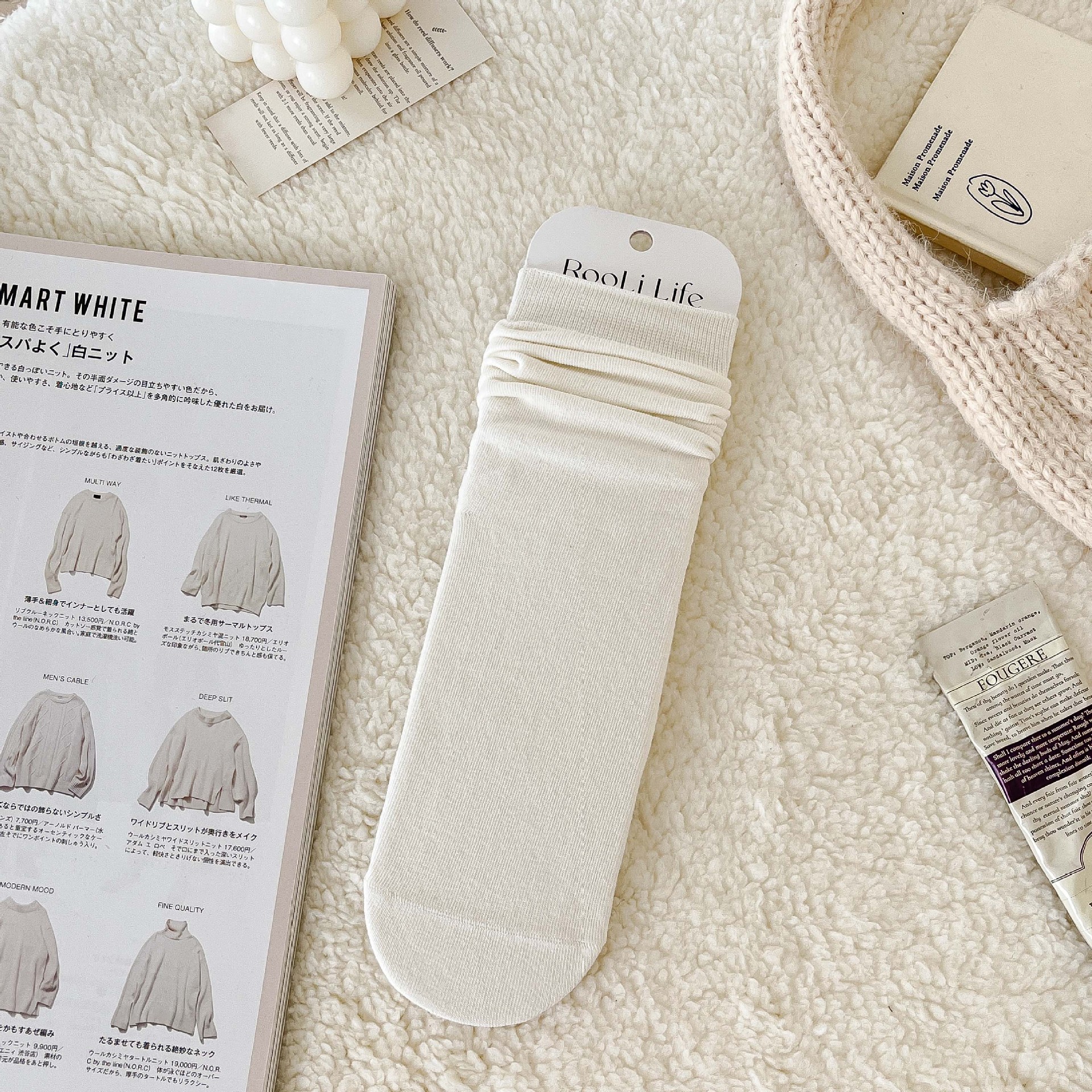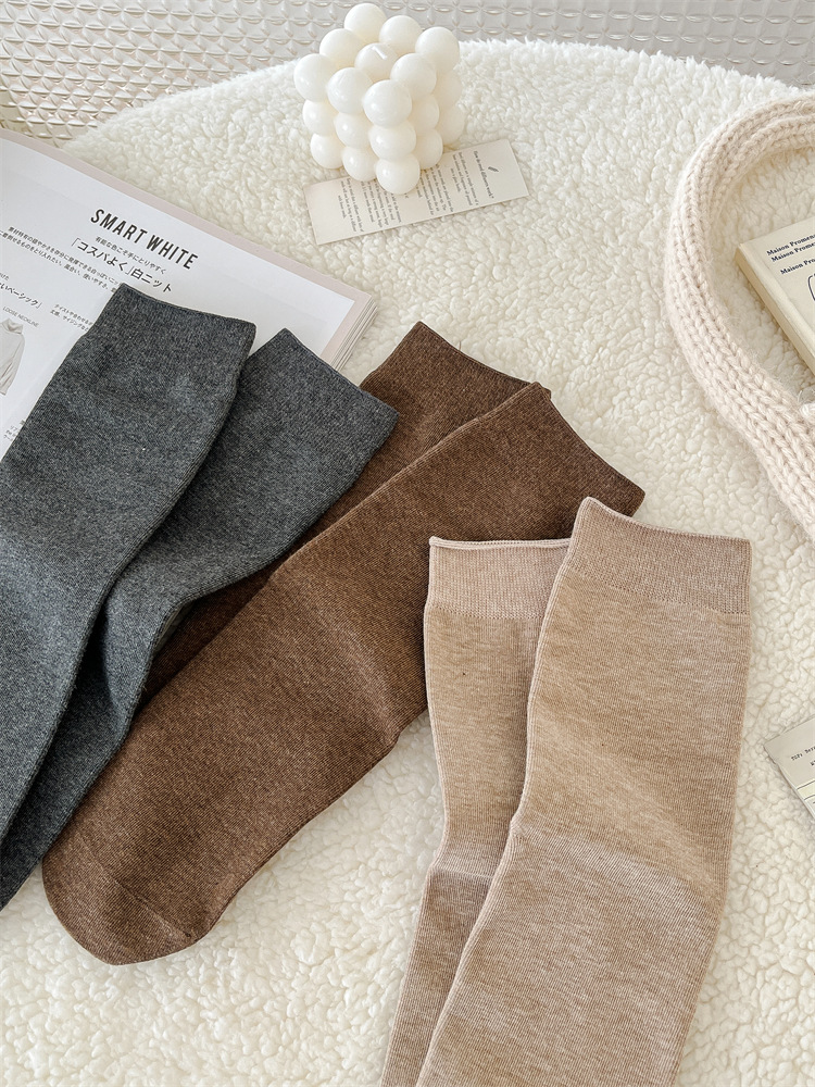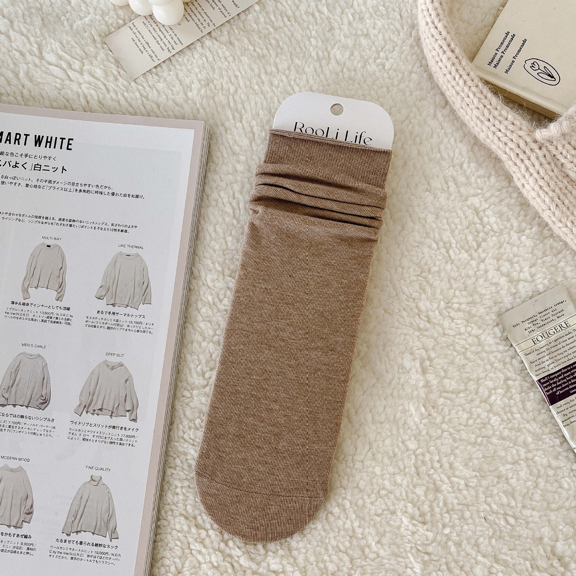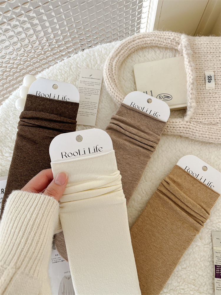 莫兰迪色堆堆袜ins潮袜纯色无骨月子袜日韩中筒袜百搭秋冬袜子女