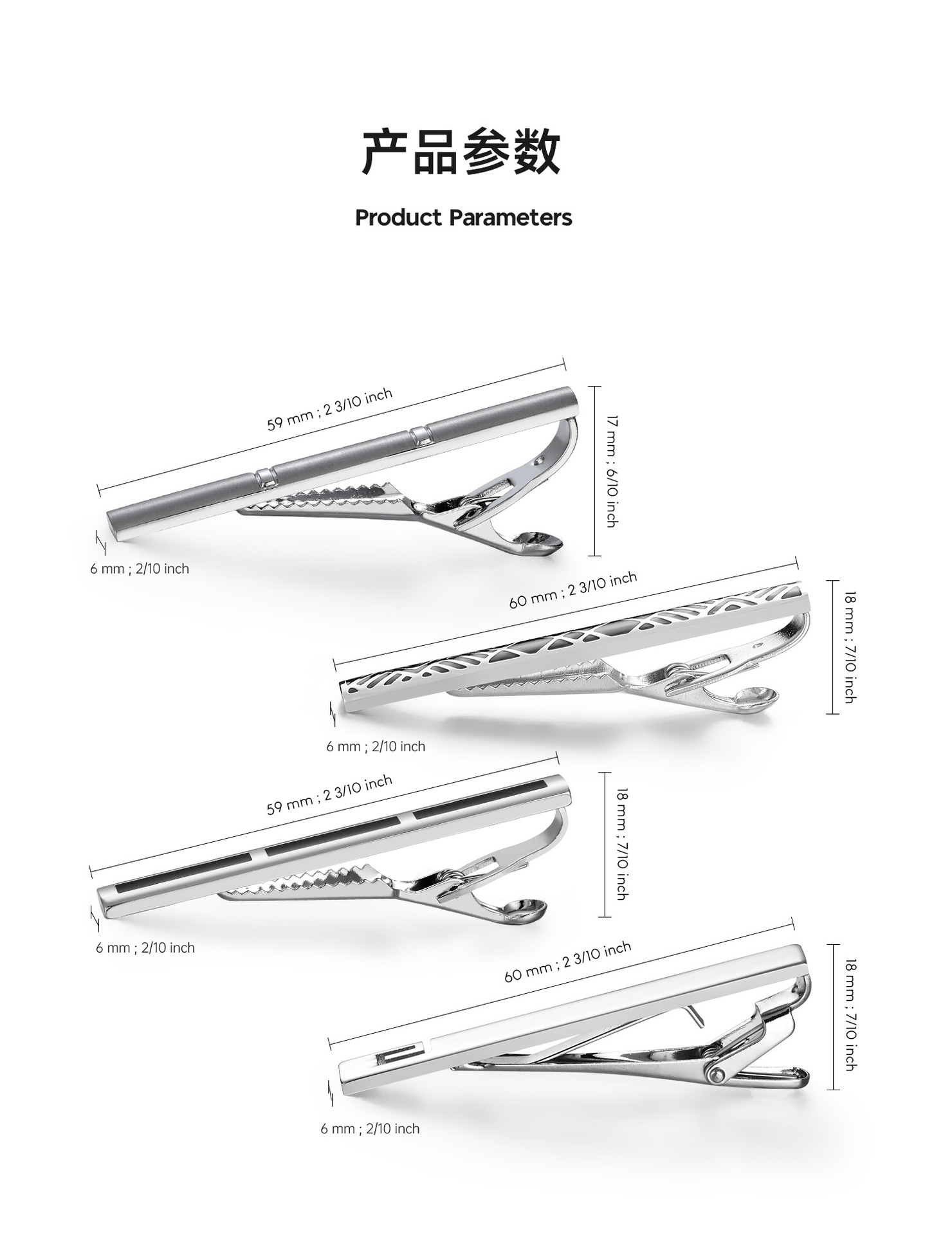 戴丽男士银色领带夹套装商务正装领夹黑色简约领带夹子亚马逊速卖