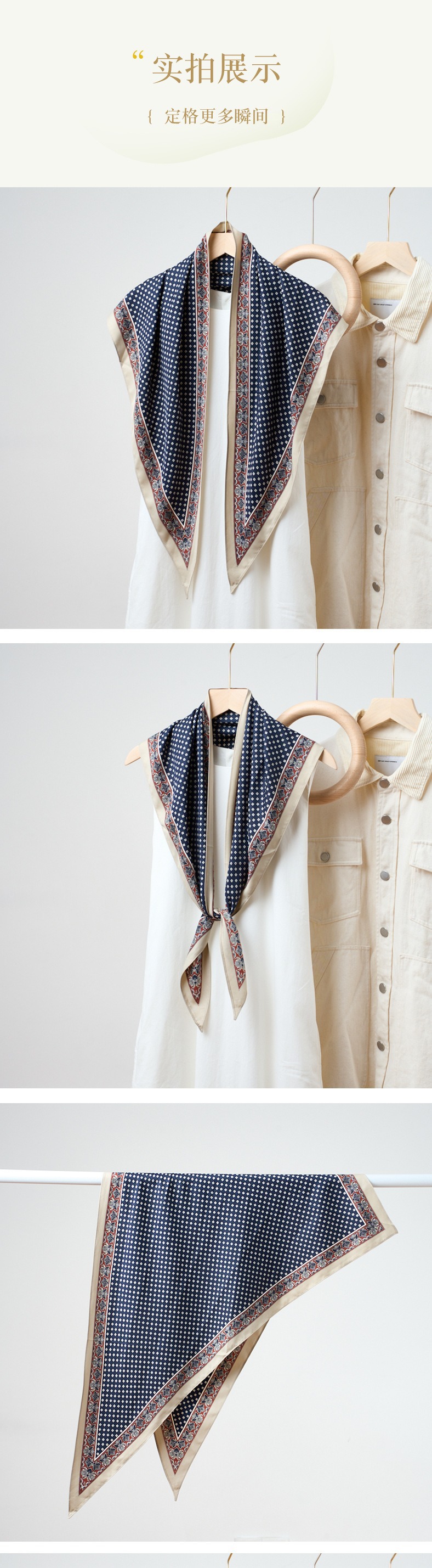 韩版花朵棉麻菱形三角巾丝巾女春秋百搭装饰领巾围巾腰间丝巾腰带
