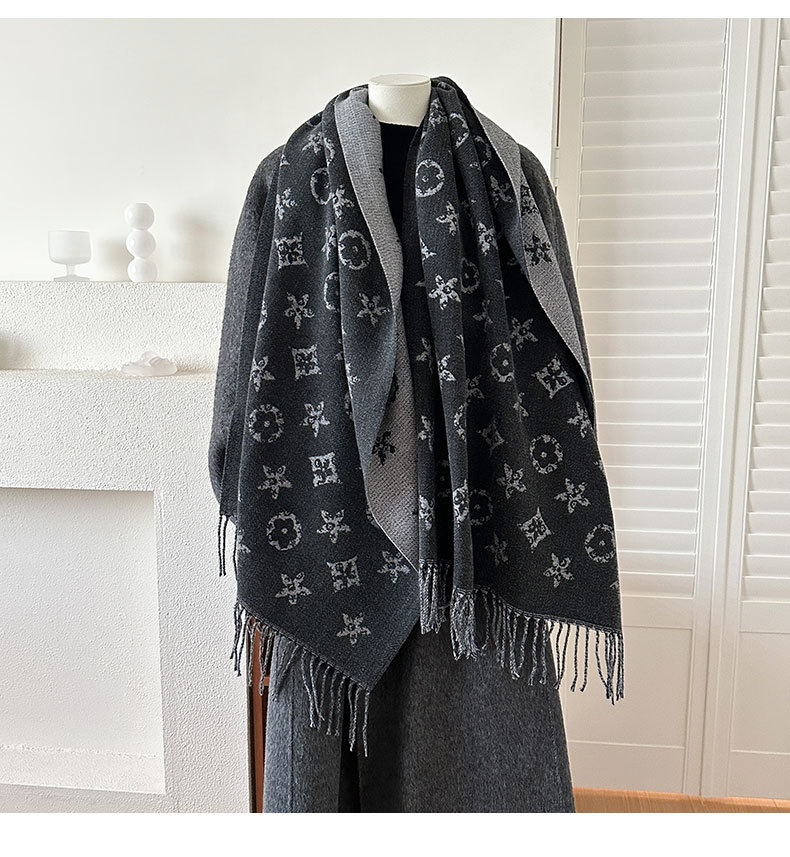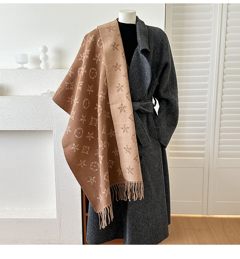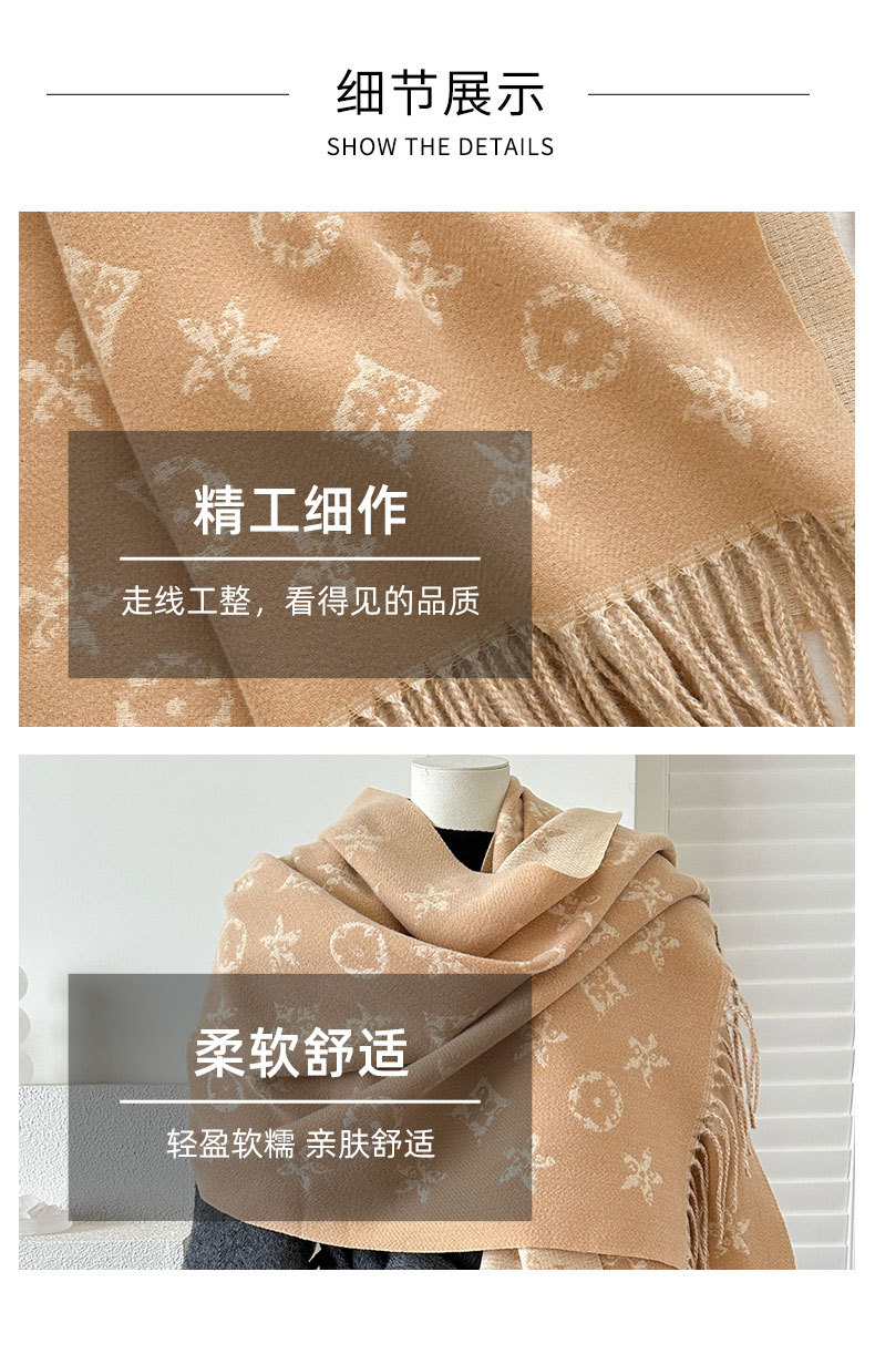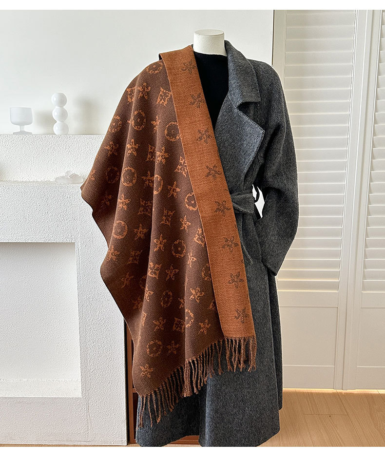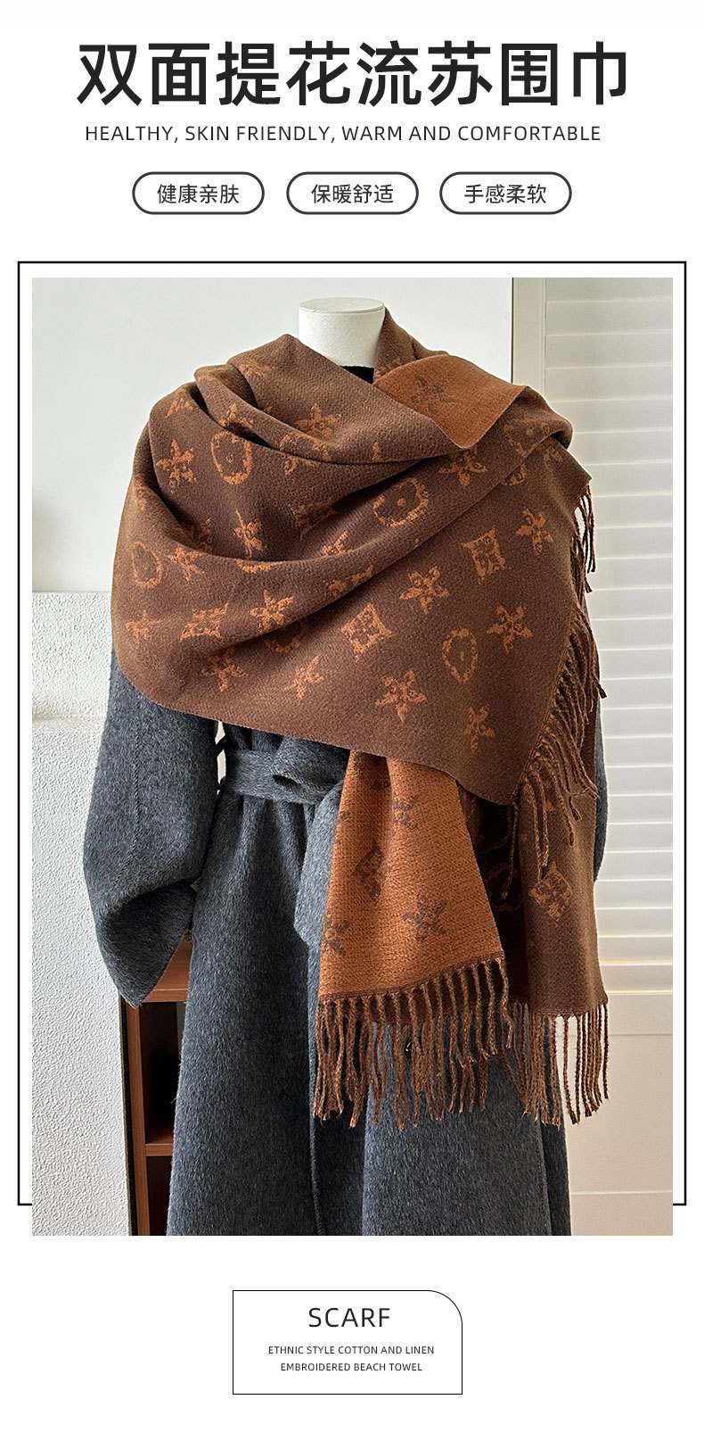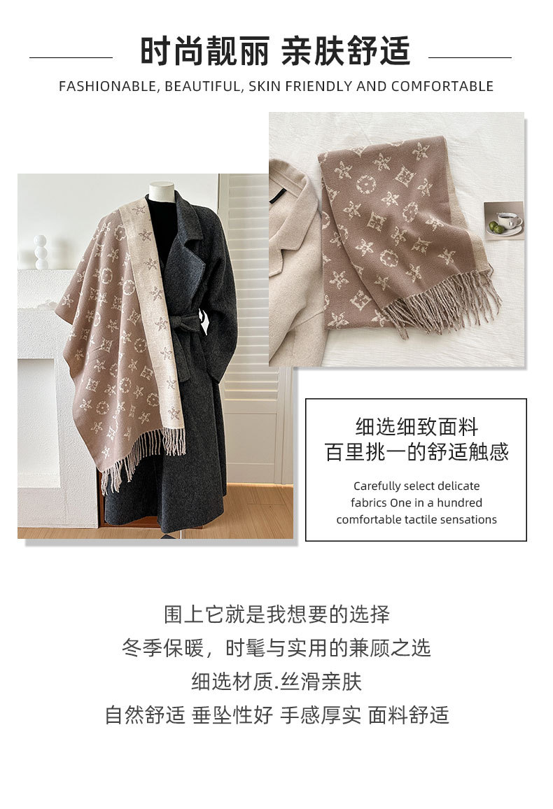 2025新款英伦风高级感围巾女冬双面提花流苏长款披肩两用加厚保暖