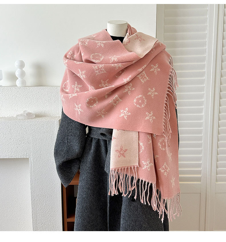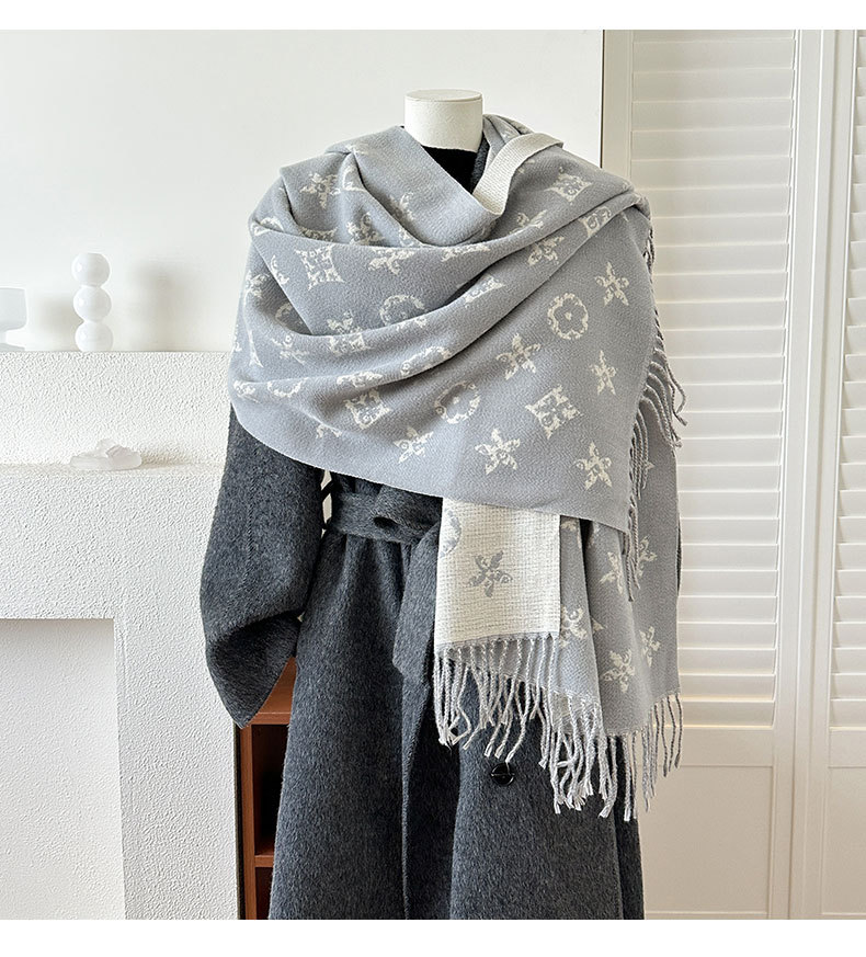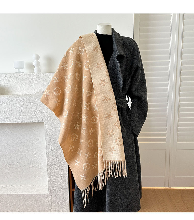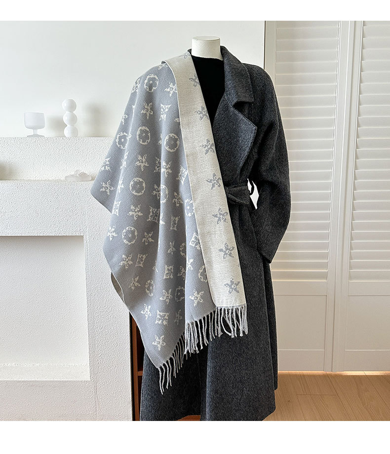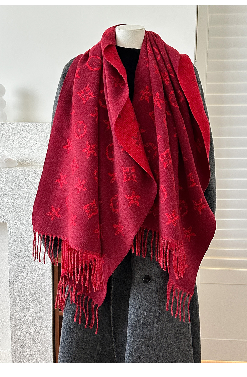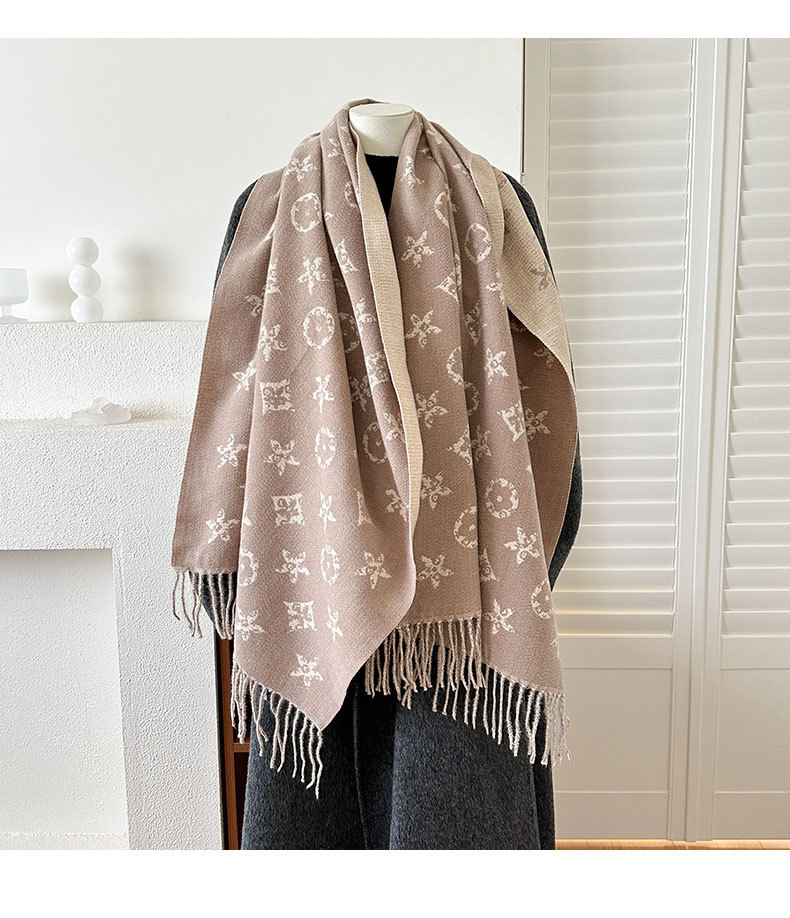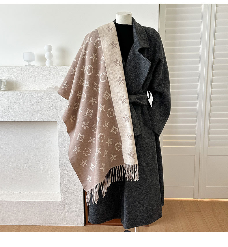 2025新款英伦风高级感围巾女冬双面提花流苏长款披肩两用加厚保暖