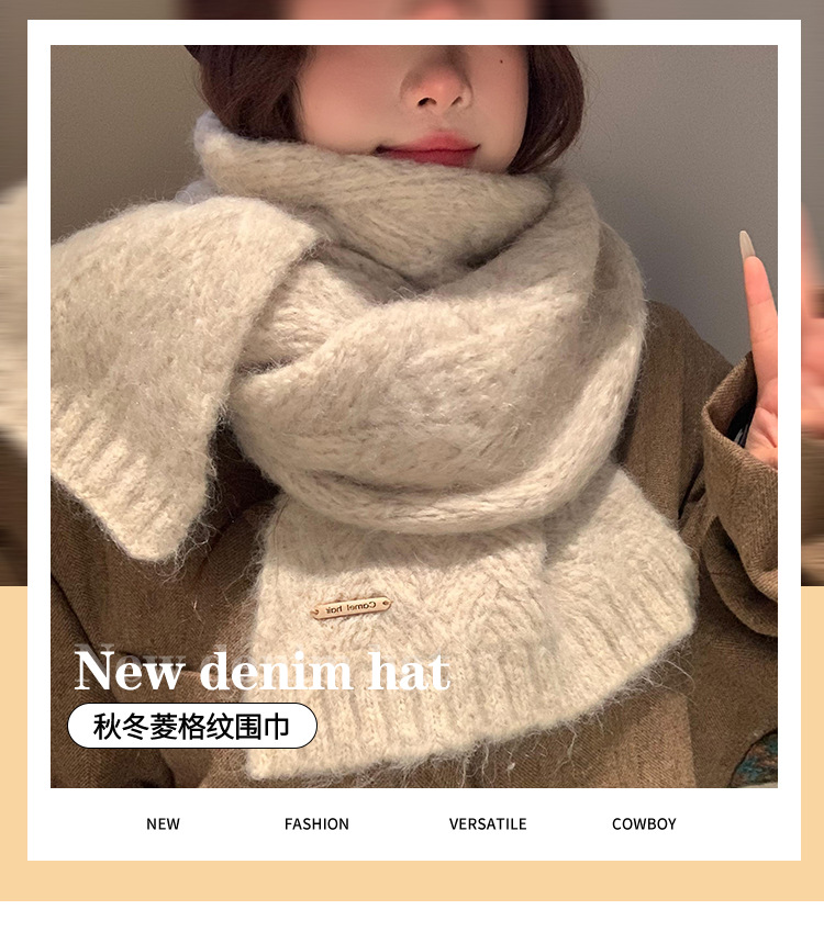 新款羊驼毛围巾女韩版百搭保暖氛围感加厚秋冬季ins学生针织围巾