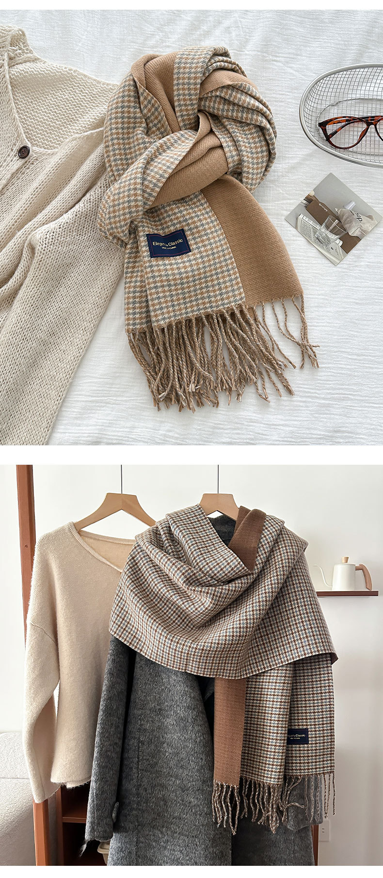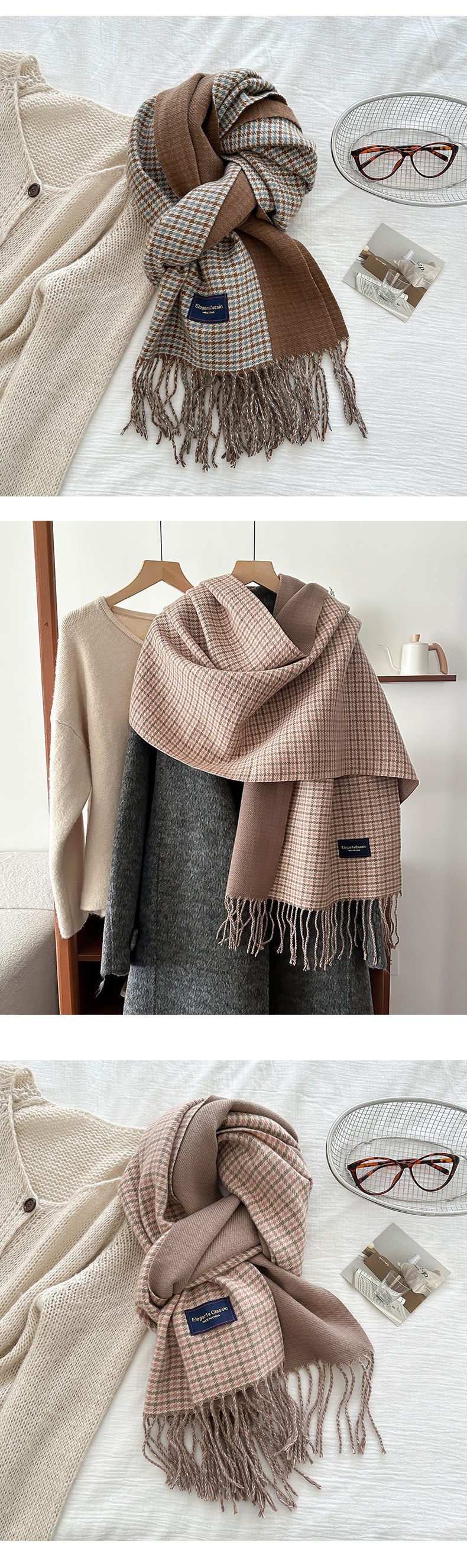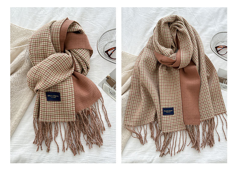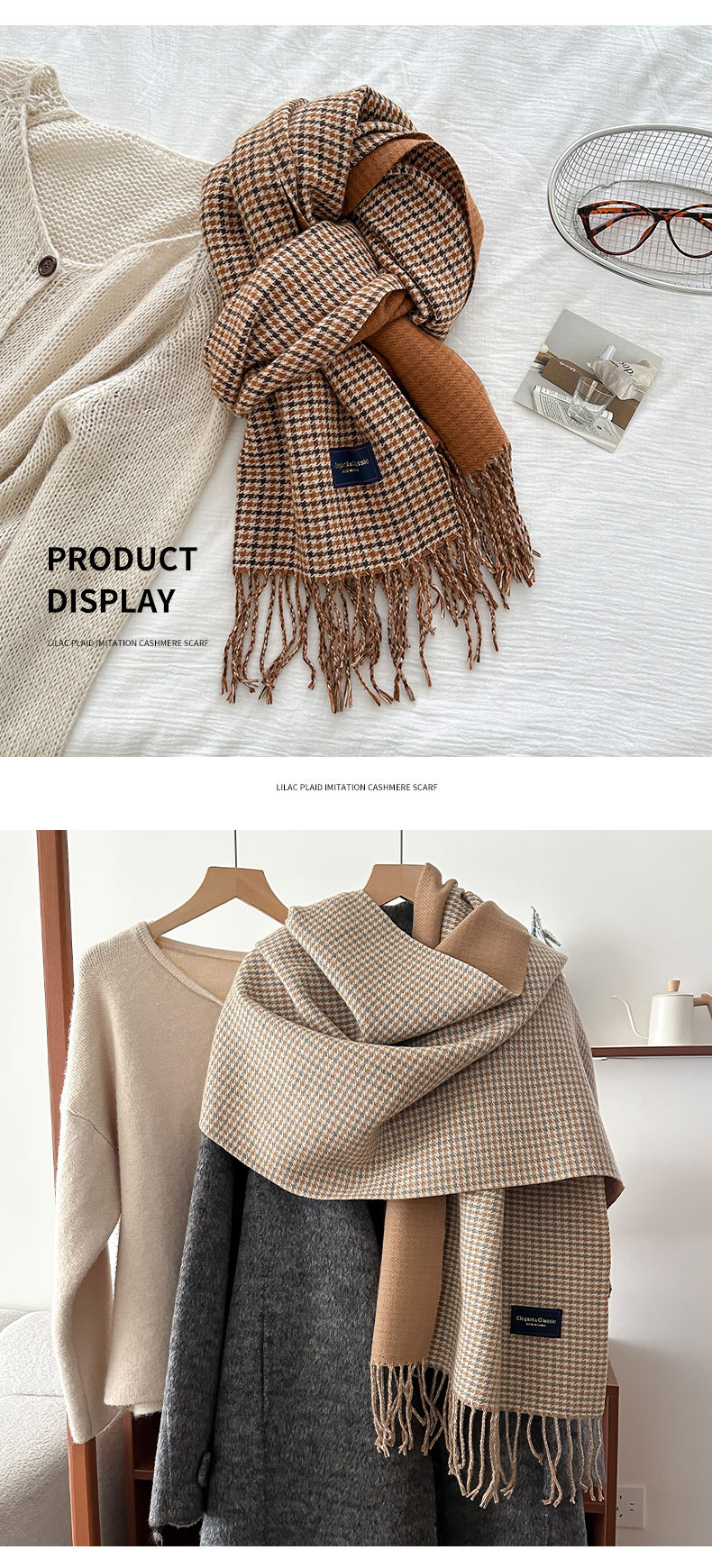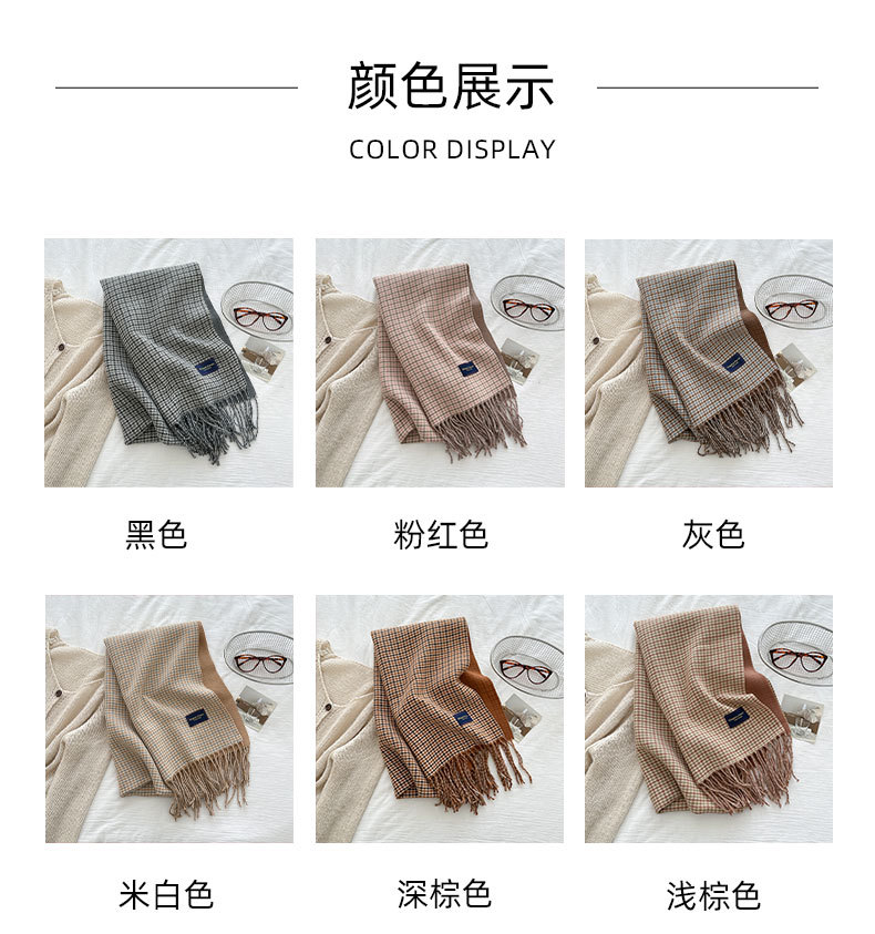 秋冬新款保暖情侣学生双面格子仿羊绒围巾女韩版加厚流苏外贸围脖