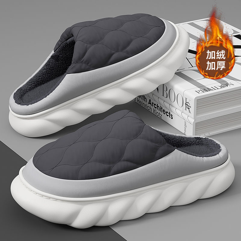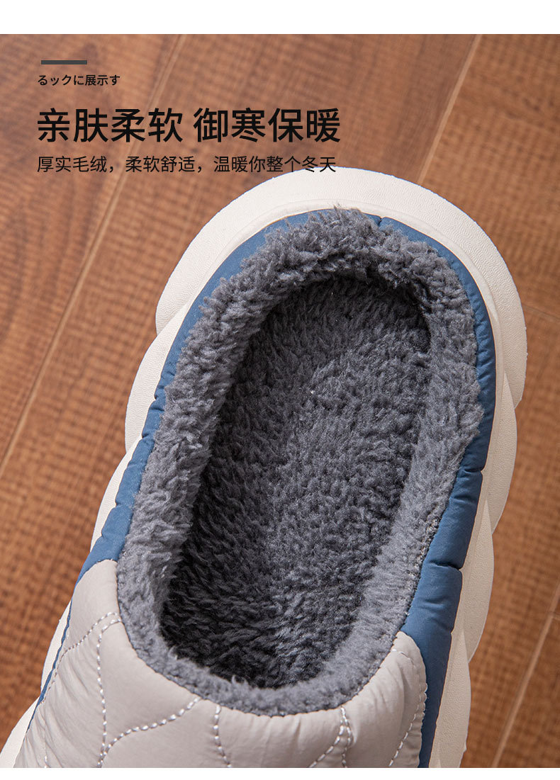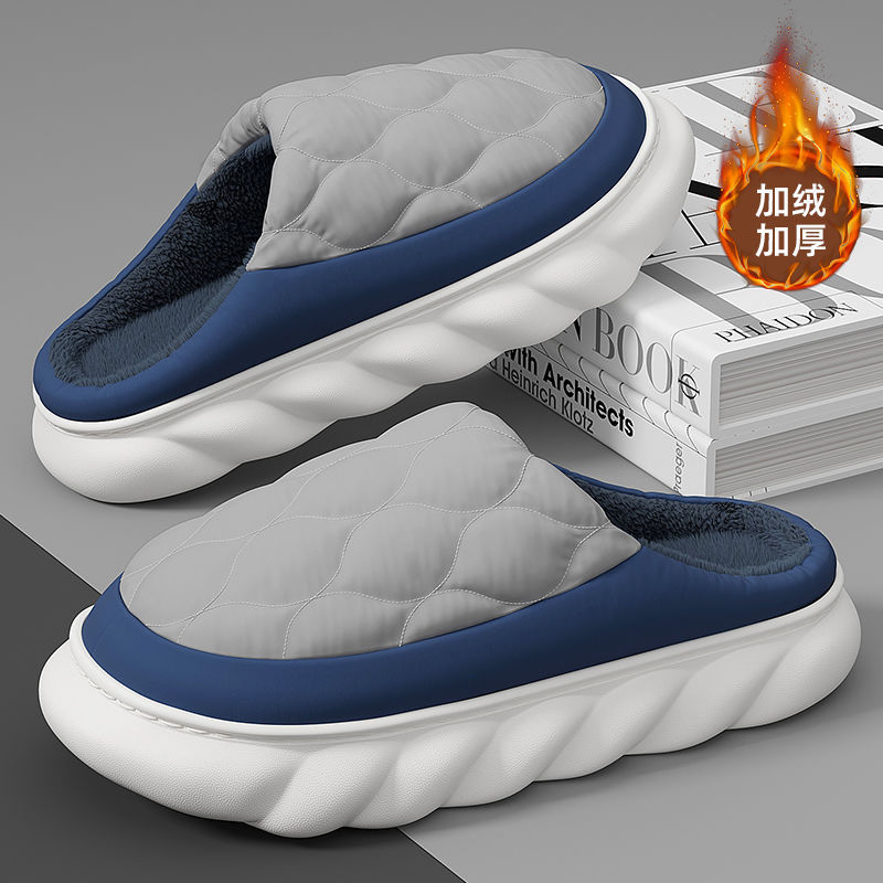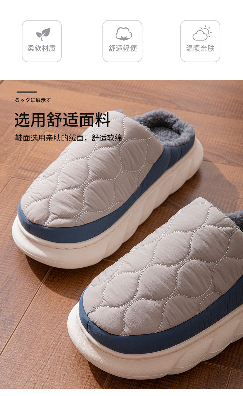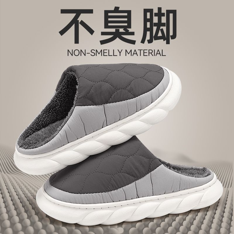 防水羽绒布棉拖鞋男士秋冬季家居家用防滑厚底毛绒加大码棉拖男款