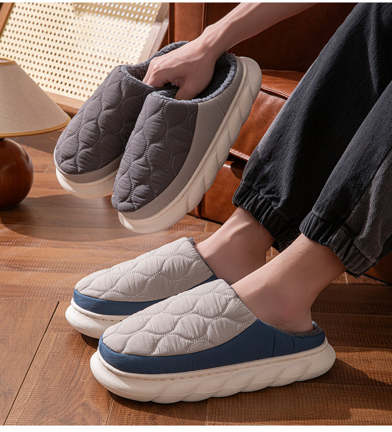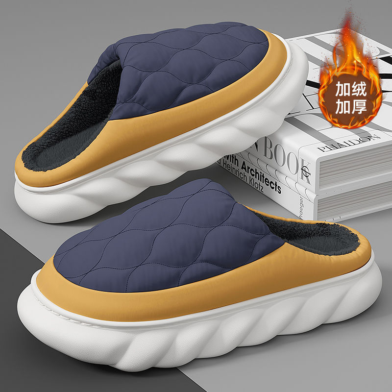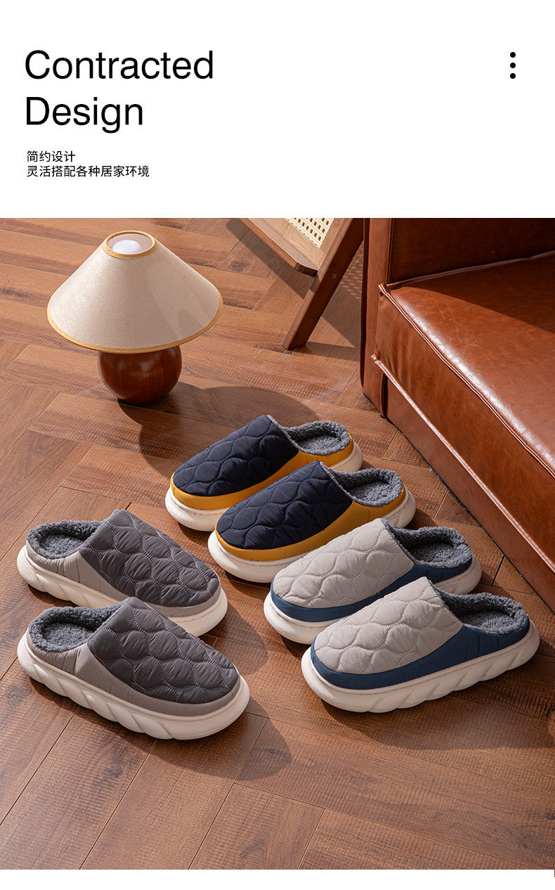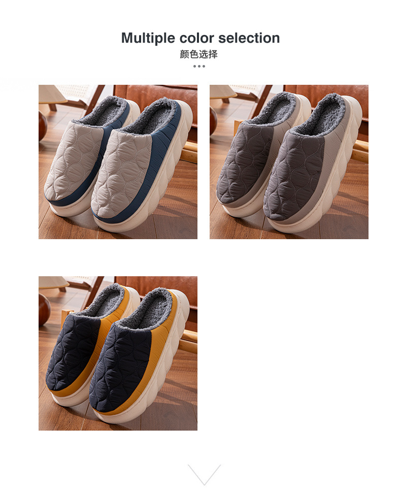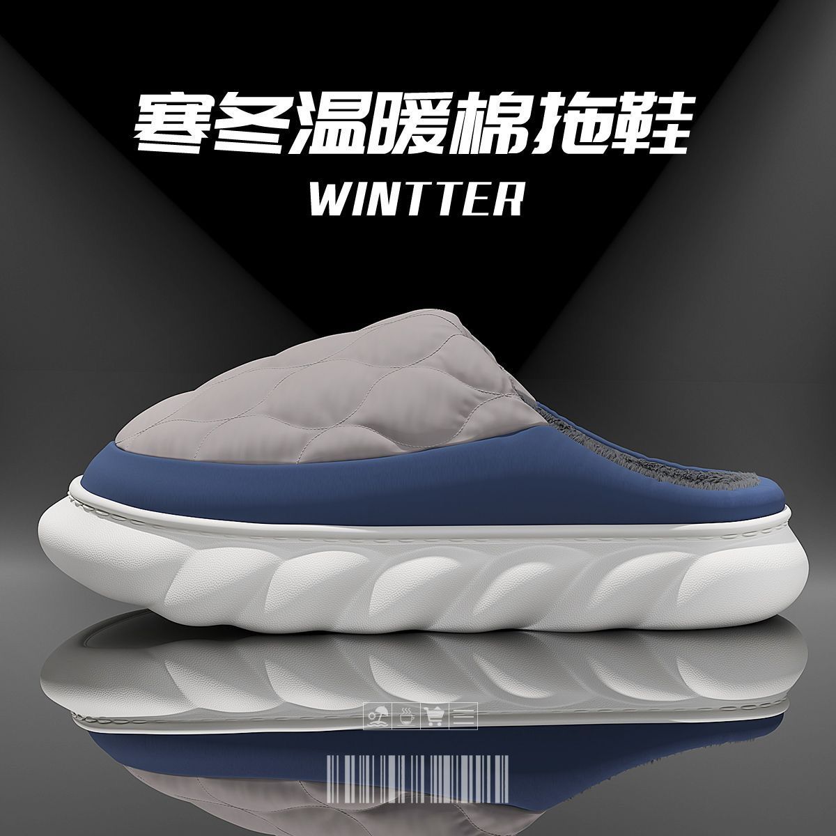 防水羽绒布棉拖鞋男士秋冬季家居家用防滑厚底毛绒加大码棉拖男款