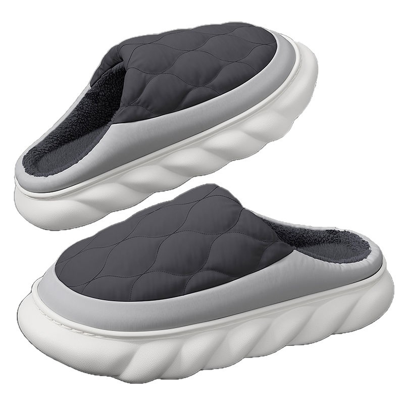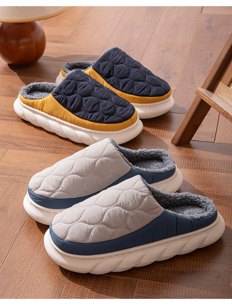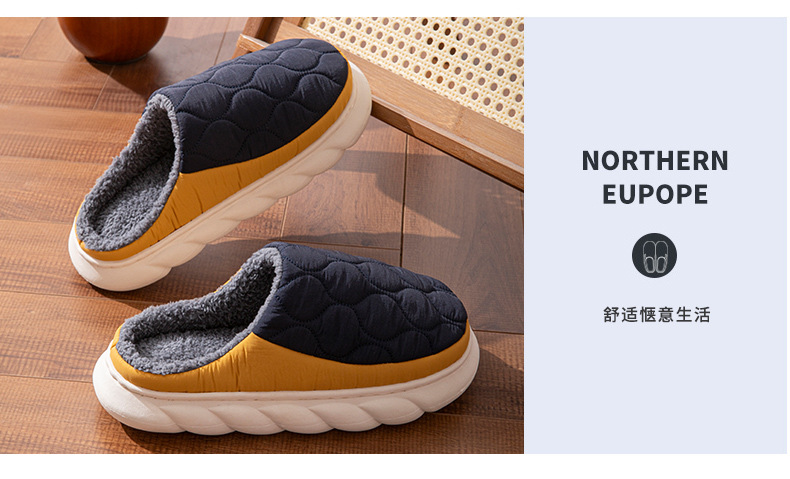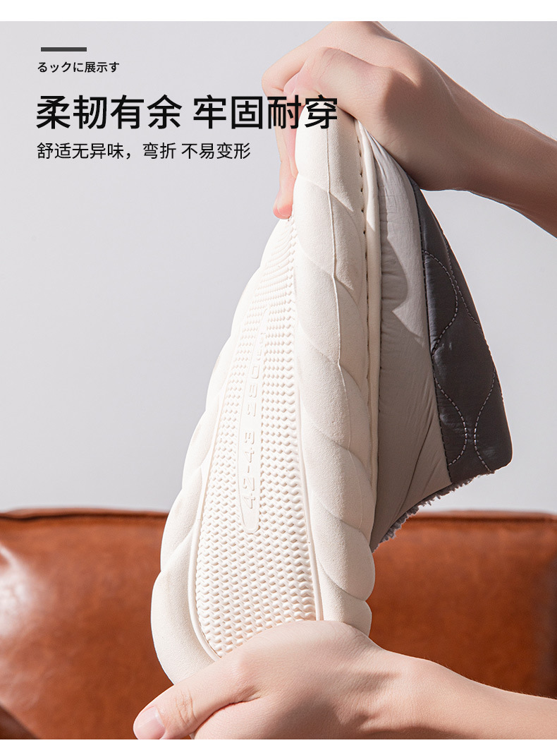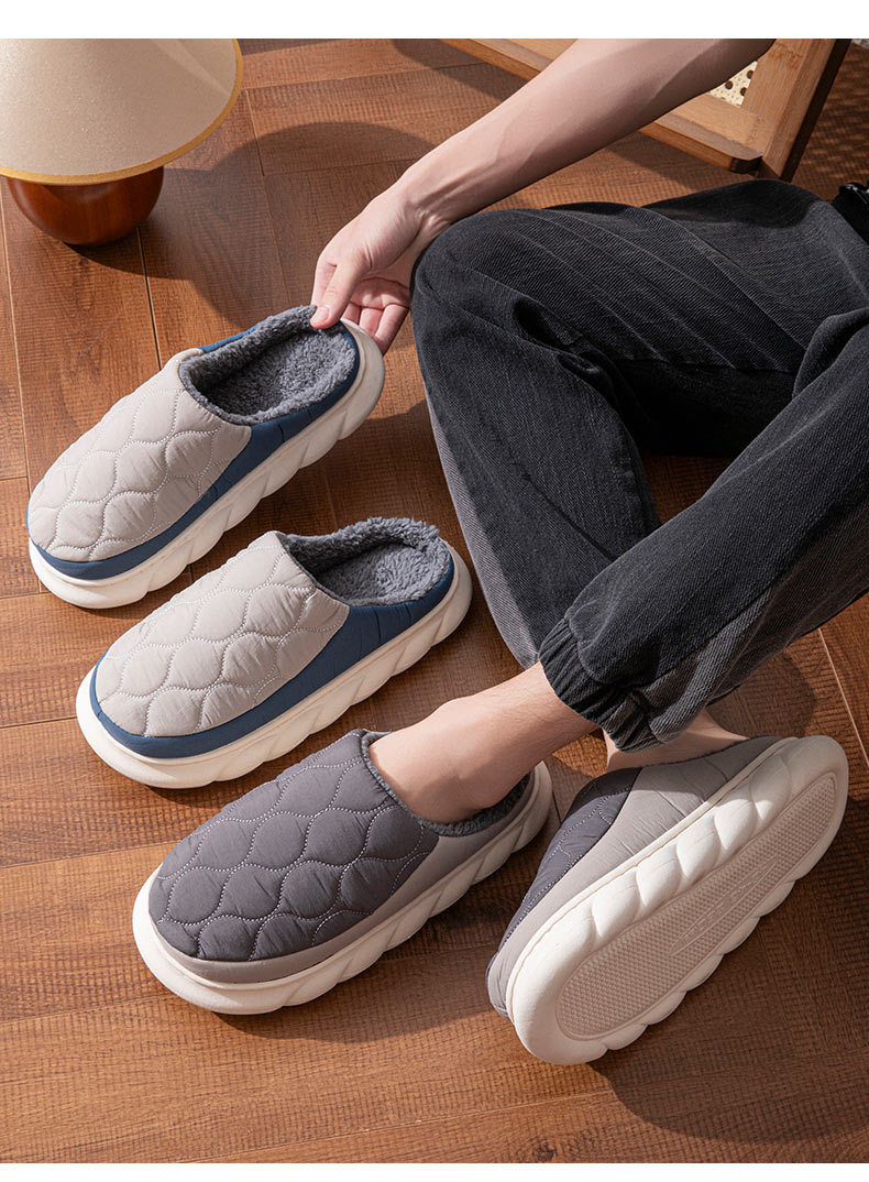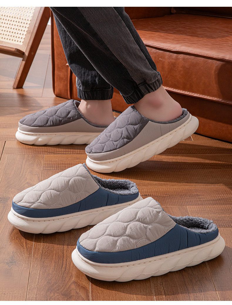 防水羽绒布棉拖鞋男士秋冬季家居家用防滑厚底毛绒加大码棉拖男款