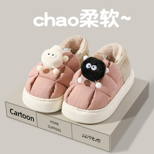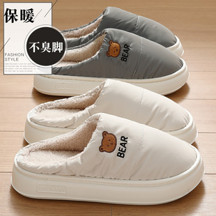 羽绒布棉拖鞋防水男士家居大码室内防滑毛绒保暖秋冬季棉拖女批发
