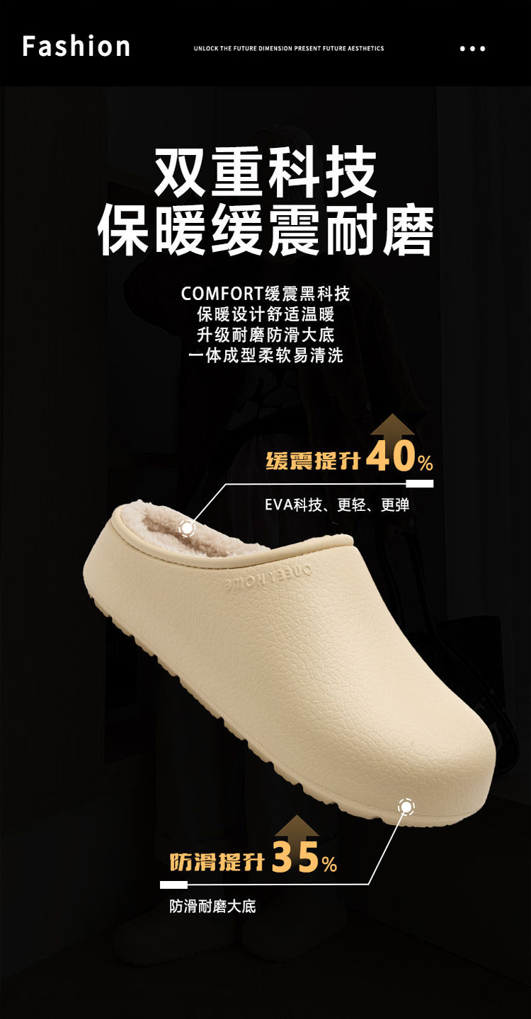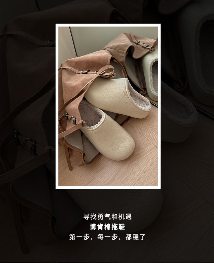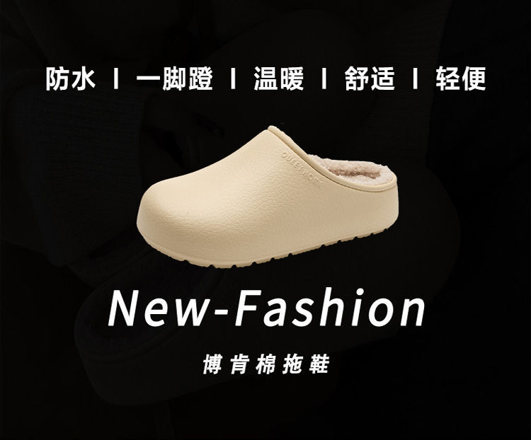 防水棉拖鞋女博肯款2025新款包头保暖毛绒居家外穿通勤棉拖鞋女冬