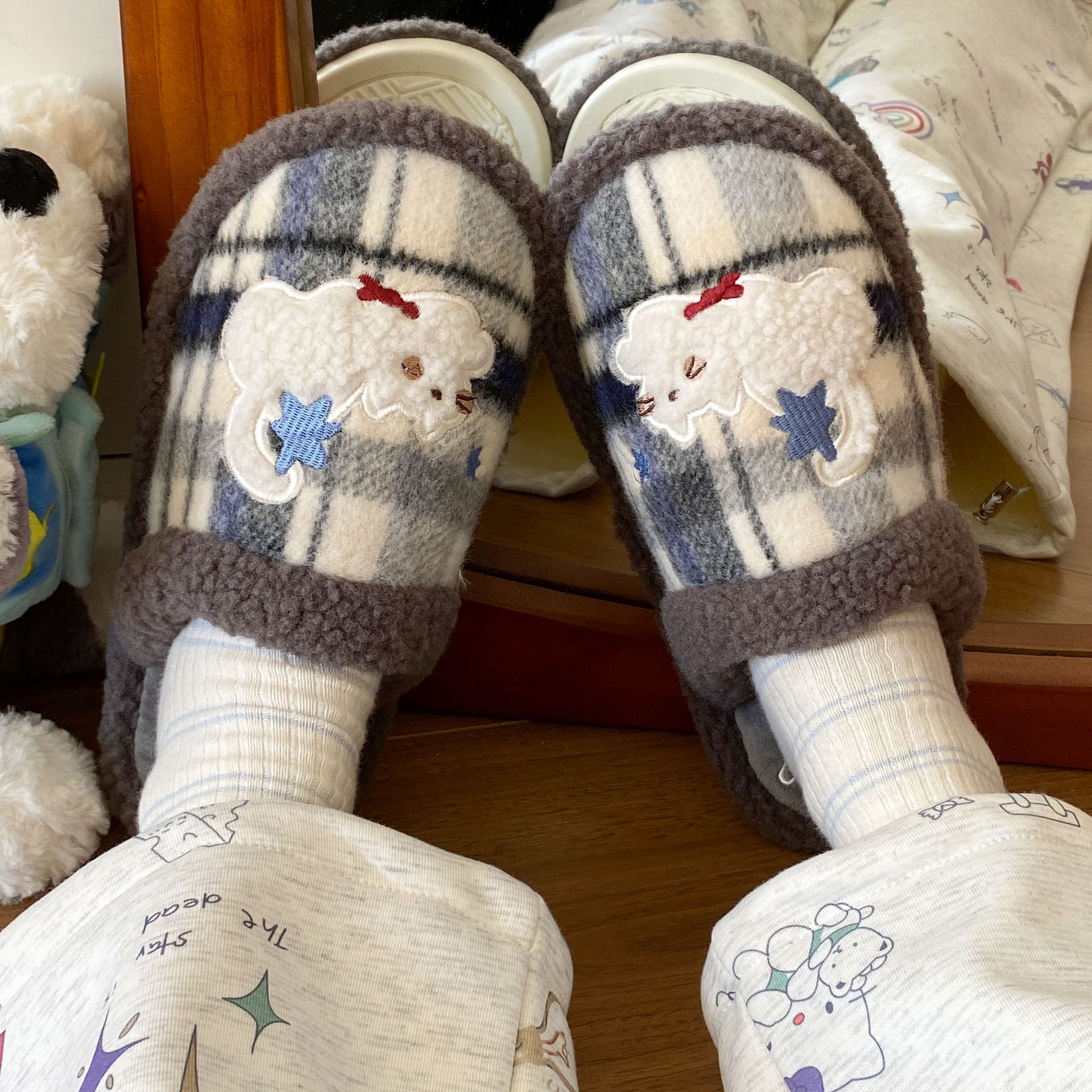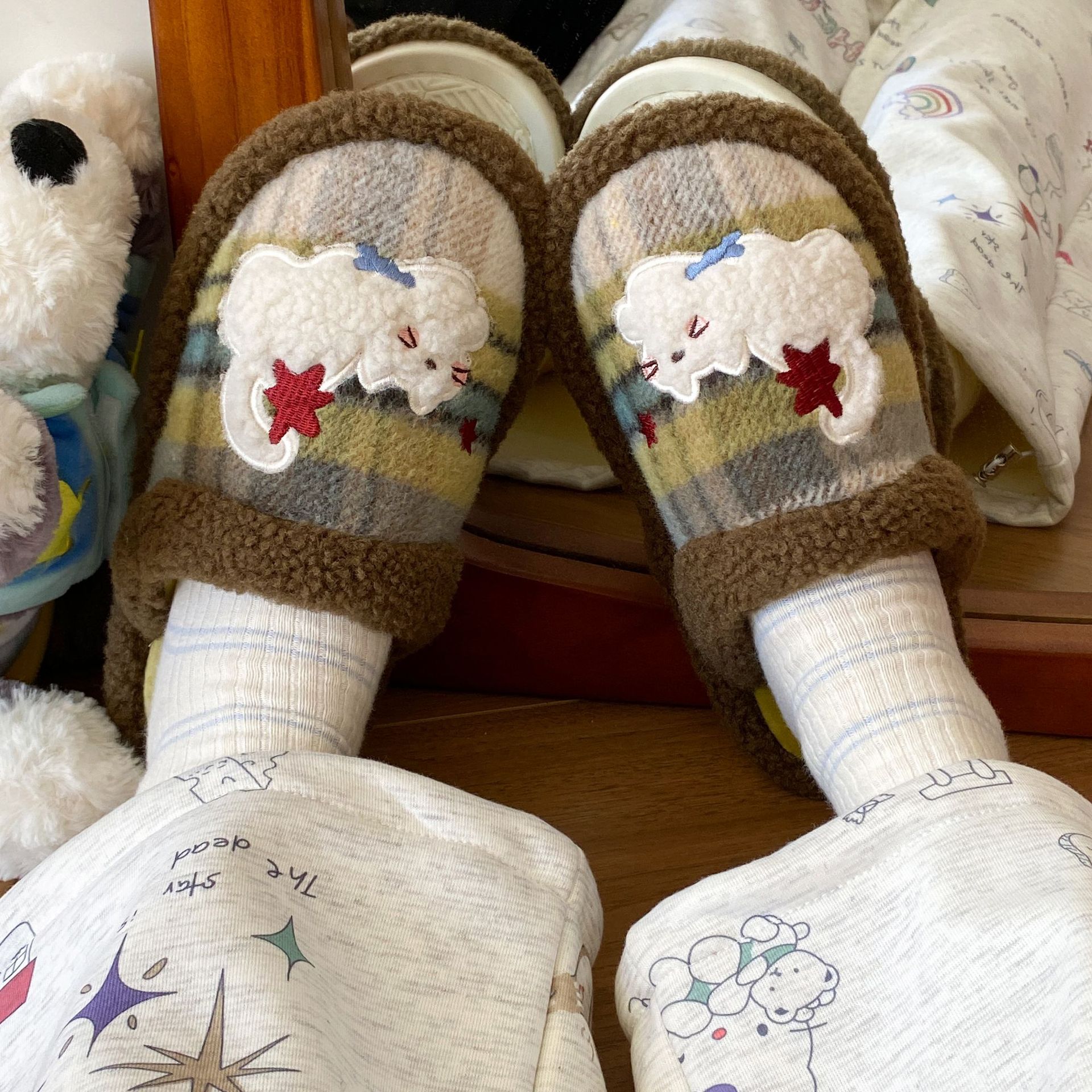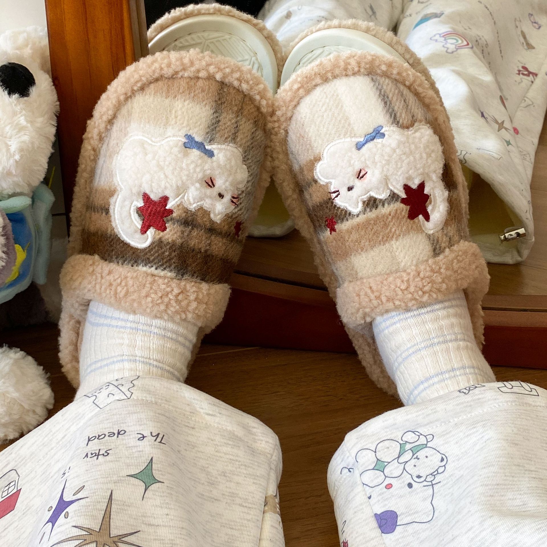 冬季新款时尚男士毛绒棉拖可外穿一字拖鞋外穿女平底女士毛毛拖鞋