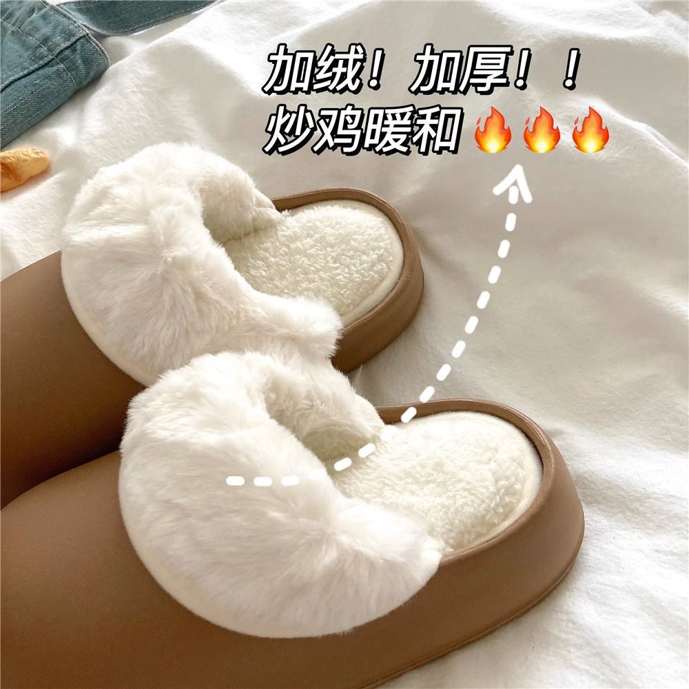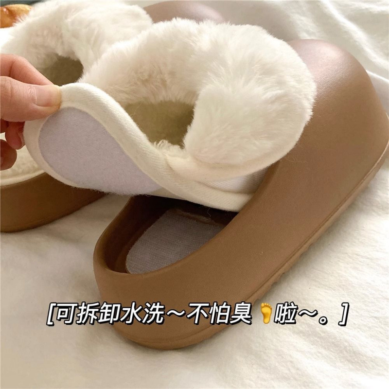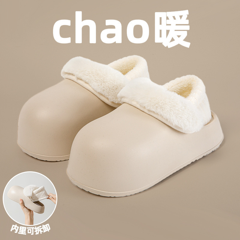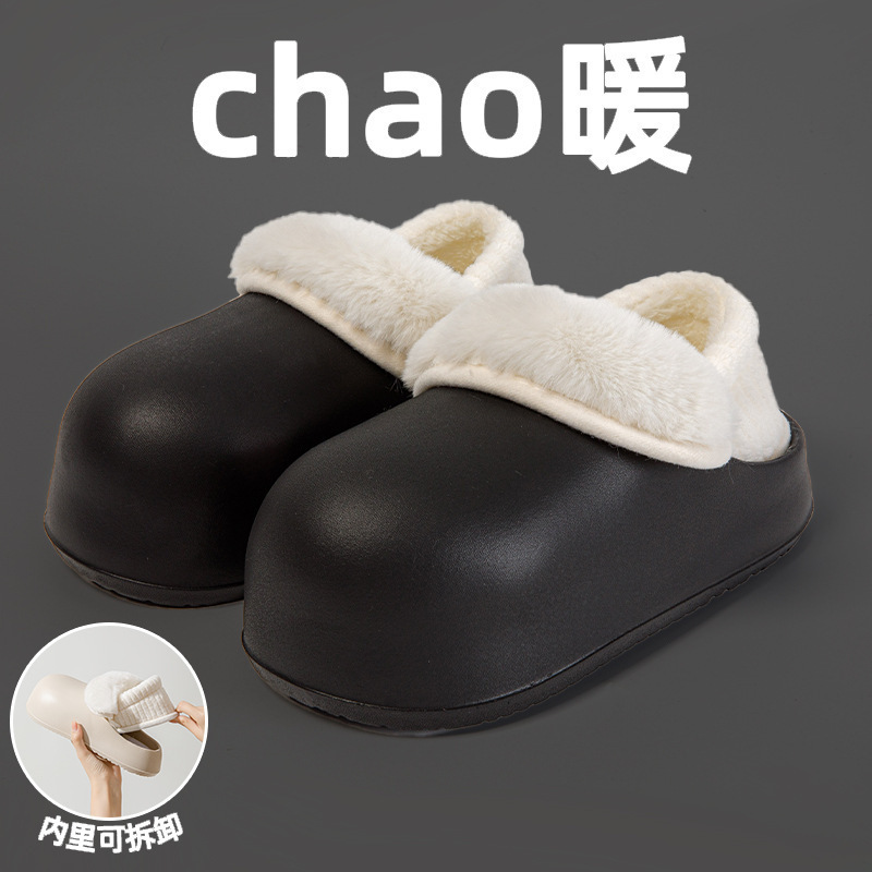 防滑可拆卸棉拖鞋女新款秋冬季防水室内家居厚底保暖情侣毛拖鞋男