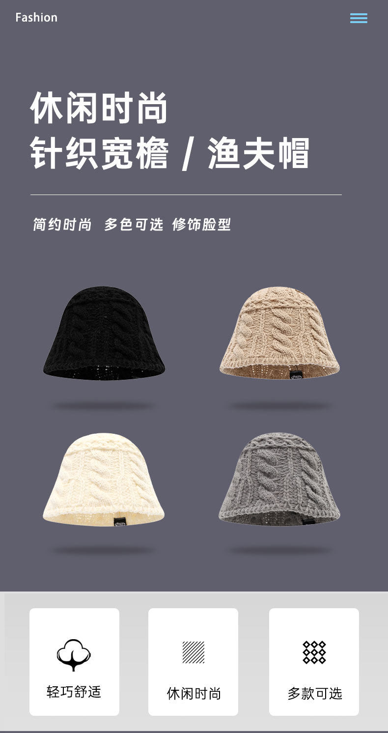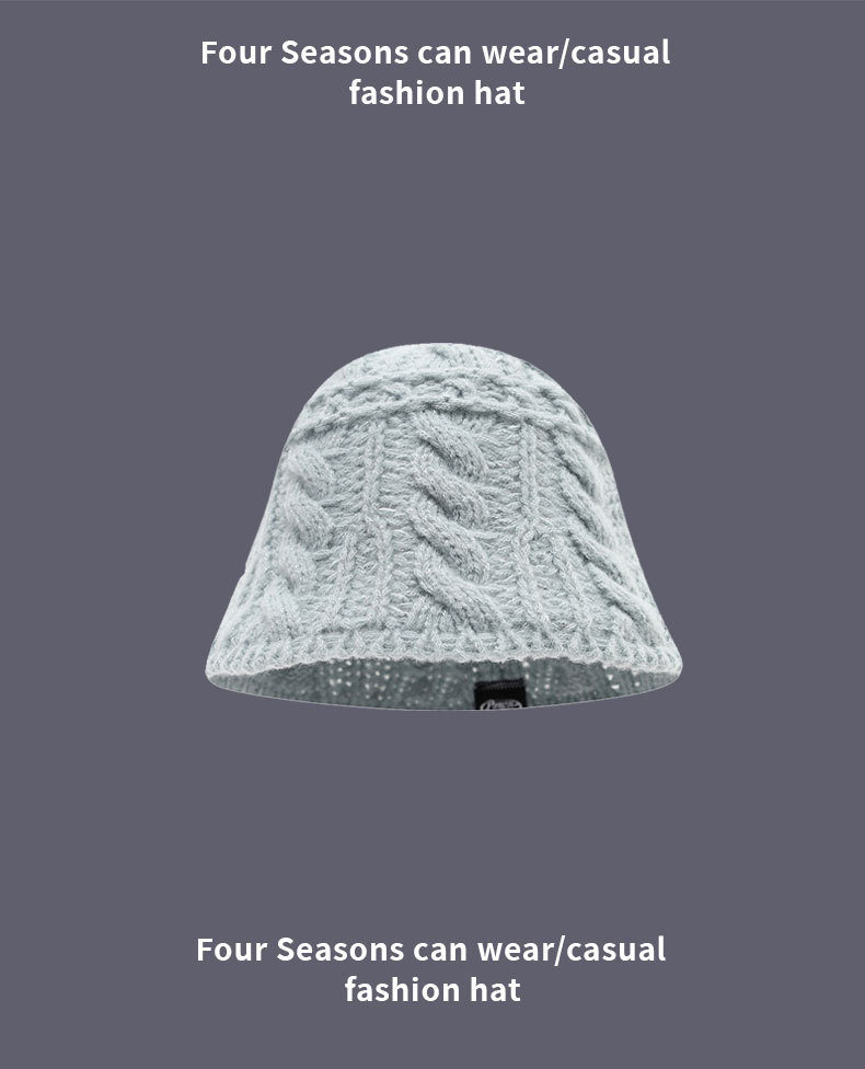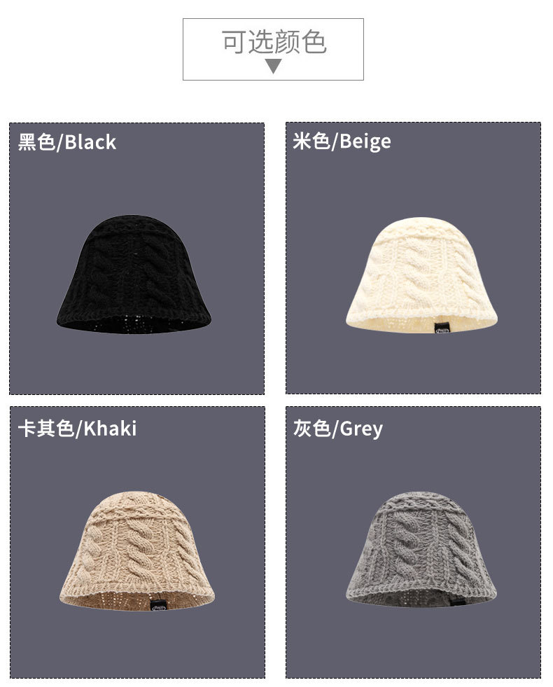 软糯黑秋冬款纯色羊毛粗纹路帽子保暖针织慵懒羊绒圆顶渔夫盆帽女