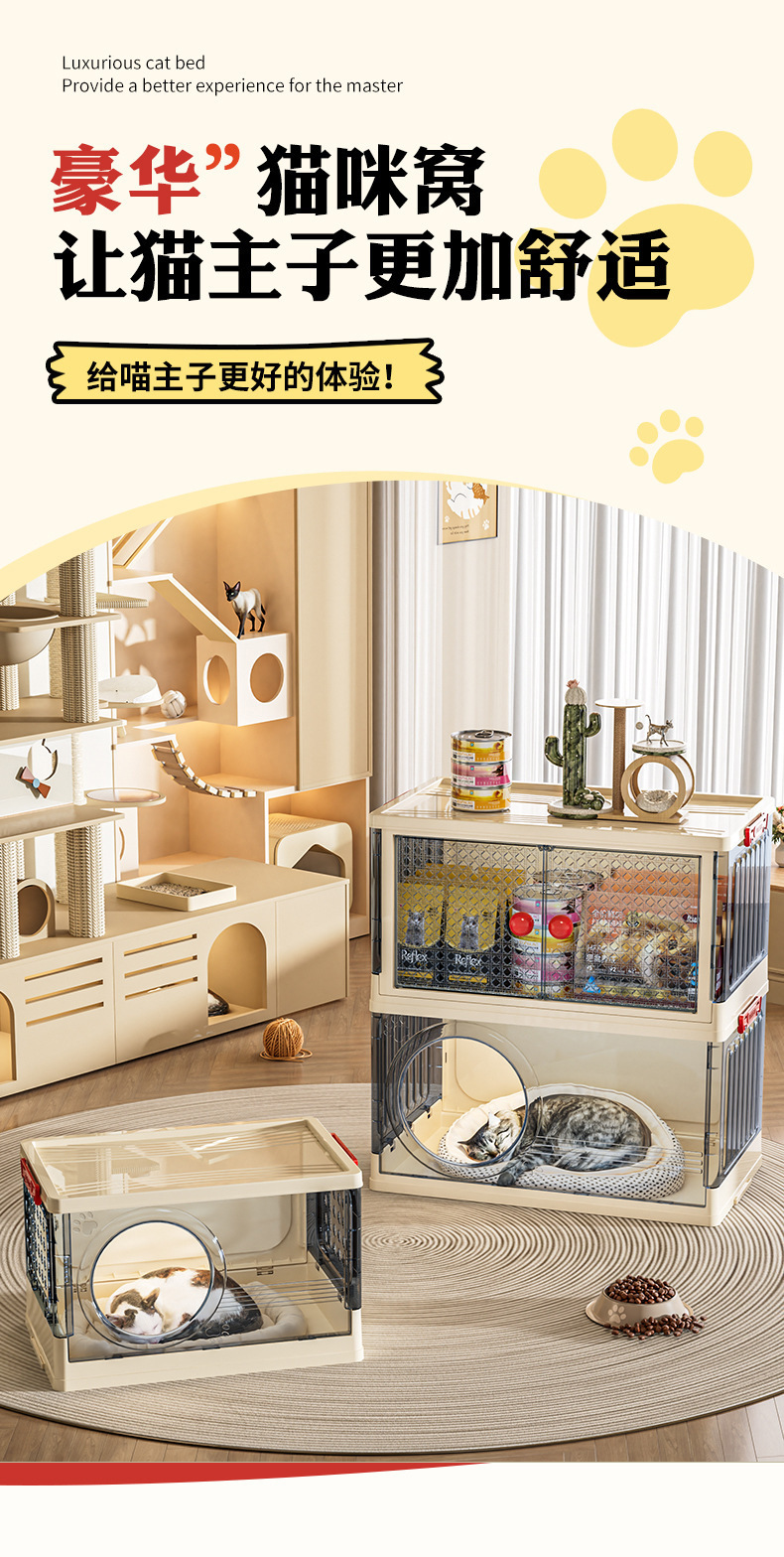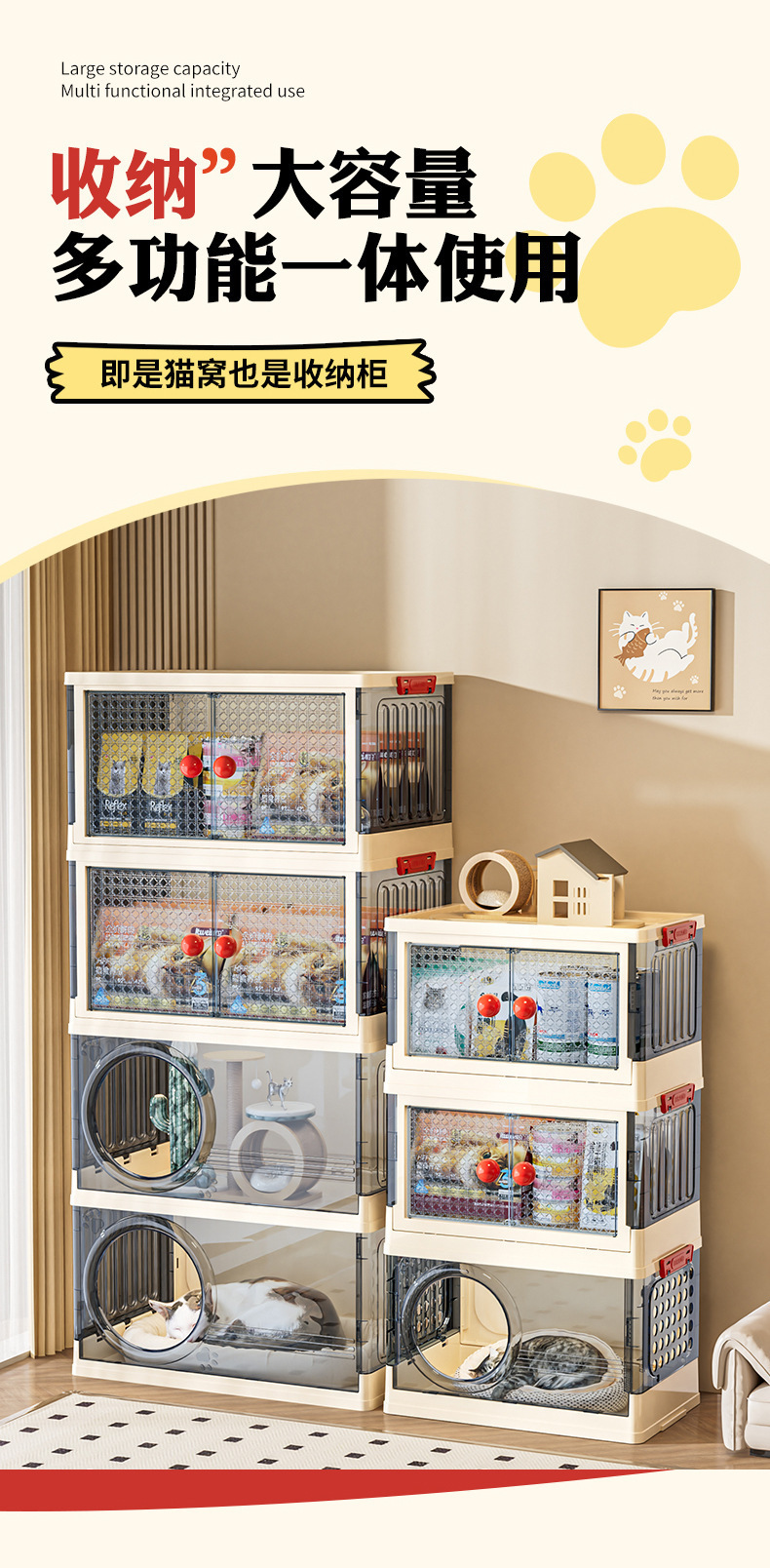 拼接猫窝家用四季宠物窝多层玩具屋多功能零食大容量收纳柜猫笼