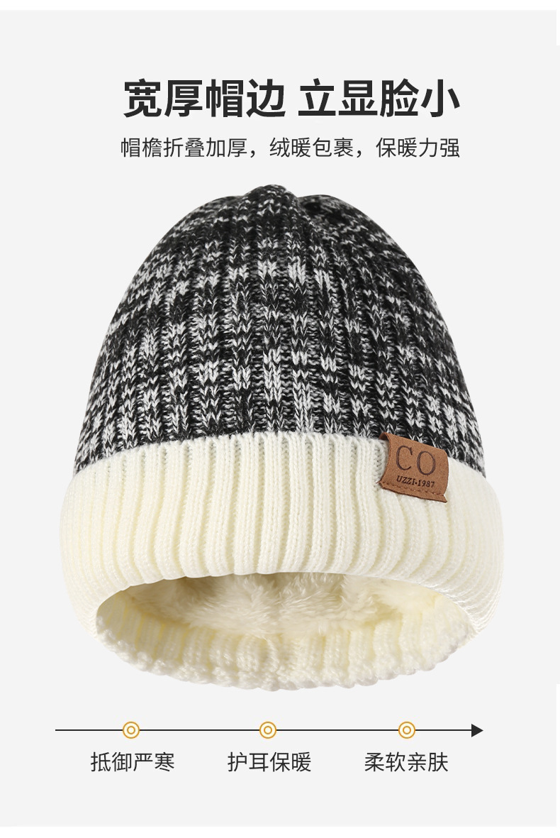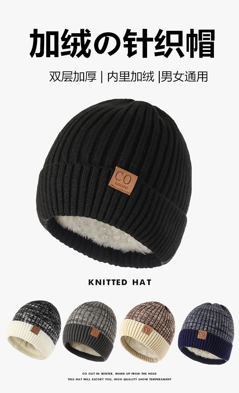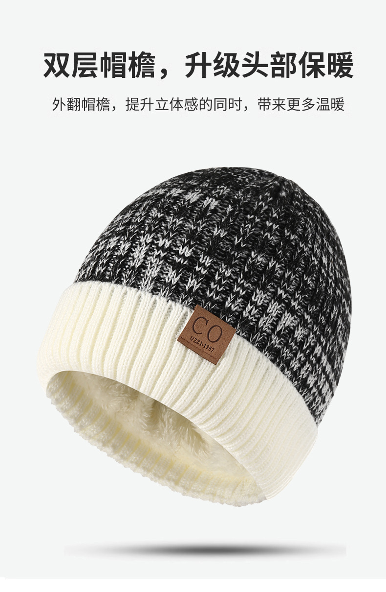 跨境款显脸小针织字母标男毛线帽韩版帽子秋冬加绒加厚护耳套头帽