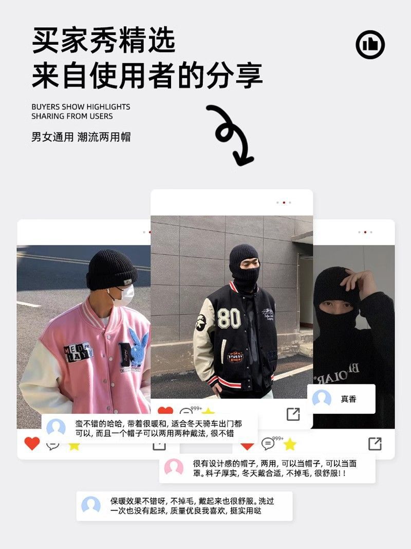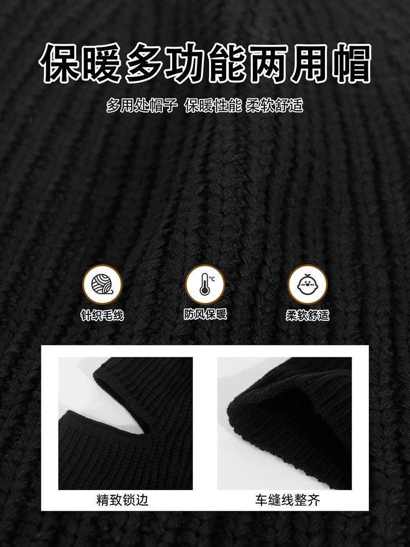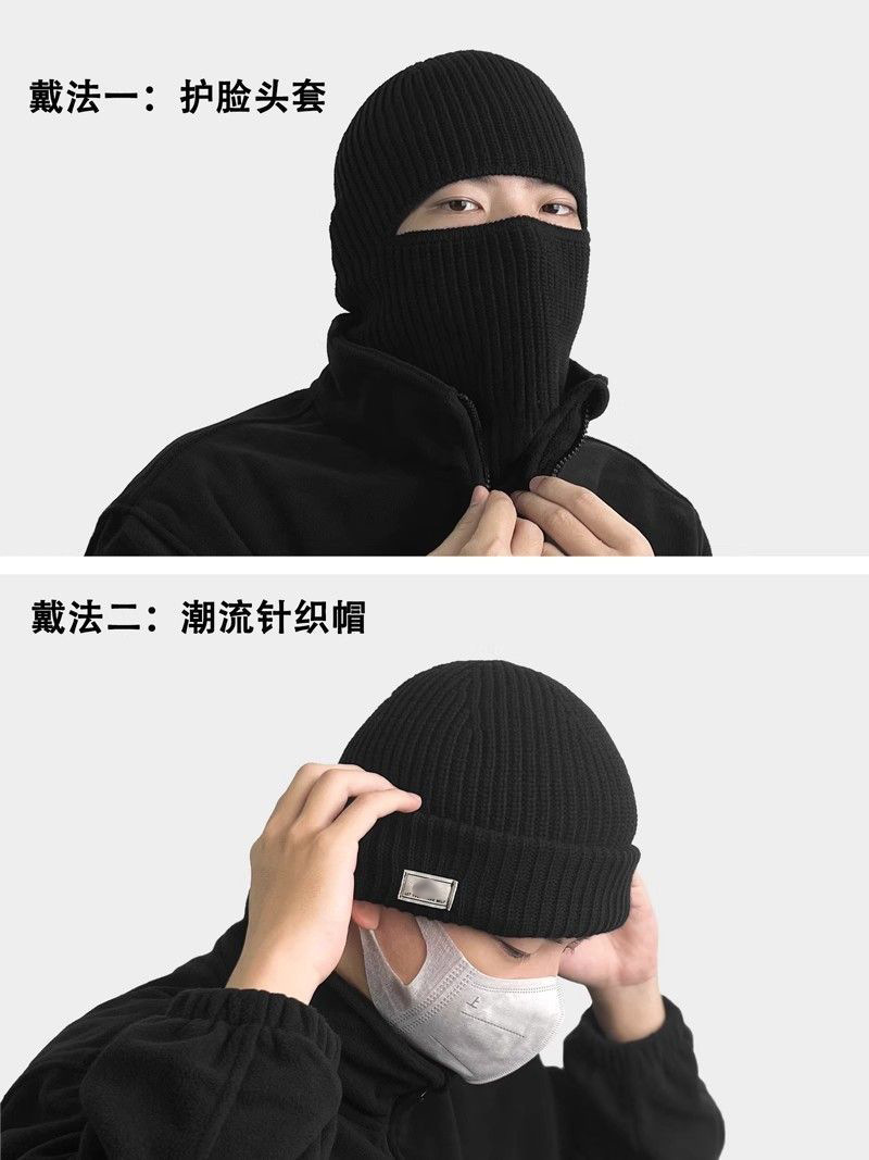 新款帽子冬季男女同款拉法帽针织毛线帽防风防寒头套面罩保暖冷帽