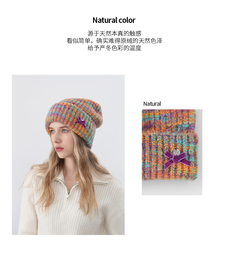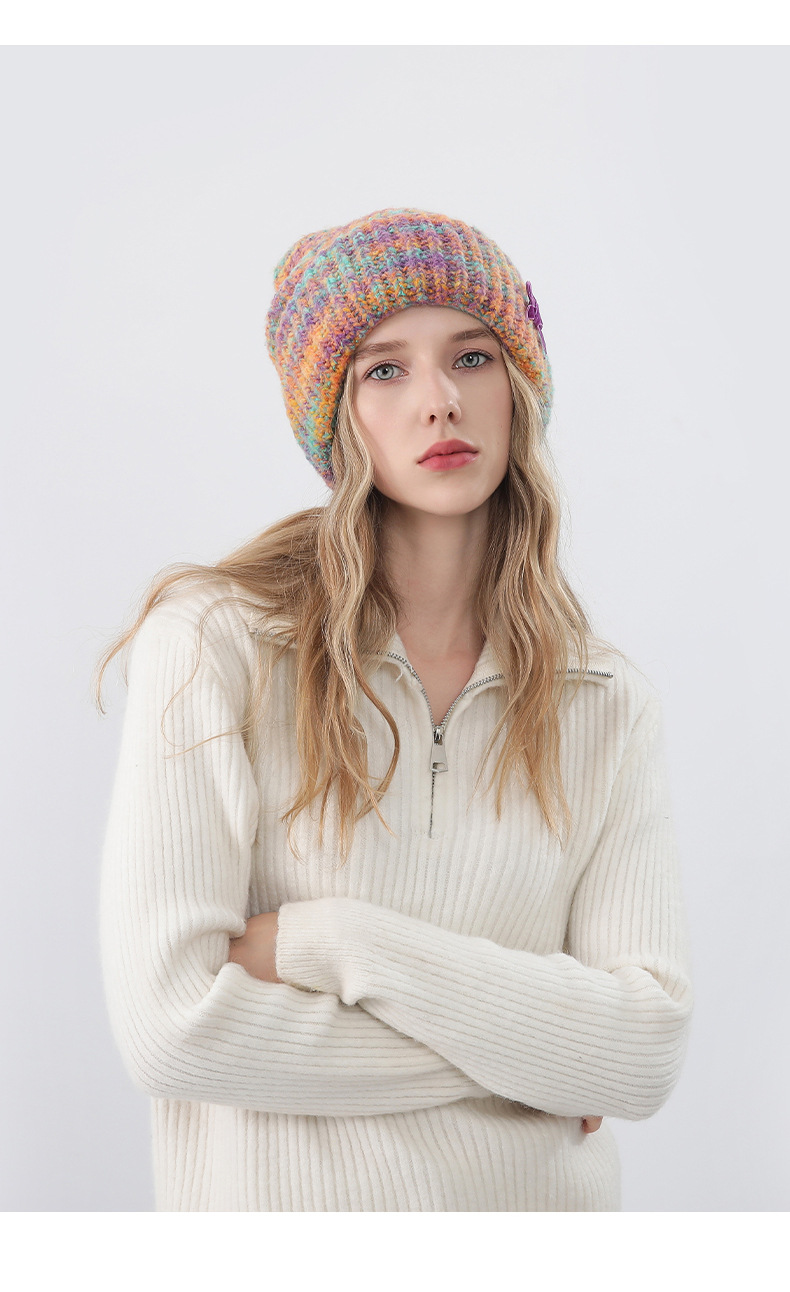 【彩虹堆堆帽】夹花针织帽大脸显小帽大头围秋冬保暖帽子大帽檐