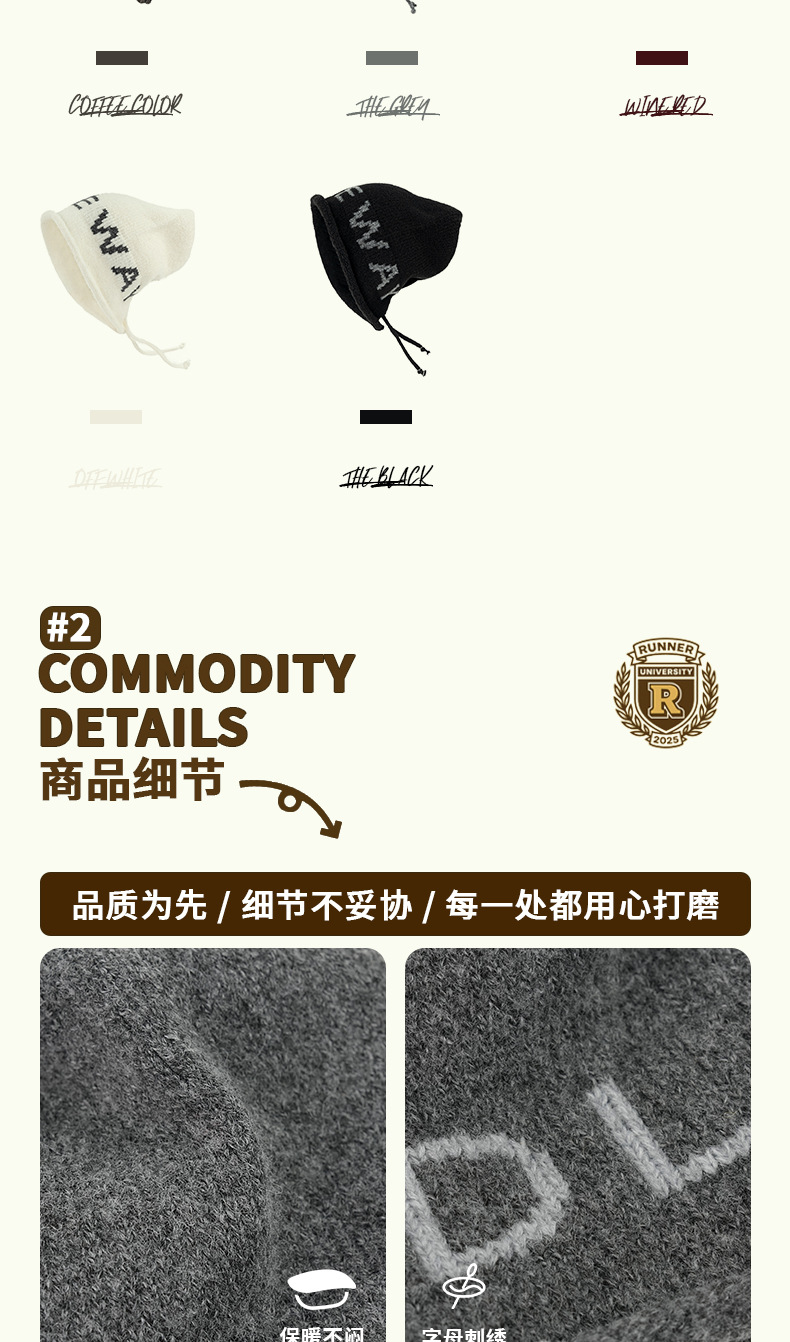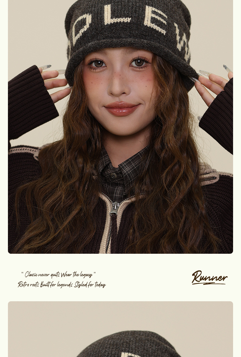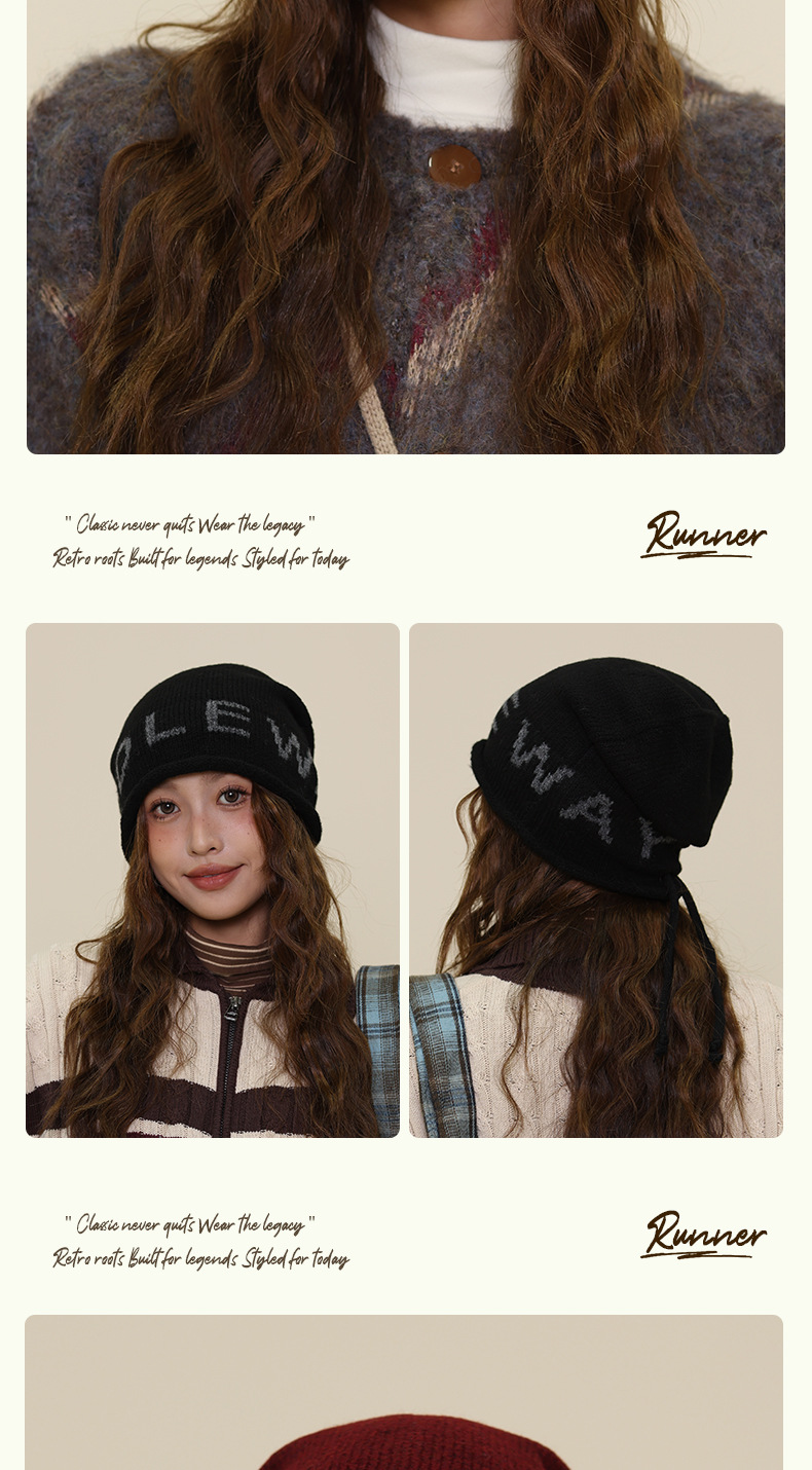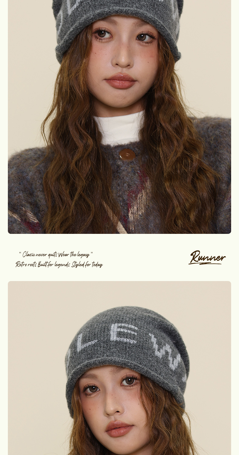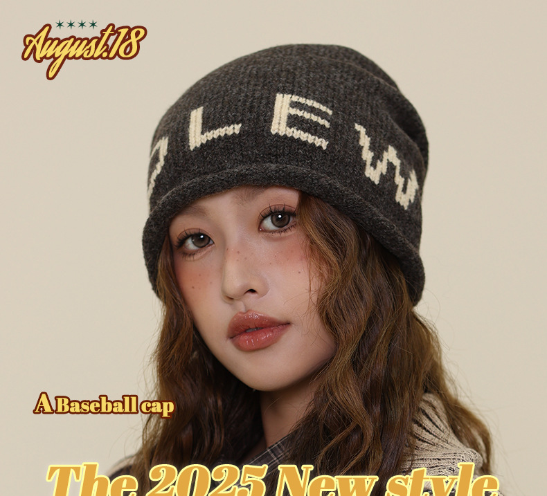 秋冬新款冷帽大头围字母保暖针织帽女卷边堆堆帽显脸小包头帽子