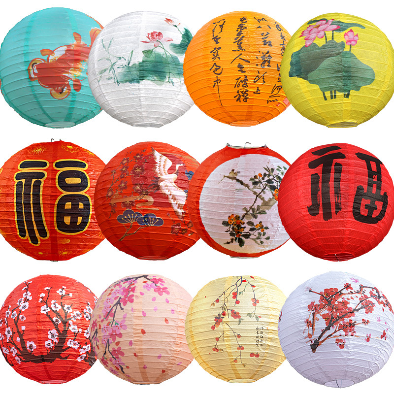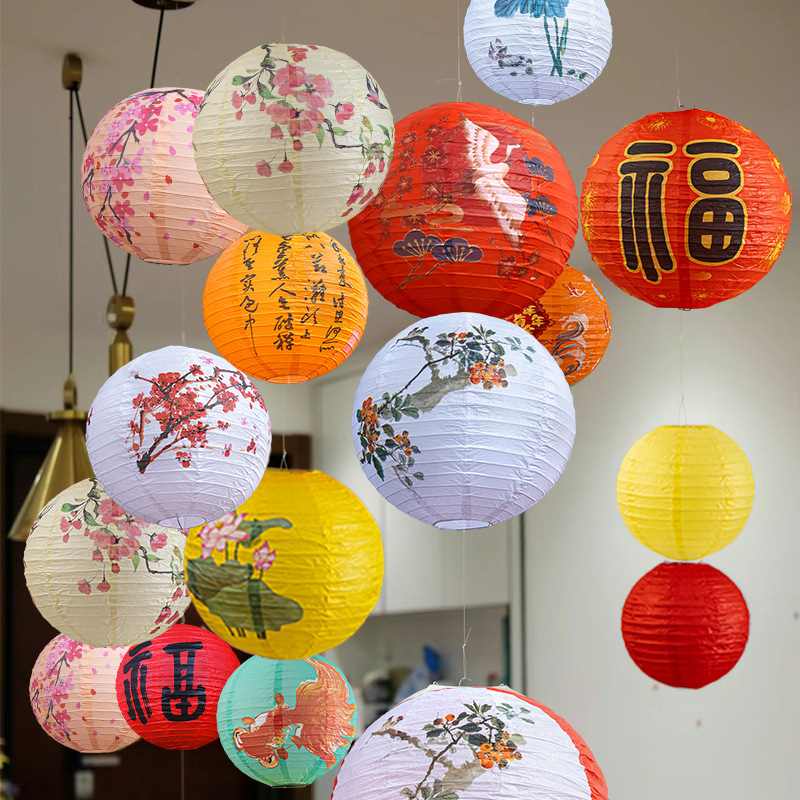 新潮国风新年元宵节大红纸灯笼装饰新中式灯笼福字抓周礼拍照道具
