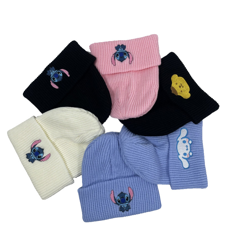 可爱小猫刺绣针织帽欧美卡通猫咪毛线帽库洛米保暖帽情侣套头帽子