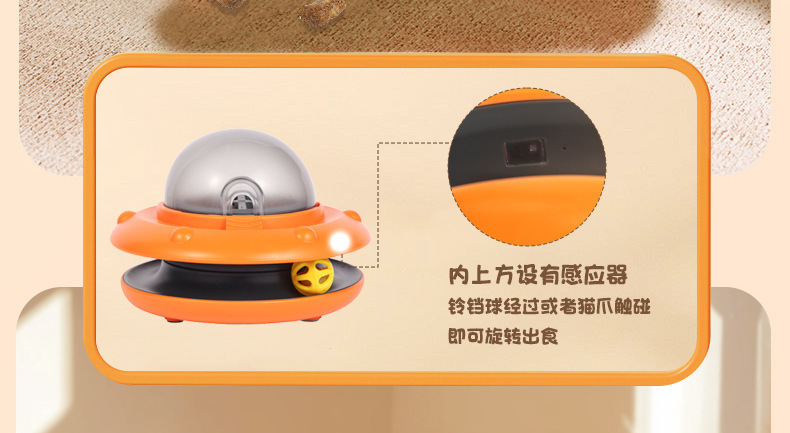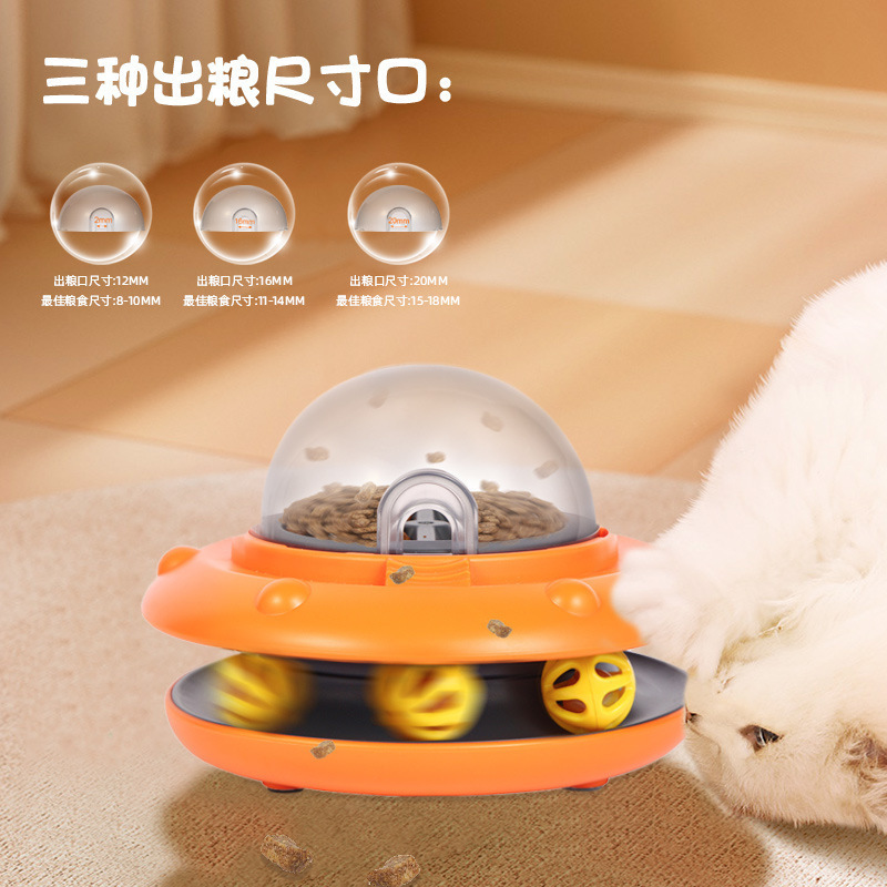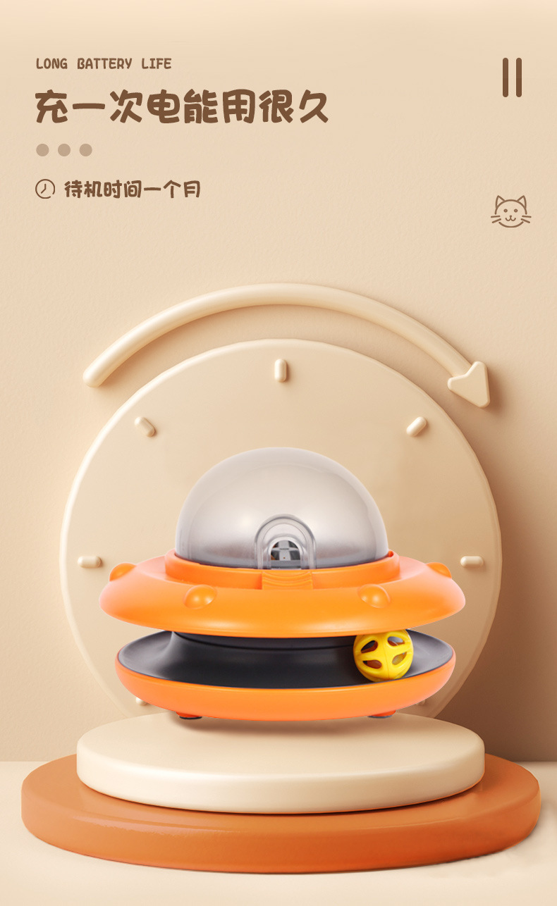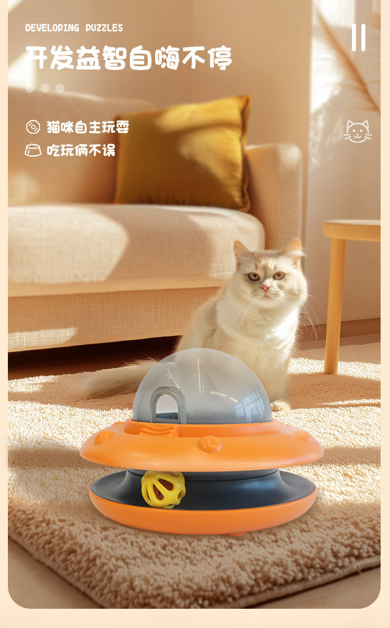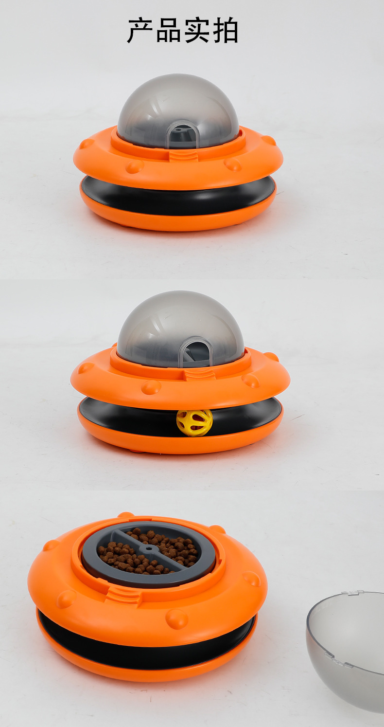 跨境飞船电动喂食游乐盘猫玩具电动漏食猫咪铃铛球感应宠物用品