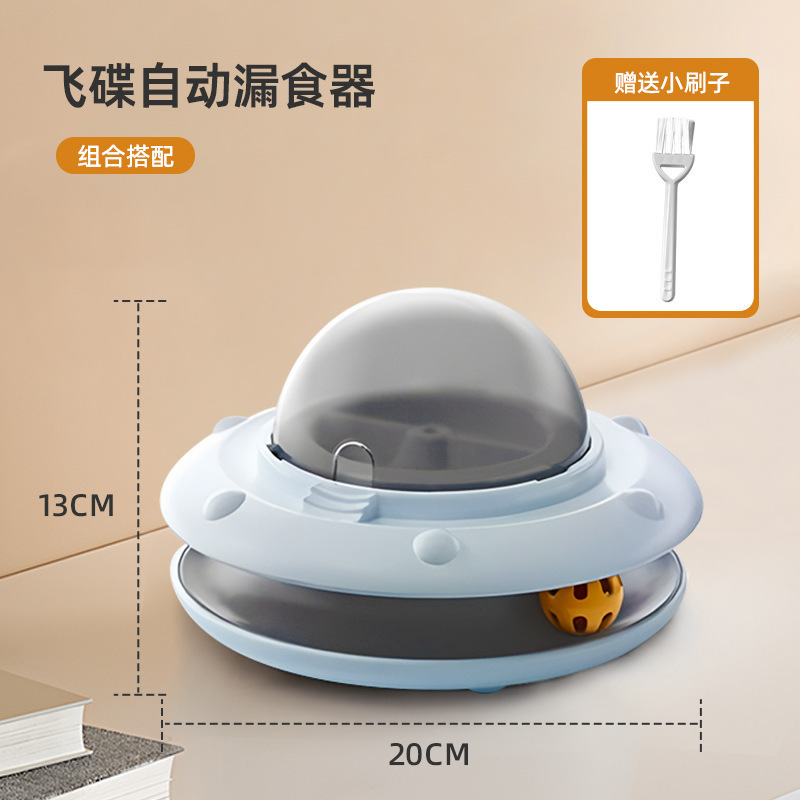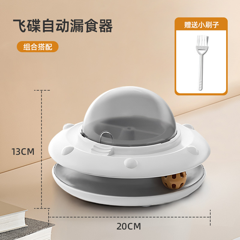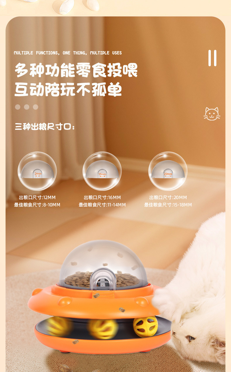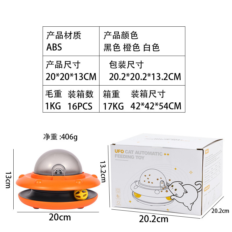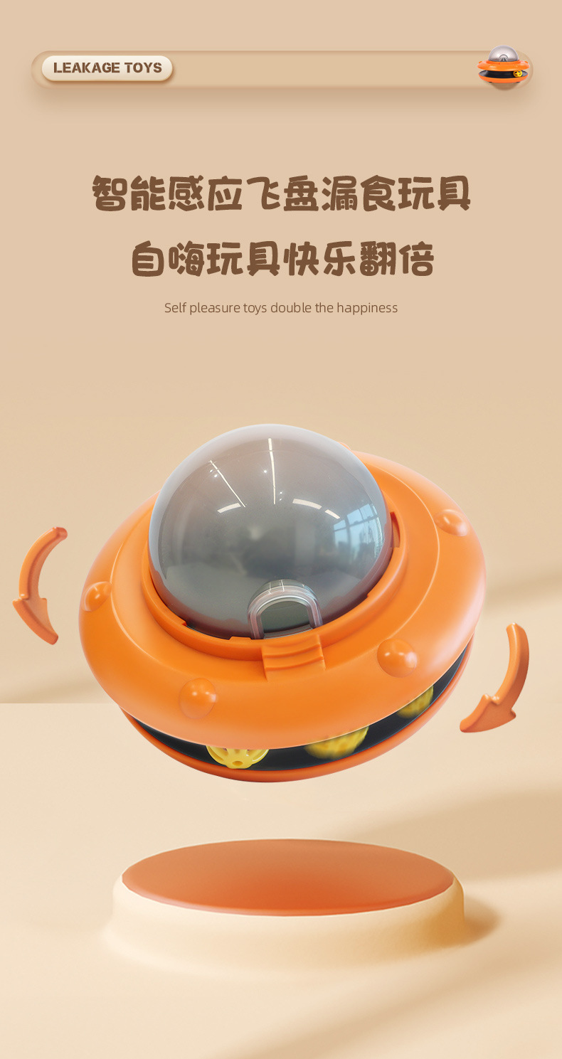 跨境飞船电动喂食游乐盘猫玩具电动漏食猫咪铃铛球感应宠物用品