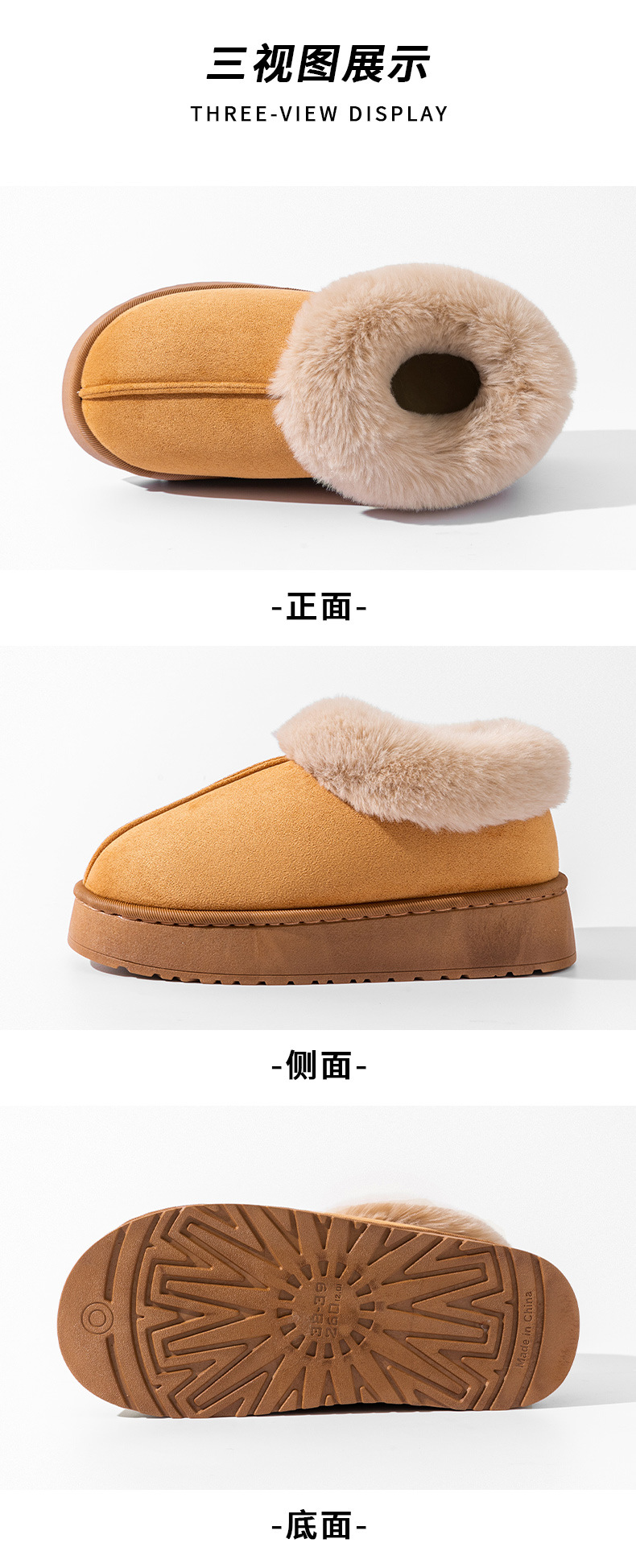厚底包跟棉拖鞋女秋冬季居家用毛毛绒棉鞋出门外穿情侣保暖雪地靴