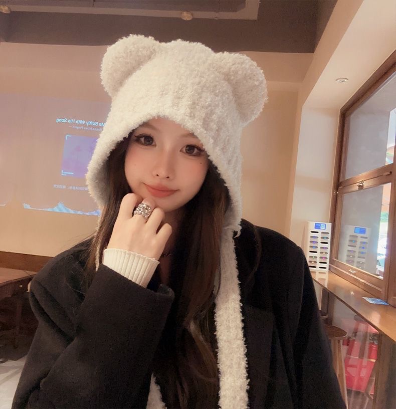 跨境毛绒针织帽女冬天保暖护耳套头帽韩版甜美百搭显脸小毛线帽