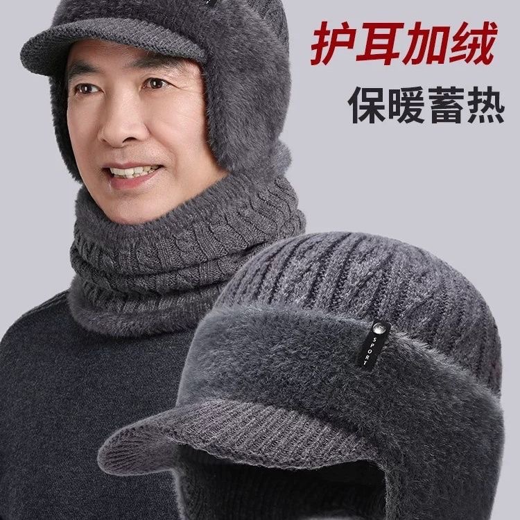 冬季新款男护耳帽毛线帽户外骑行保暖加绒防风护耳针织帽仿羊绒帽
