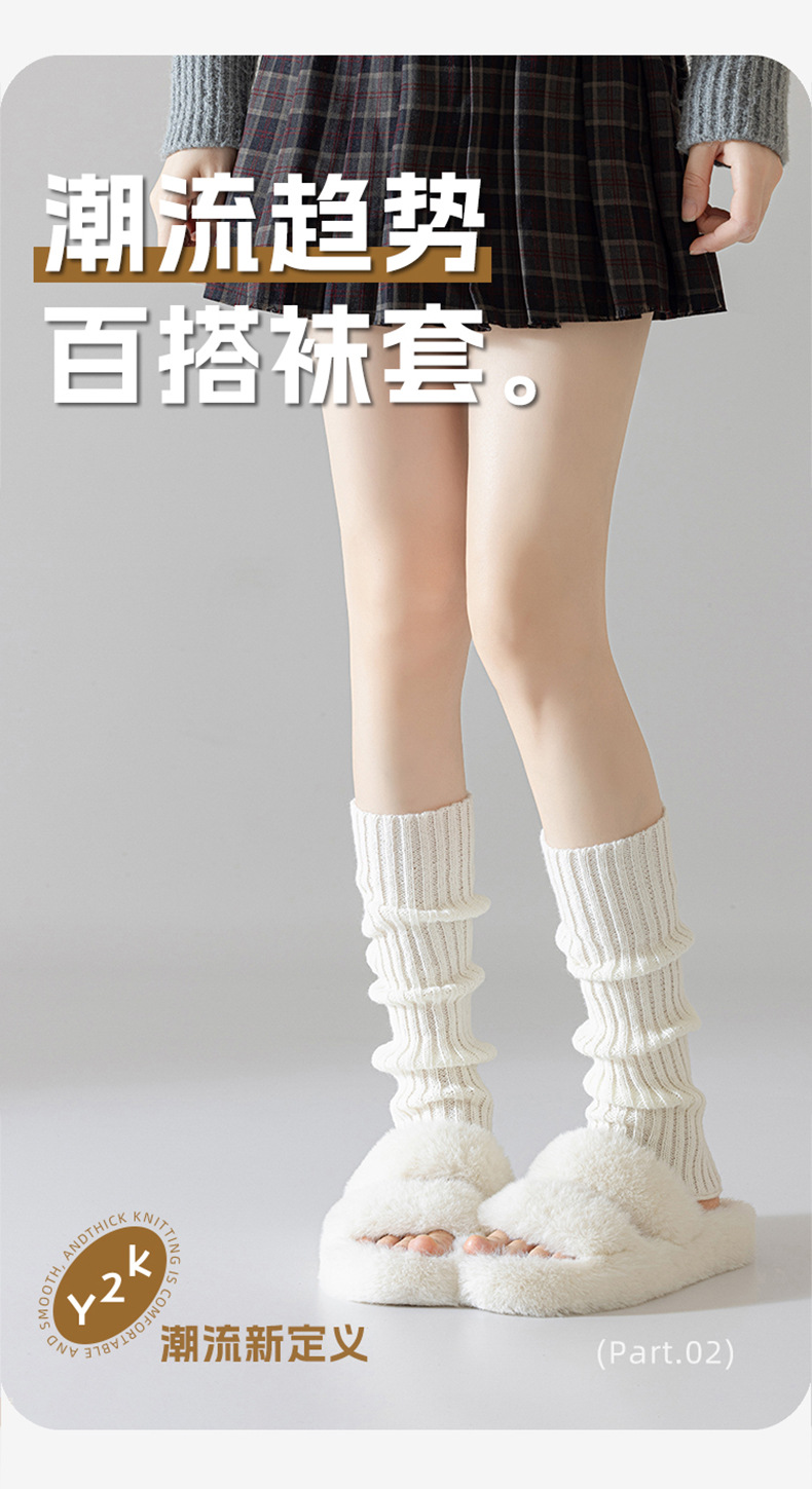 袜套女款秋季y2k辣妹腿套白色女小腿袜秋冬jk袜破洞针织堆堆袜