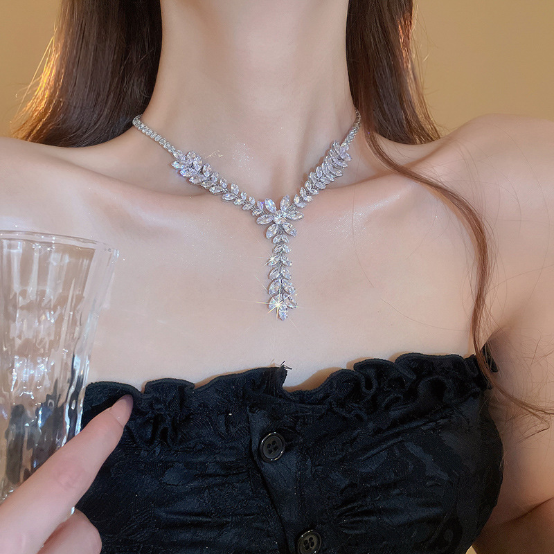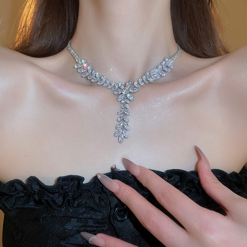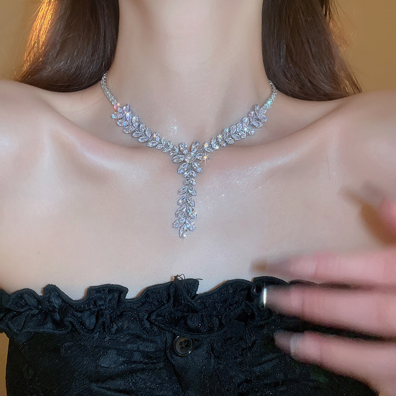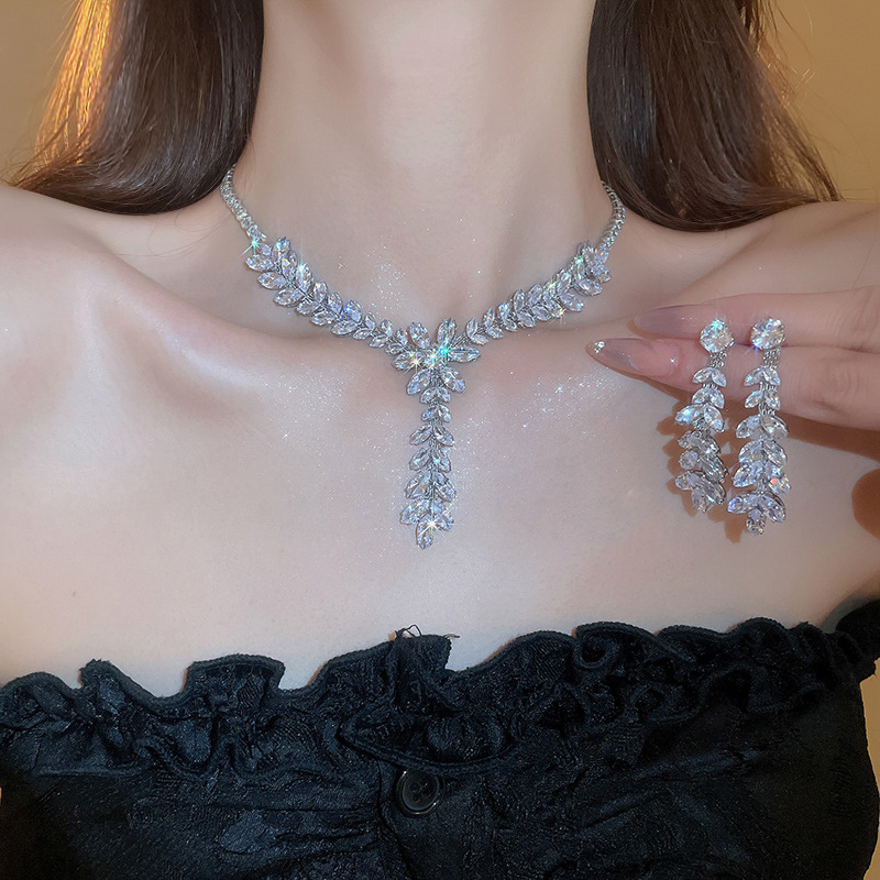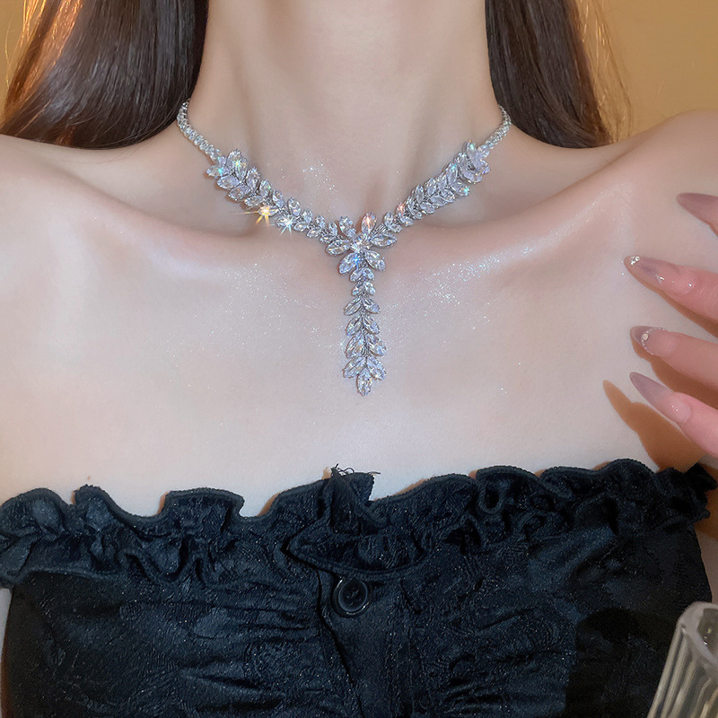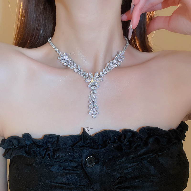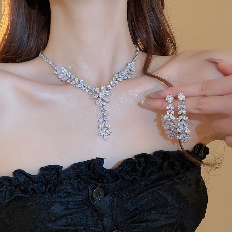 银针2025新款锆石麦穗流苏耳环项链套装时尚轻奢锁骨链高级感饰品