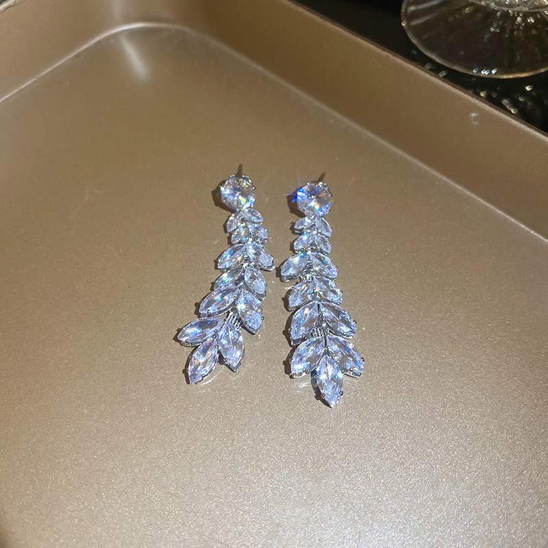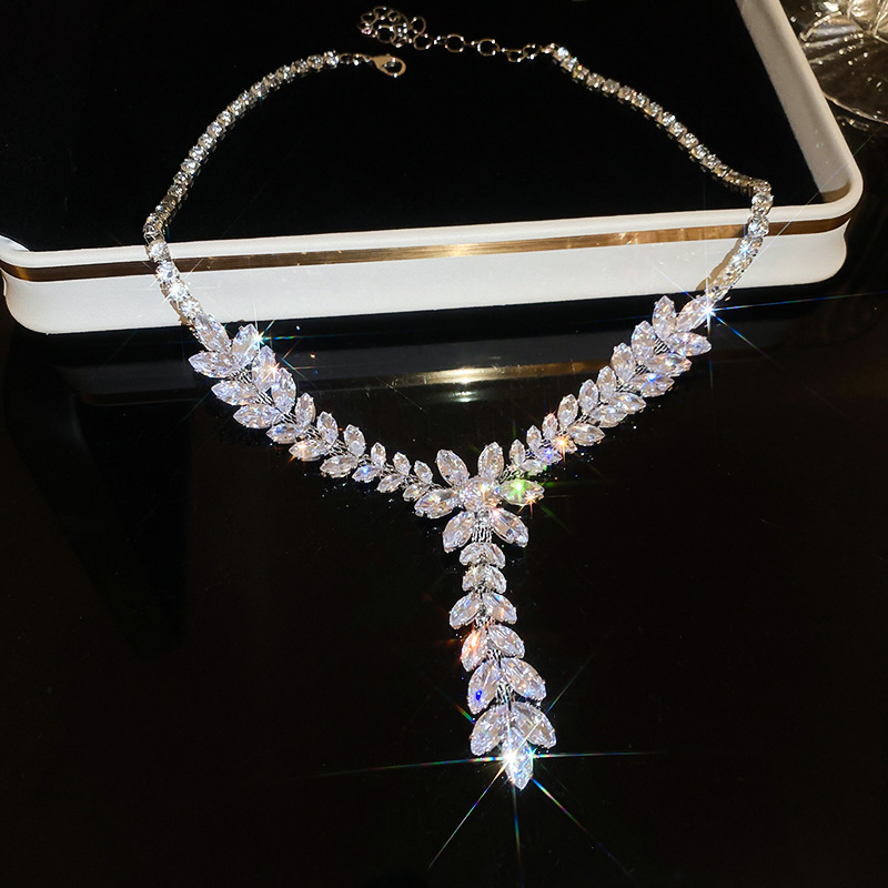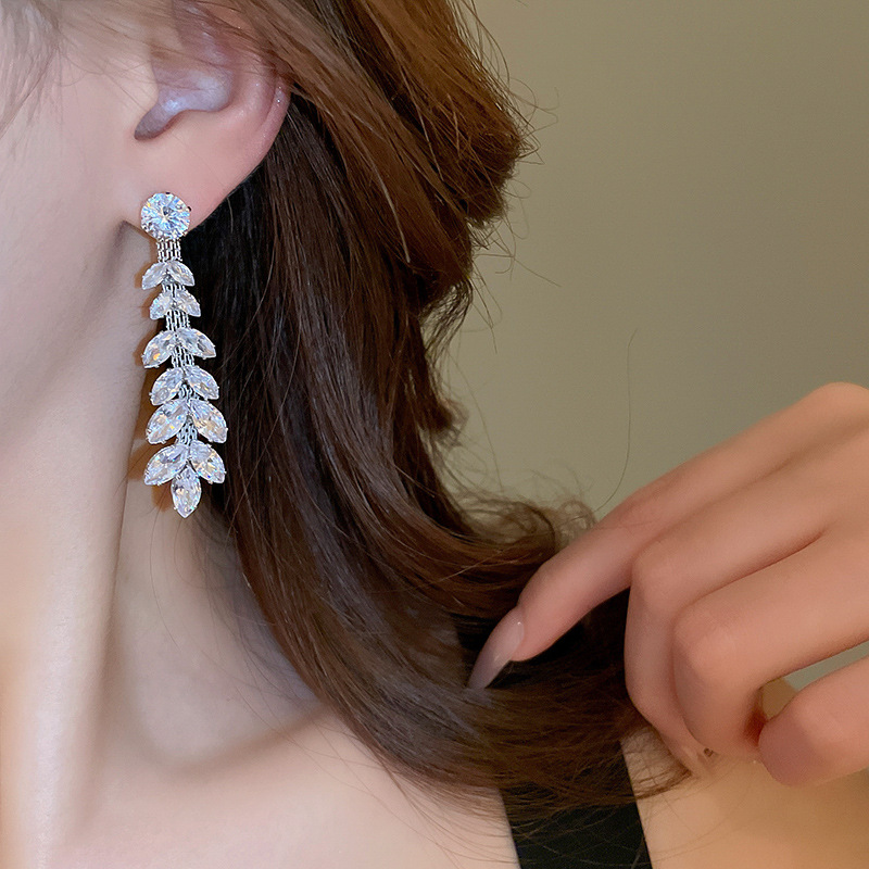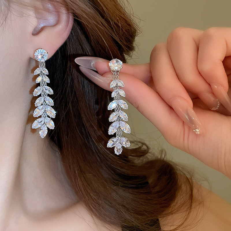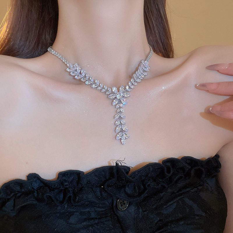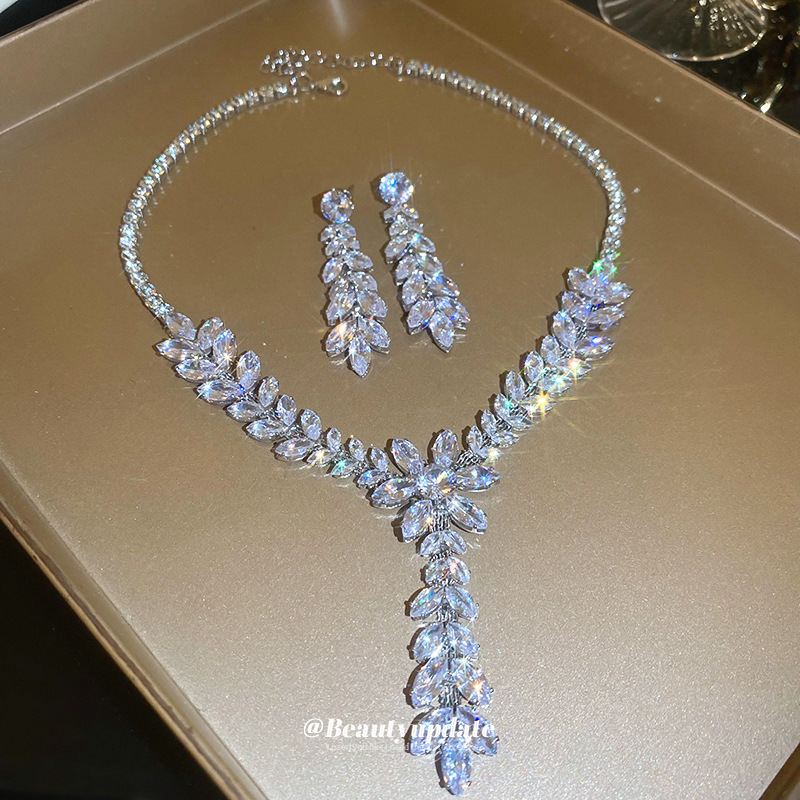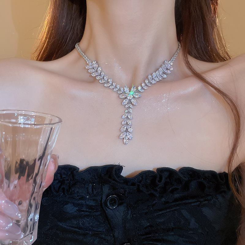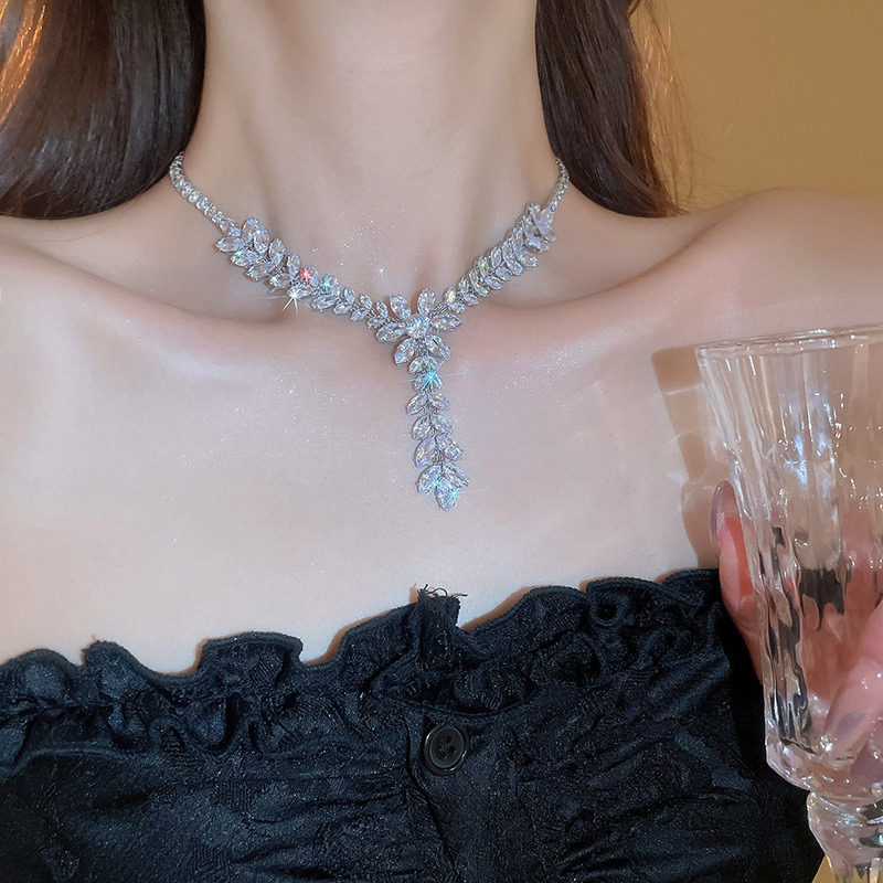 银针2025新款锆石麦穗流苏耳环项链套装时尚轻奢锁骨链高级感饰品