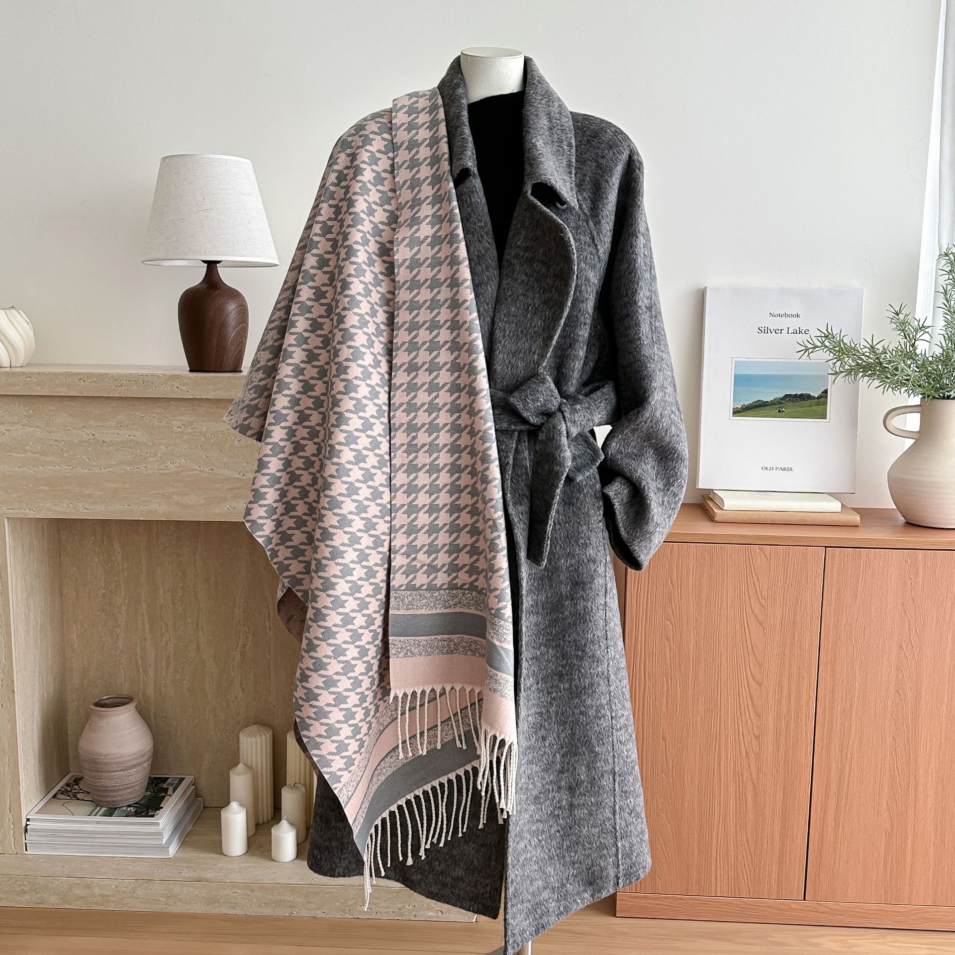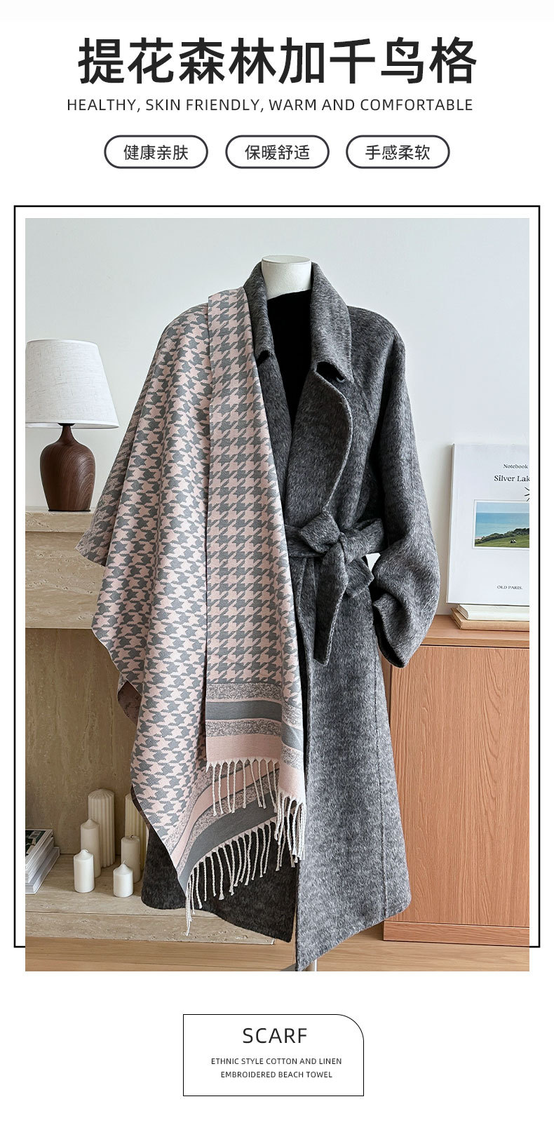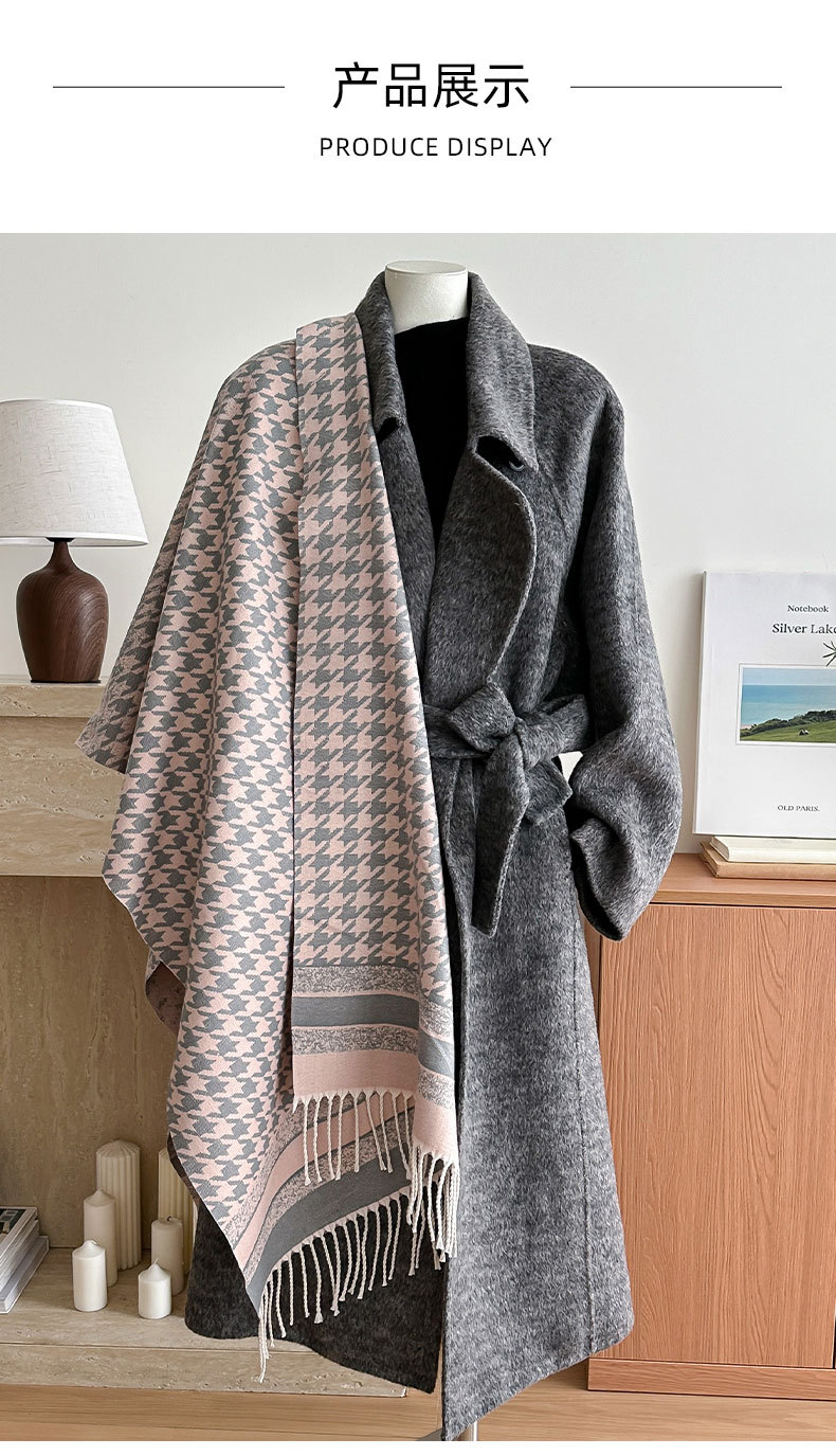 韩国新款仿羊绒空调披肩女外搭网红斗篷秋冬小众复古格子保暖围巾