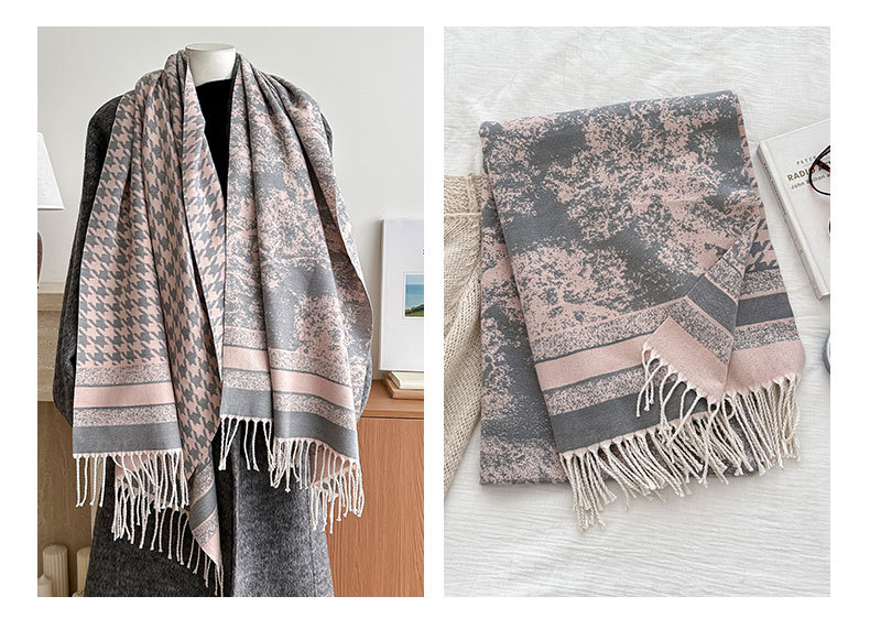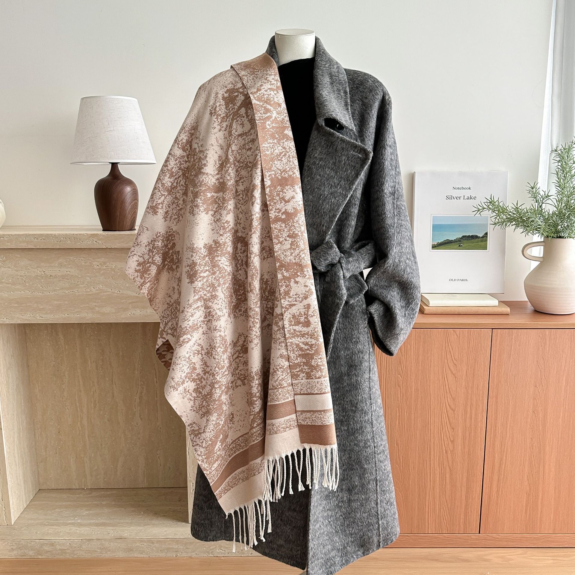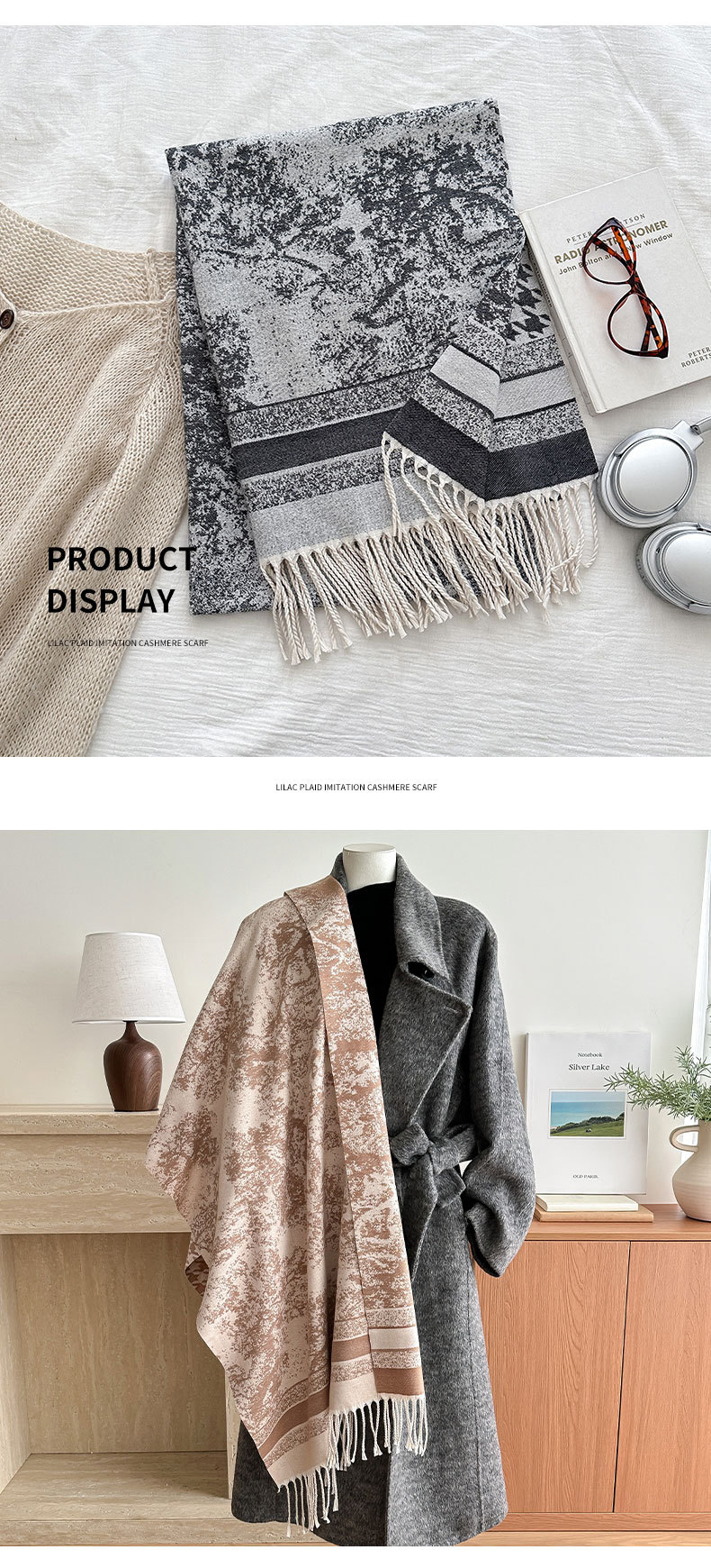 韩国新款仿羊绒空调披肩女外搭网红斗篷秋冬小众复古格子保暖围巾