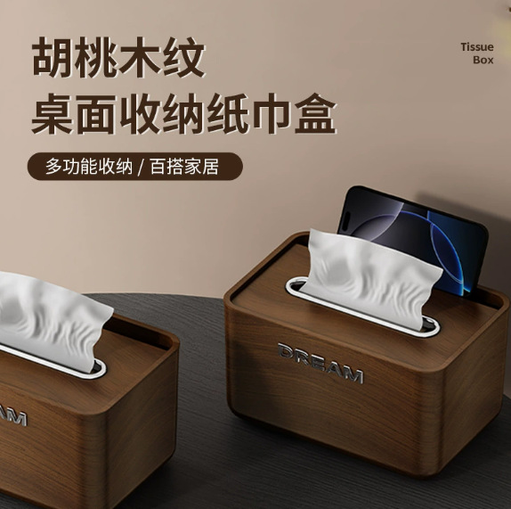 轻奢防核桃木中式纸巾盒餐桌办公室桌面高档抽纸盒中古风收纳盒