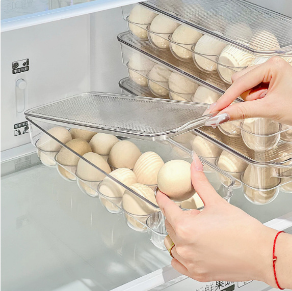 透明冰箱鸡蛋收纳盒可叠长方形鸡蛋托厨房食物整理带盖鸡蛋保鲜盒