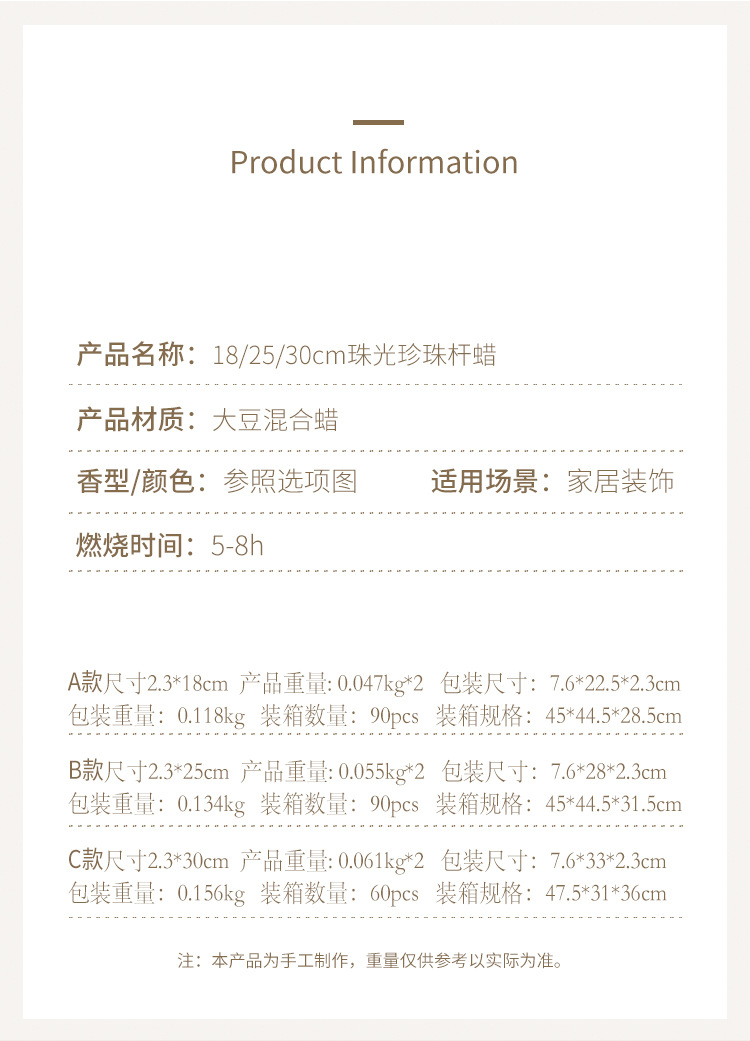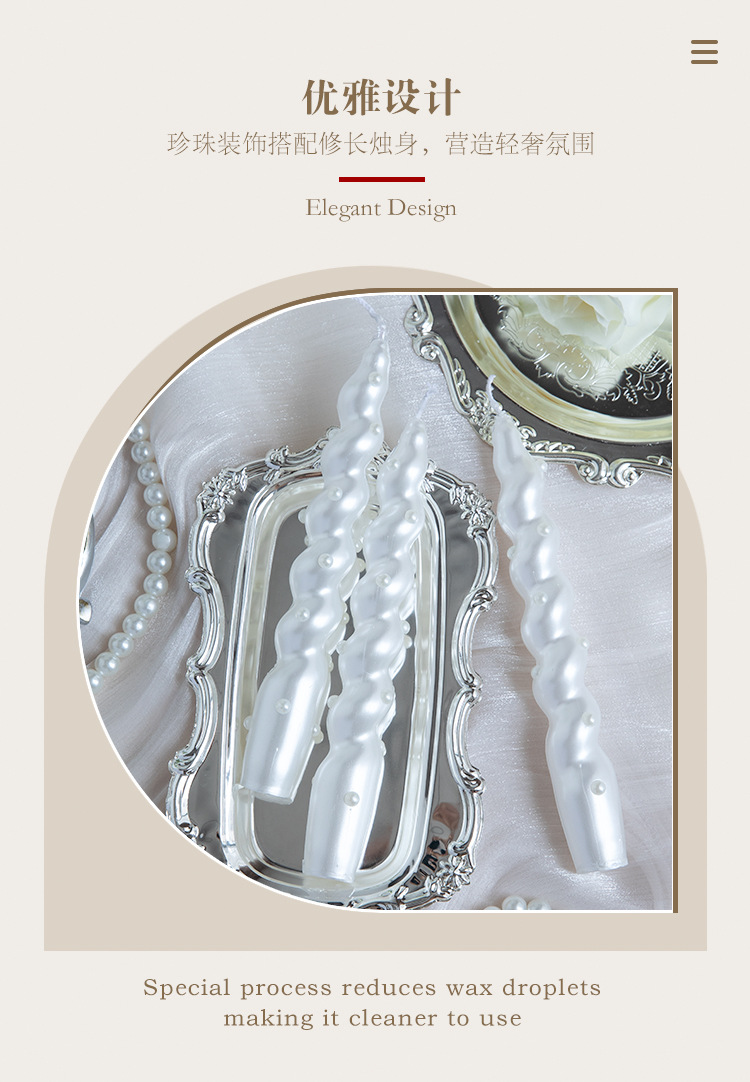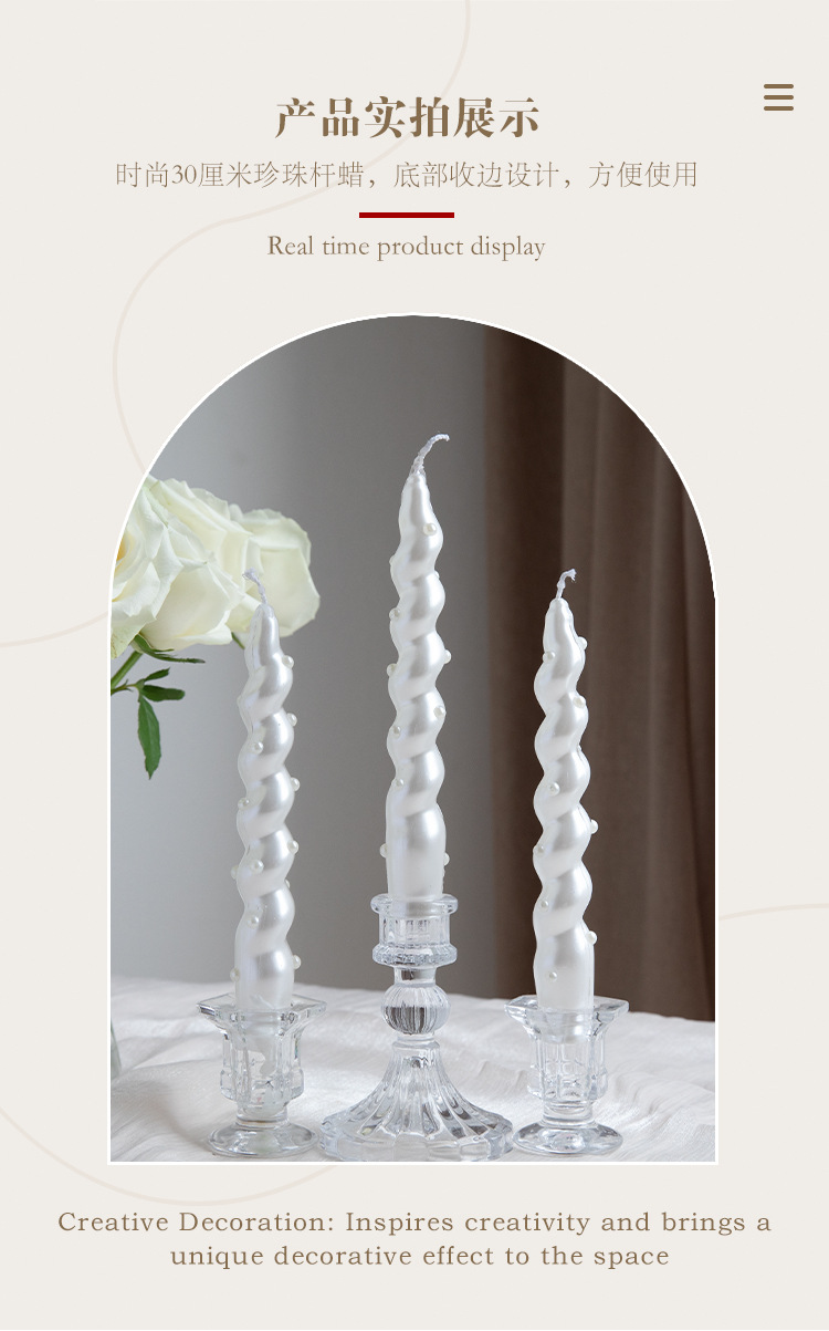 30CM珍珠长杆蜡酒店香薰蜡烛氛围感桌面摆件欧式浪漫无烟珍珠蜡烛