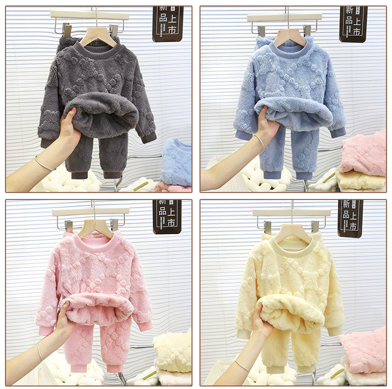 儿童睡衣套装保暖秋冬新款男童加厚家居服宝宝加绒女童衣服童装