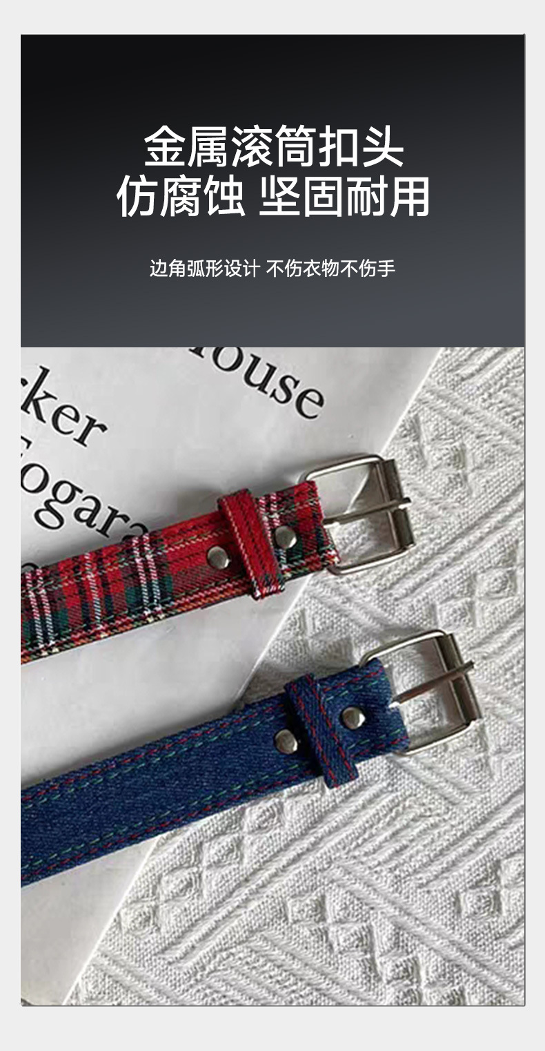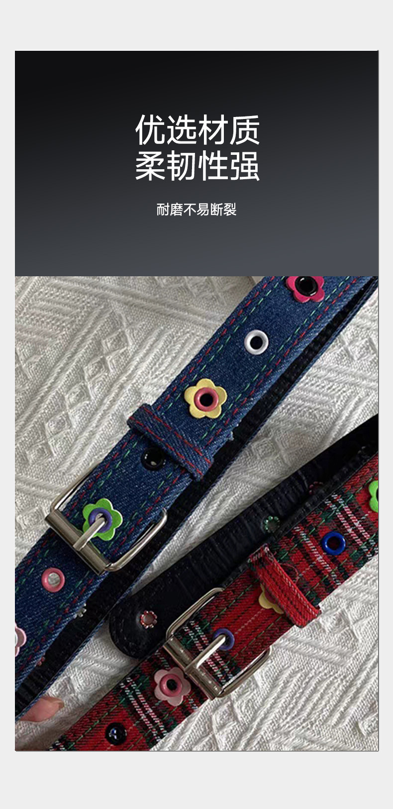 尊海皮带y2k多巴胺花朵红色格纹腰带女夏季2025甜酷辣妹牛仔蓝潮