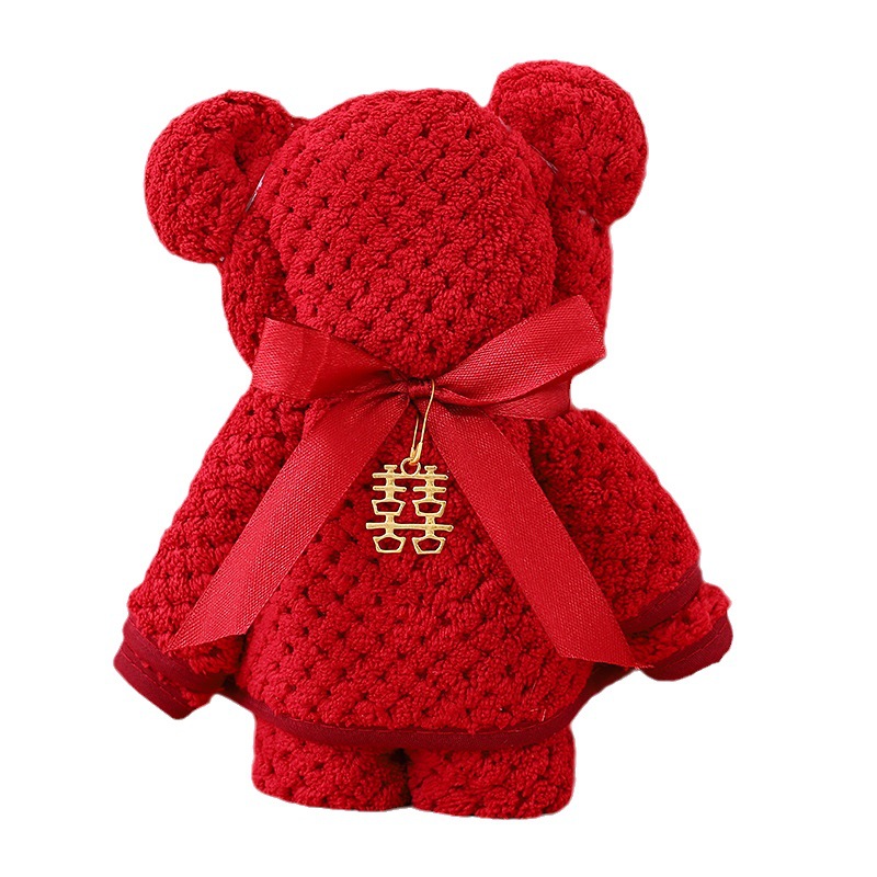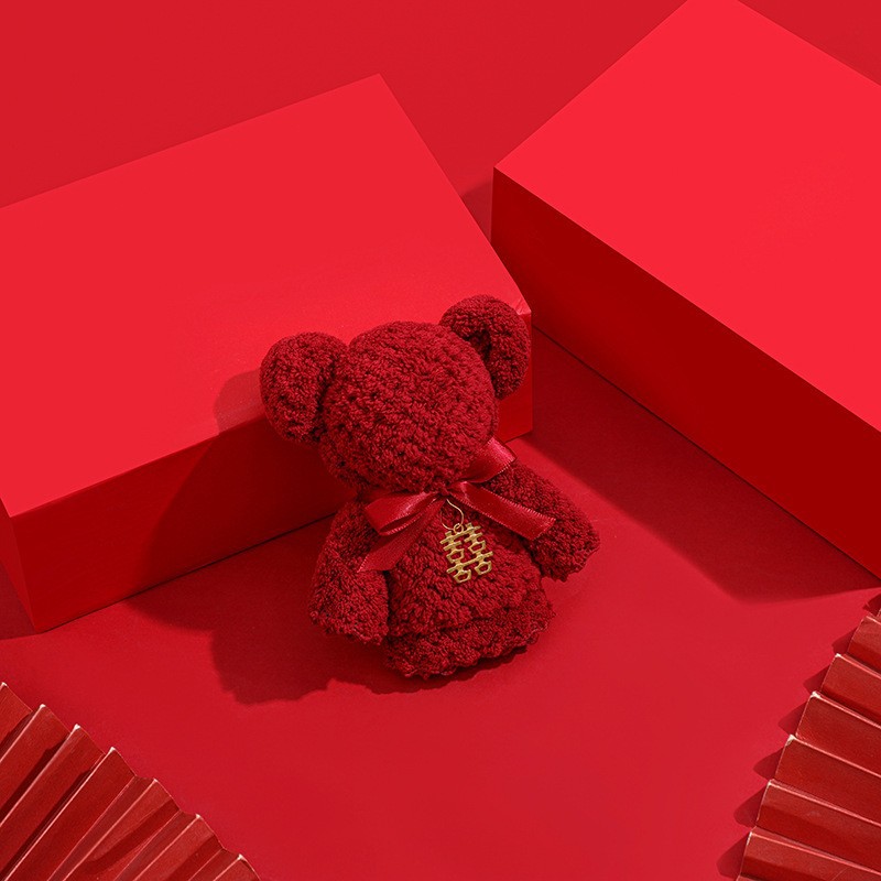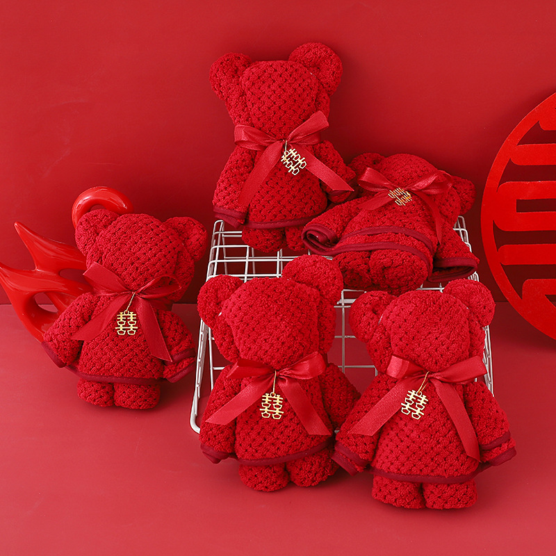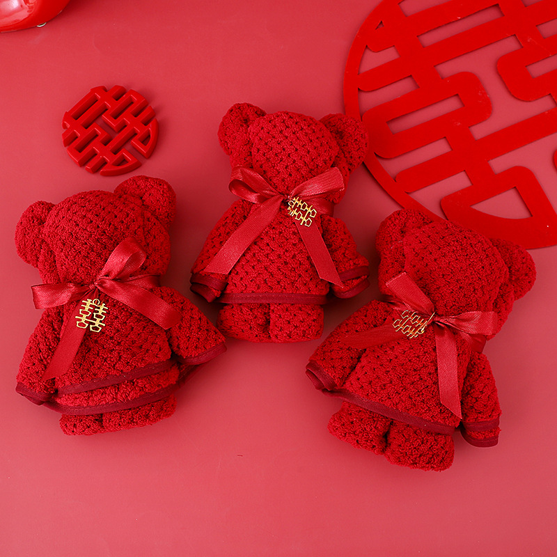 珊瑚绒小熊毛巾婚庆伴手礼创意结婚喜铺回礼摆件菠萝格套装礼品