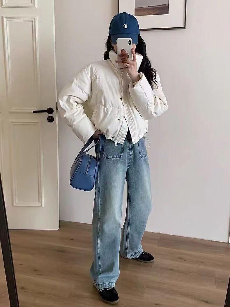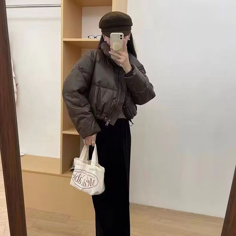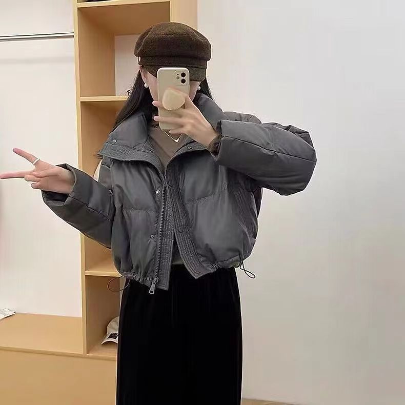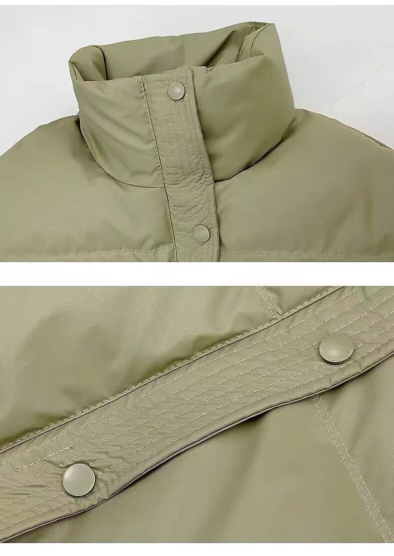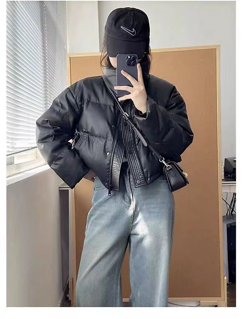 2024新款免洗PU皮羽绒棉衣女短款冬季加厚面包服小个子欧美外套