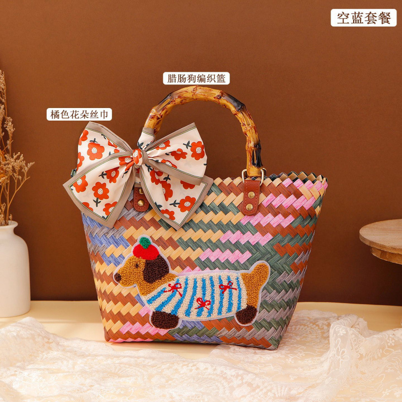 sausage dog woven basket + mori style silk scarf(腊肠狗编制篮+森系丝巾) USD $5.94 1995 piece available
